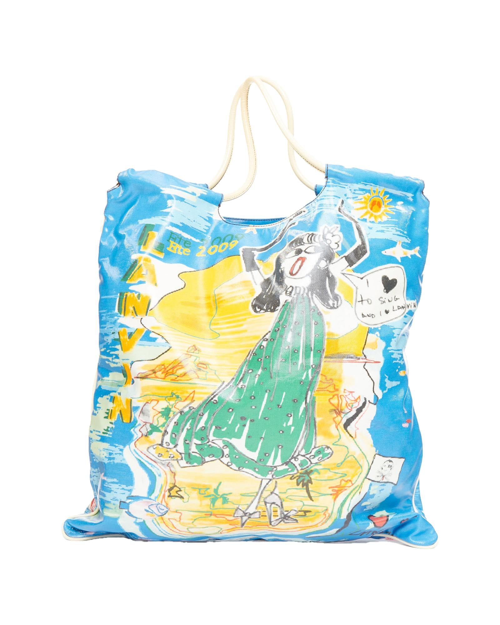 Pre-owned Printed Canvas Tote Bag with Rope Handles