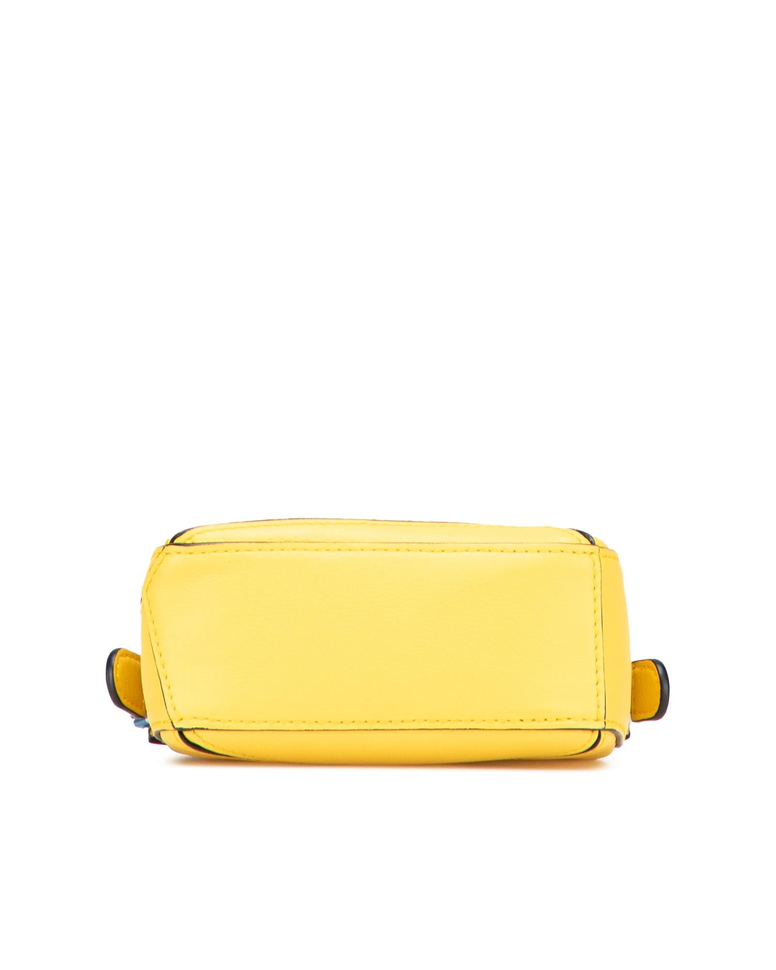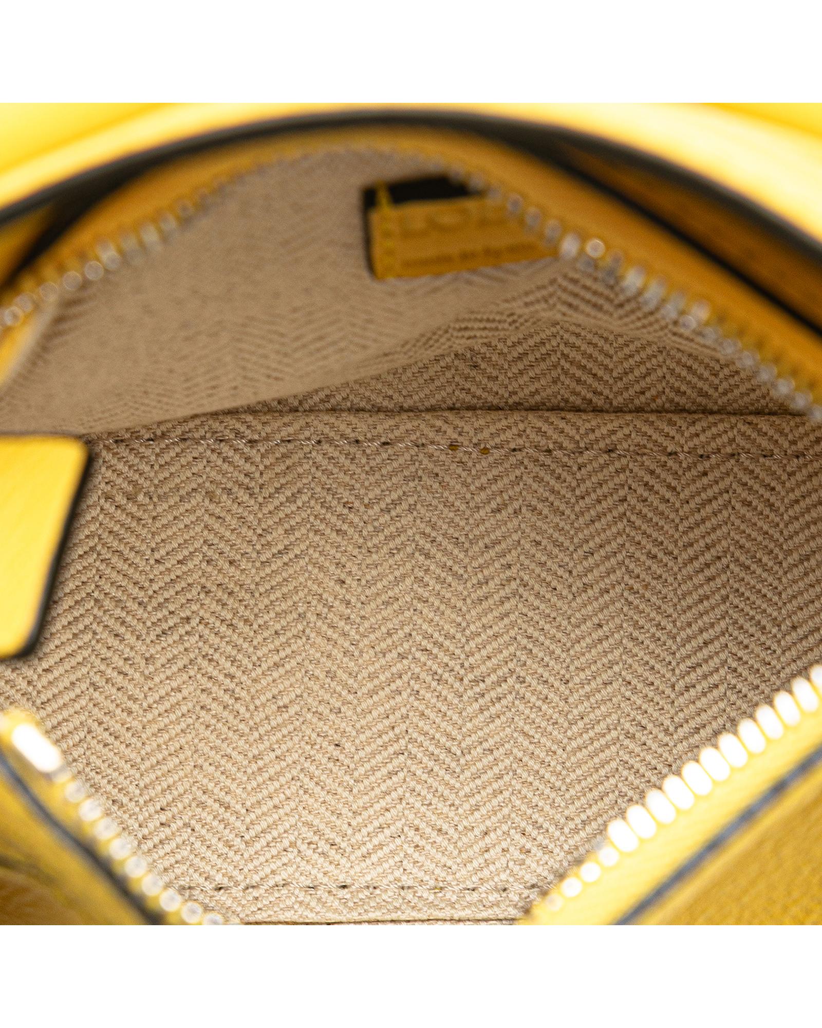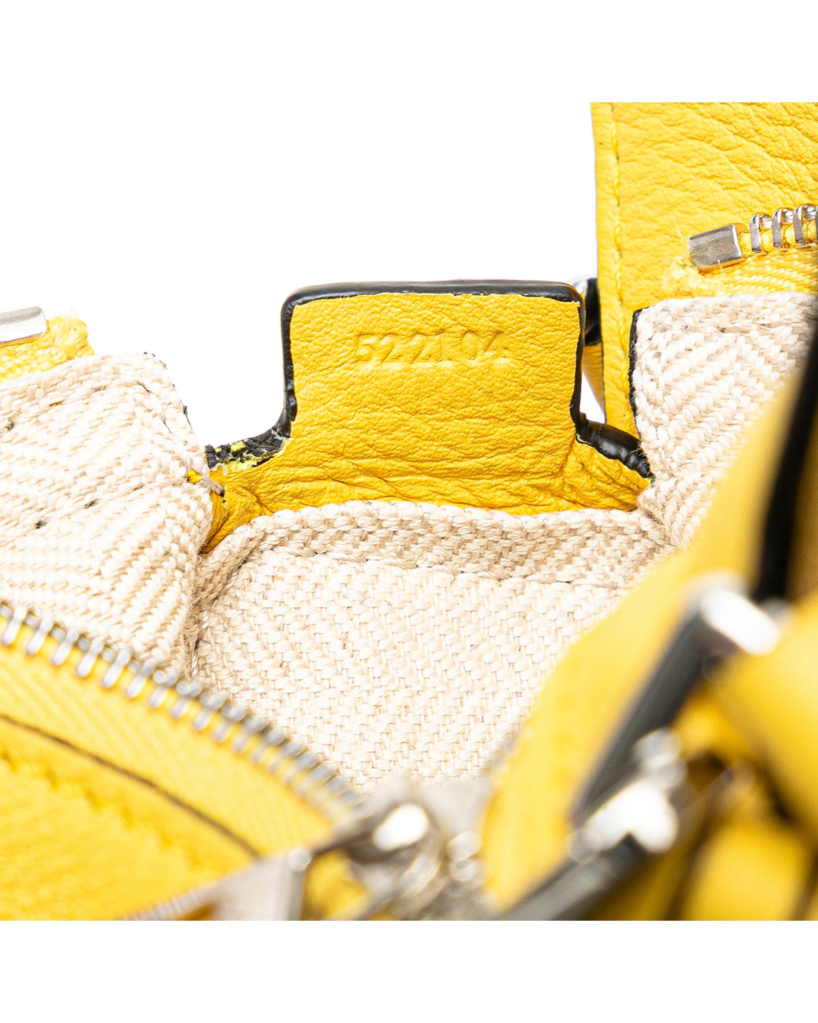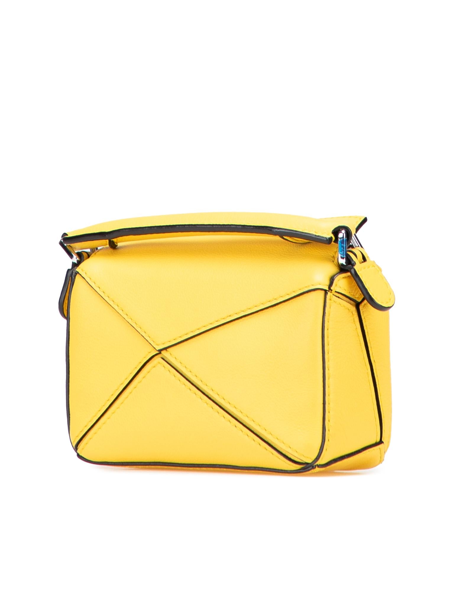 The Puzzle features a leather body a rolled leather top handle a detachable chain strap with leather guard and a top zip closure.
