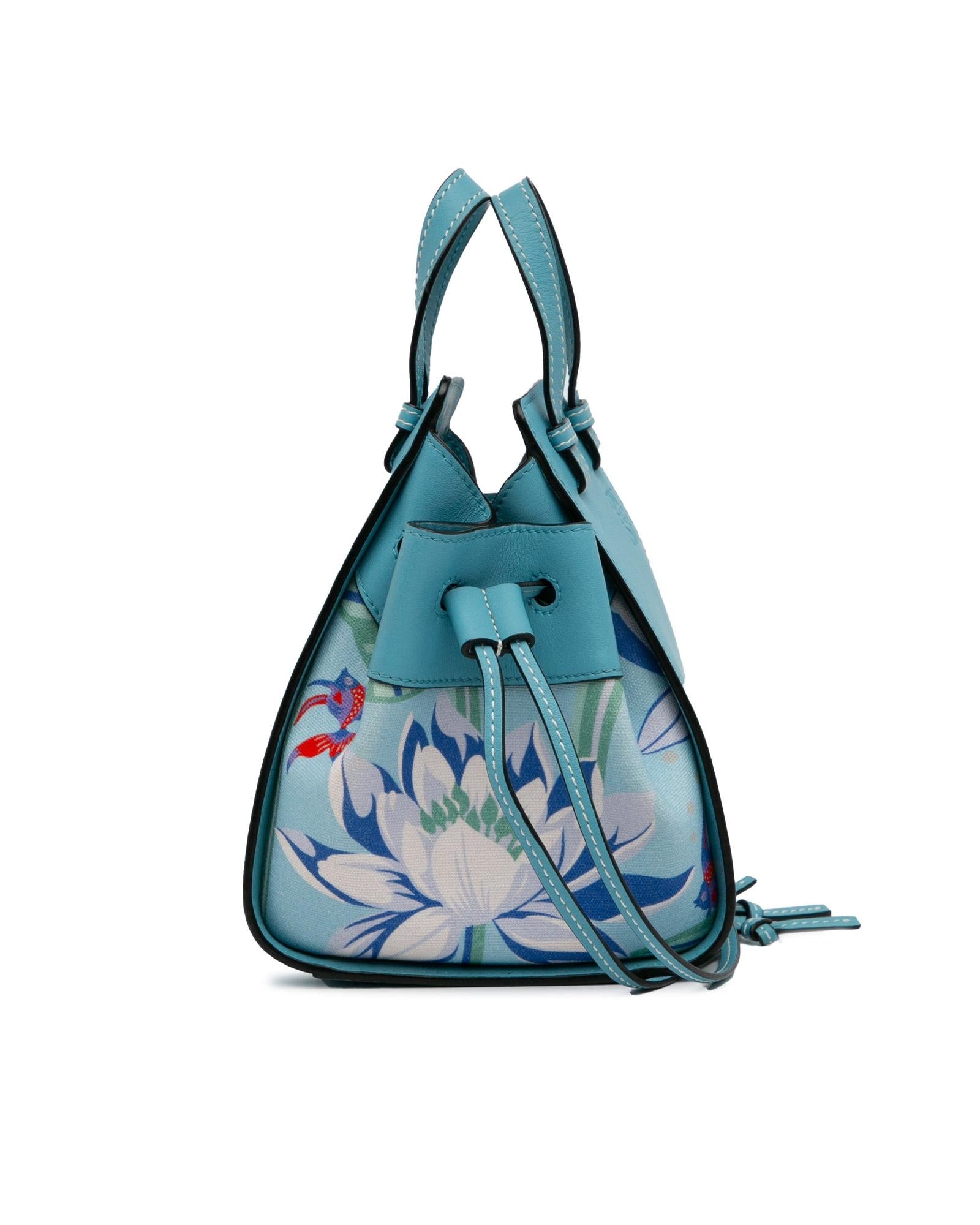 Pre-owned Leather & Fabric Drawstring Top Handle Handbag