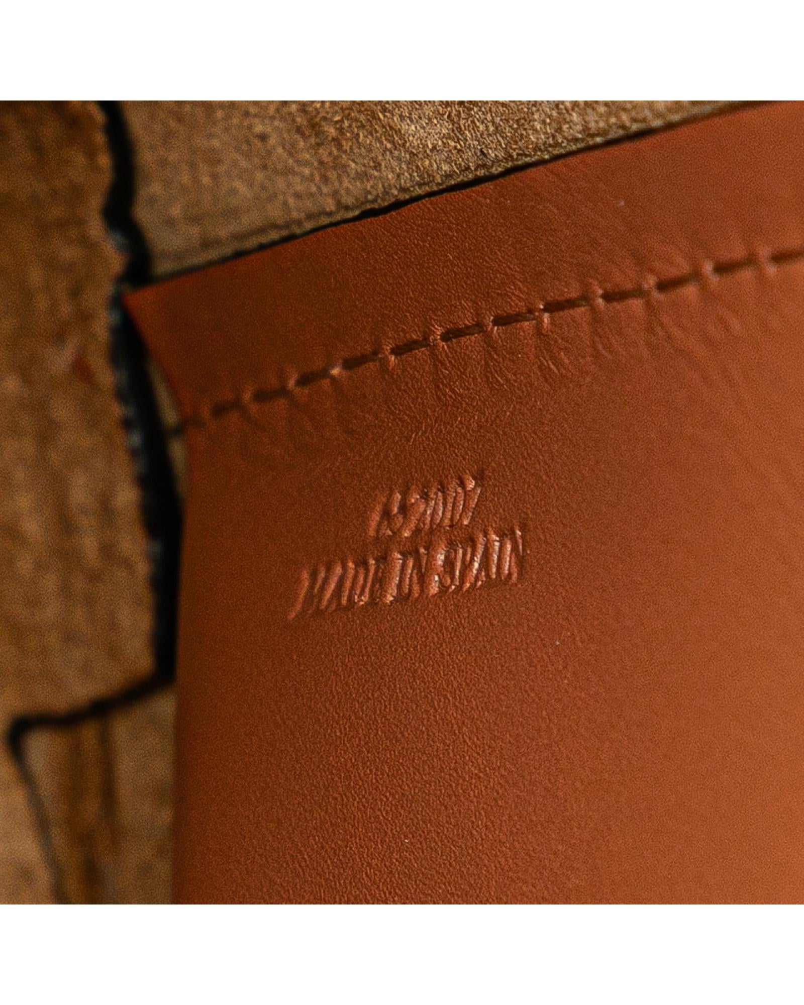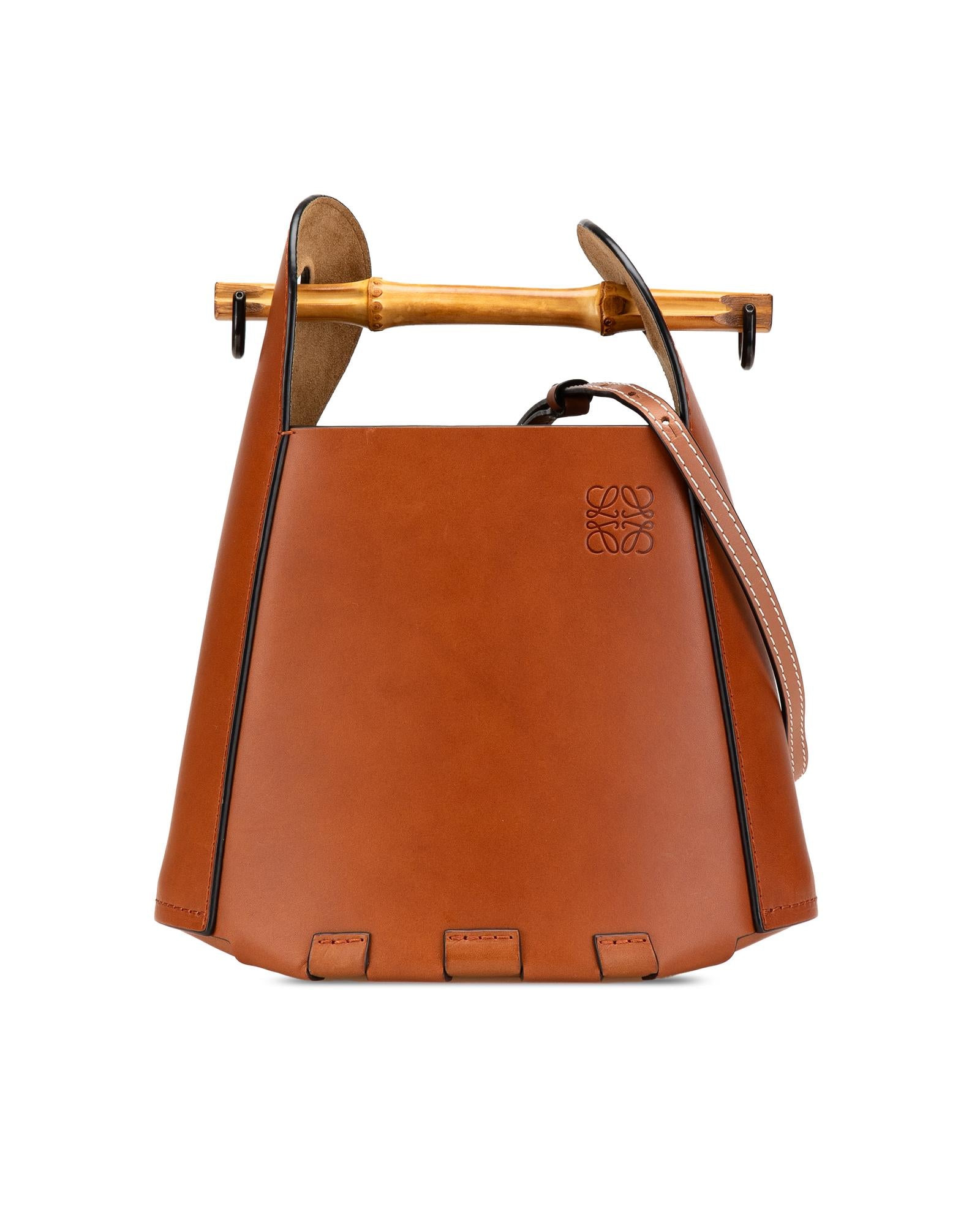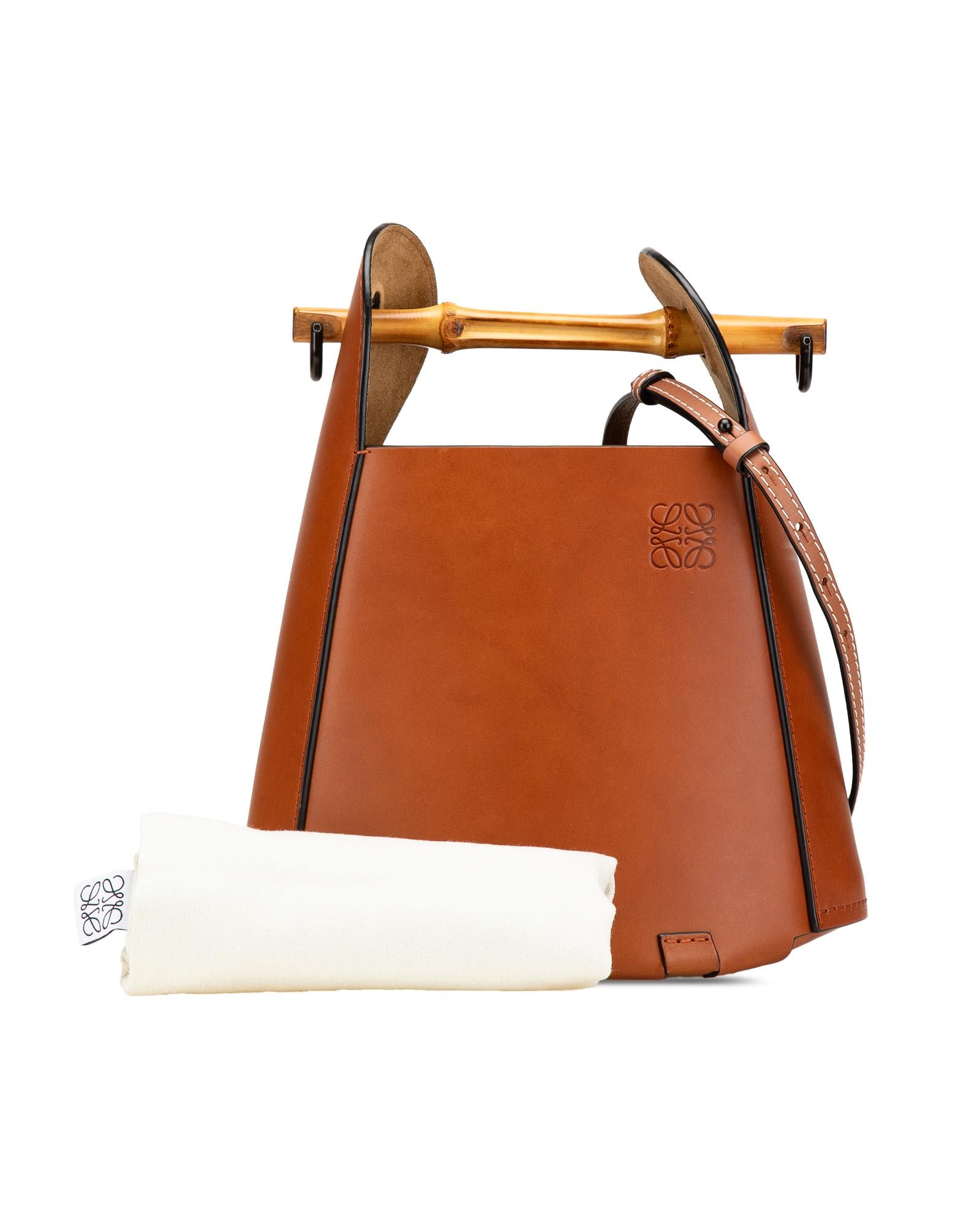 This satchel features a leather body a bamboo handle a detachable flat leather strap an open top and an interior slip pocket.Brand: LOEWE Vintage