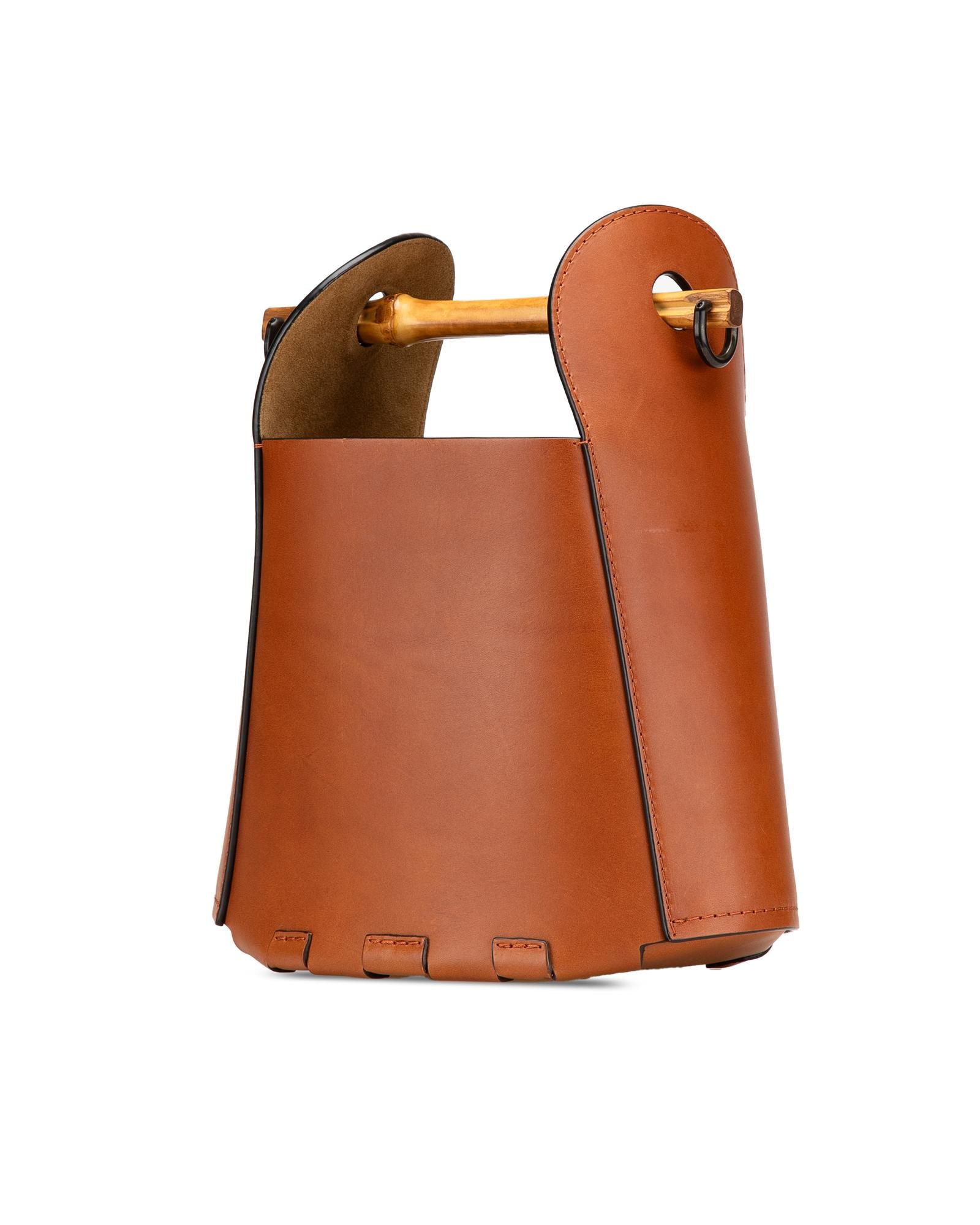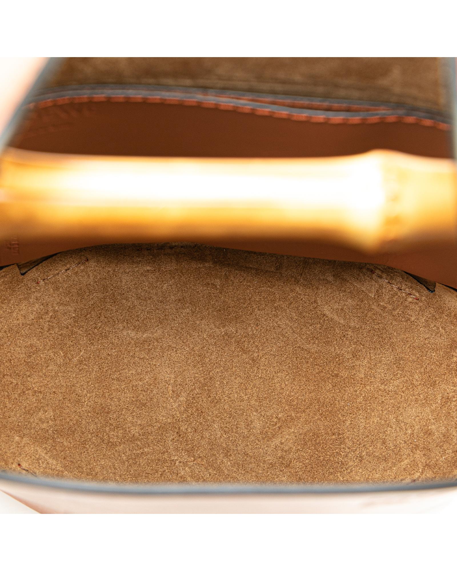 Pre-owned Leather Bucket Bag with Bamboo Top Handle and Shoulder Strap