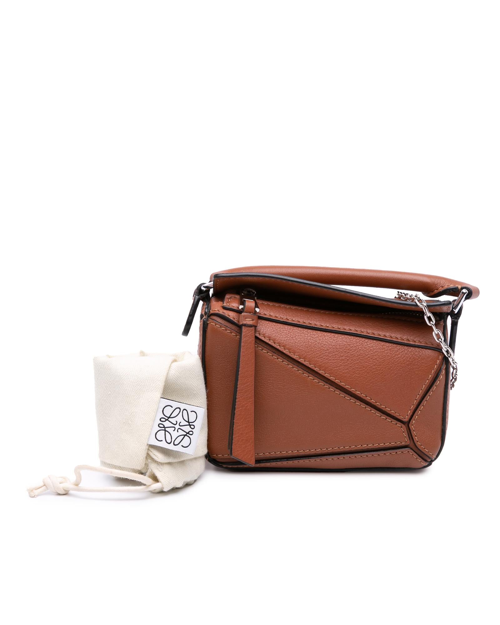 The Nano Puzzle features a leather body a rolled leather top handle a detachable chain link strap and a top zip closure.Brand: LOEWE Vintage