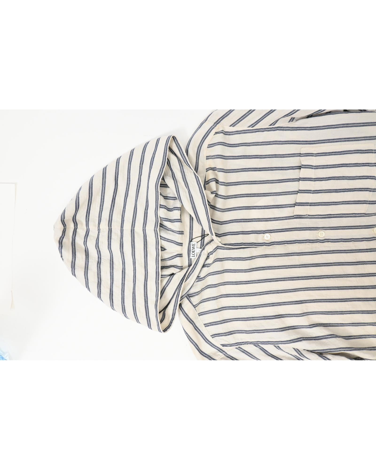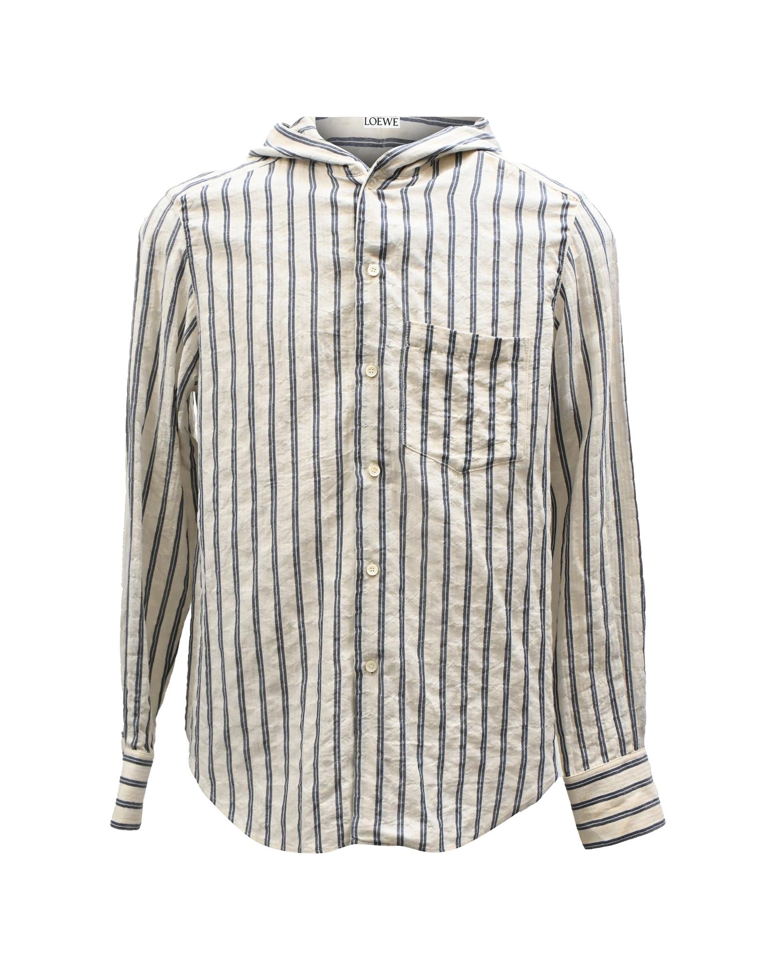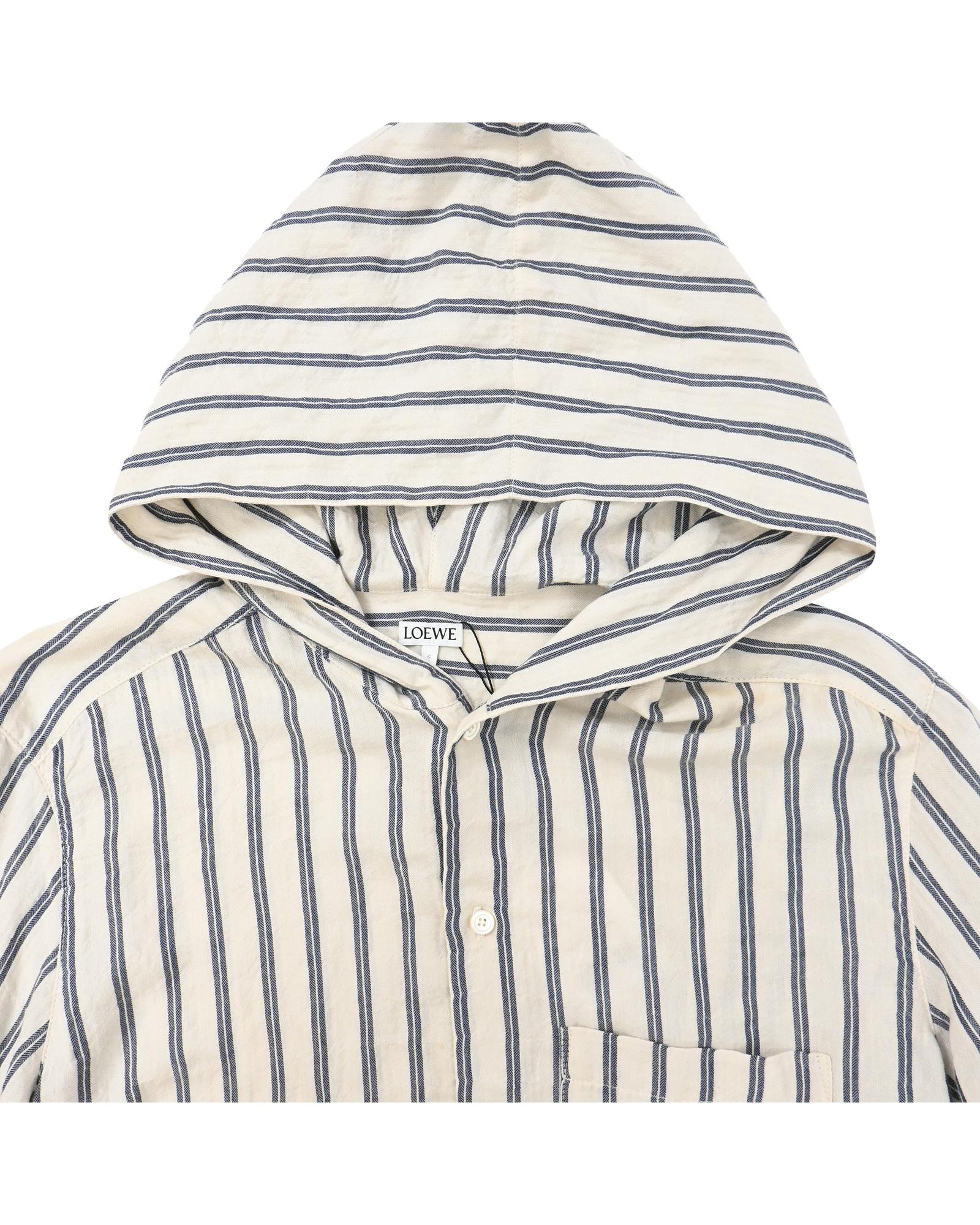 • Loewe Anagram Striped Hooded Shirt in White and Blue Cotton