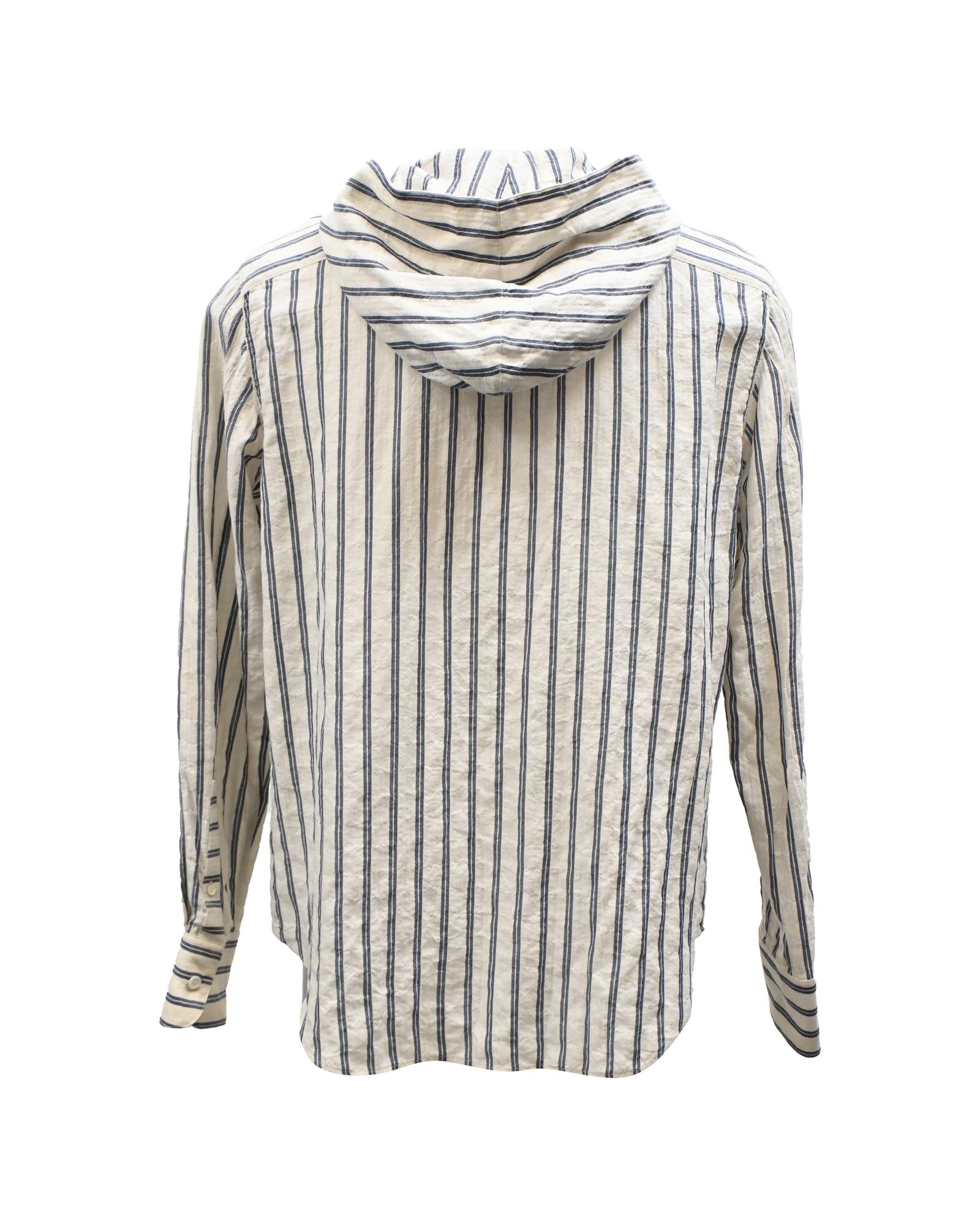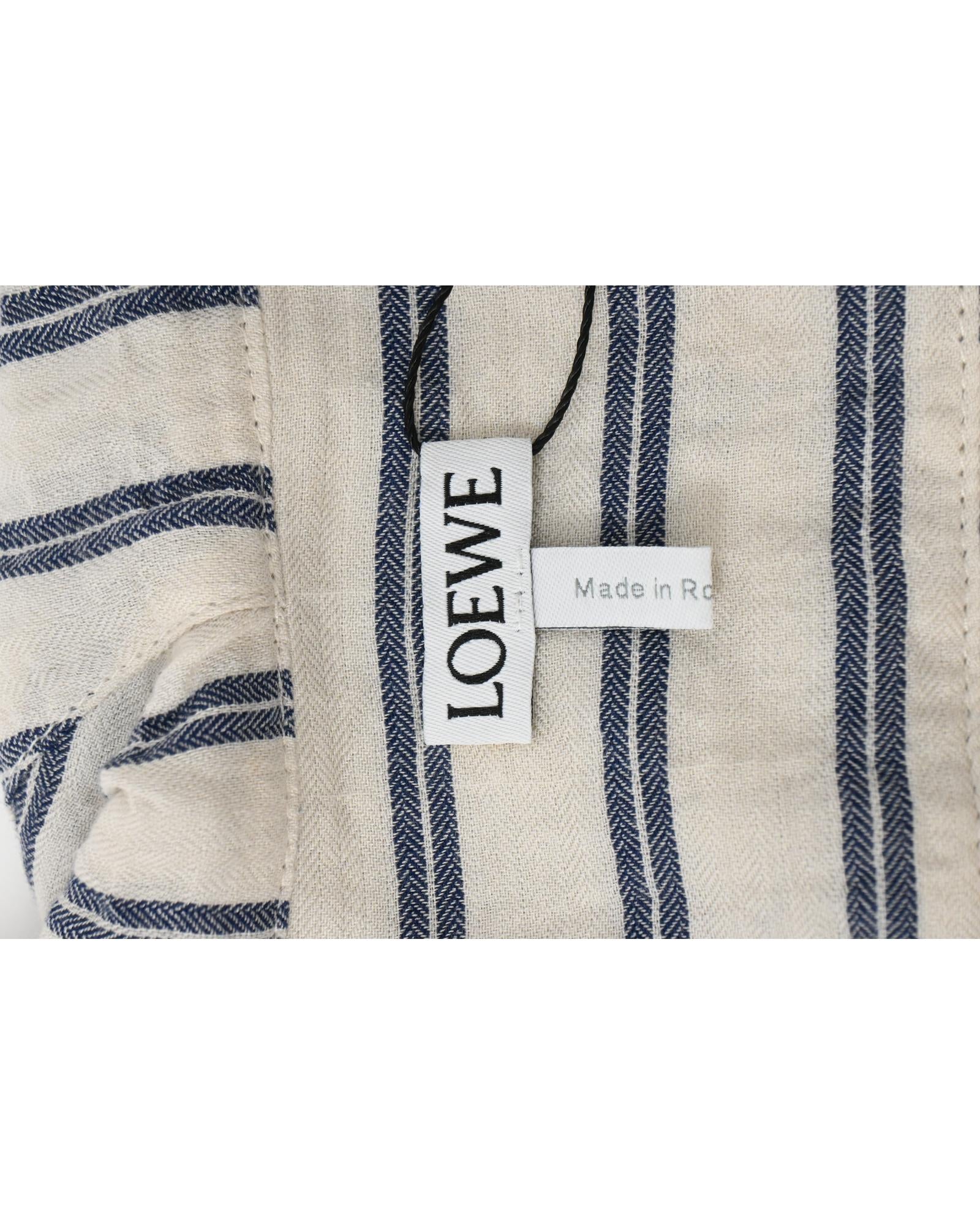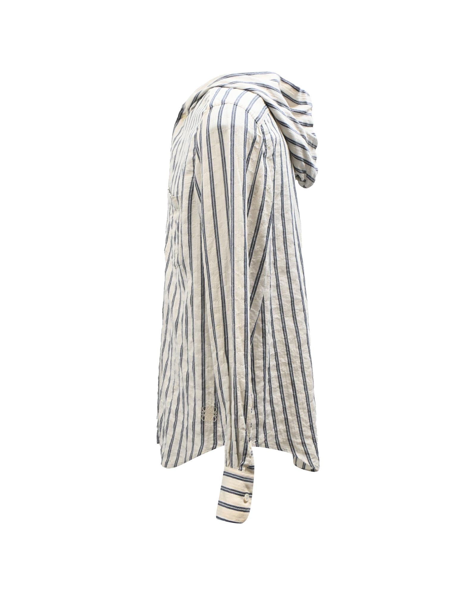 • Loewe Anagram Striped Hooded Shirt in White and Blue Cotton