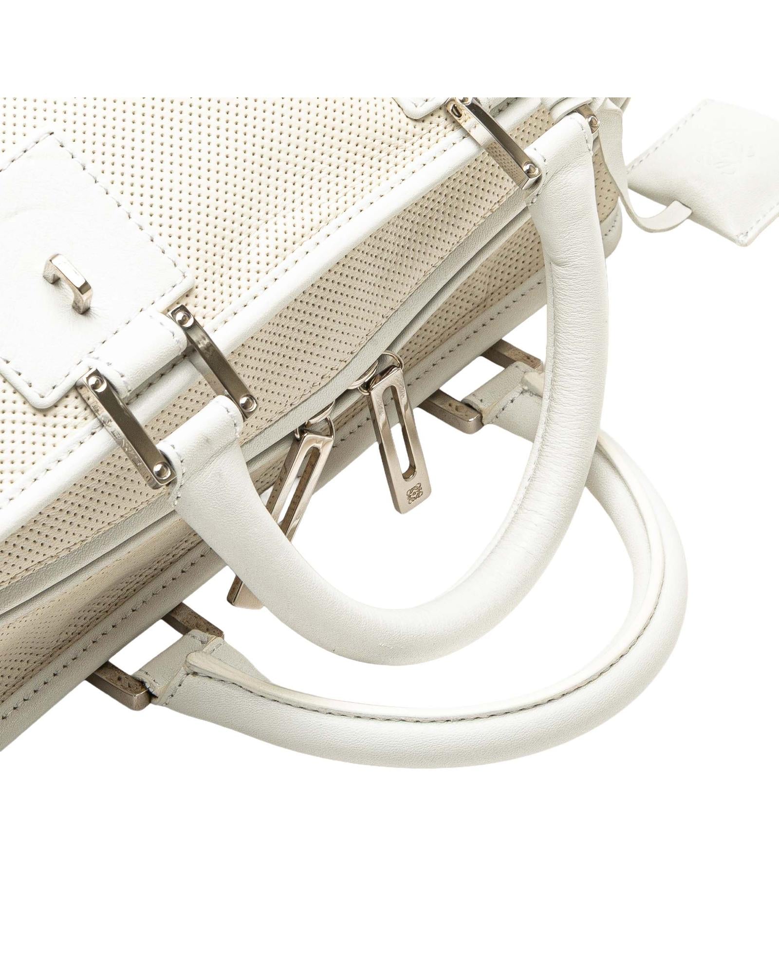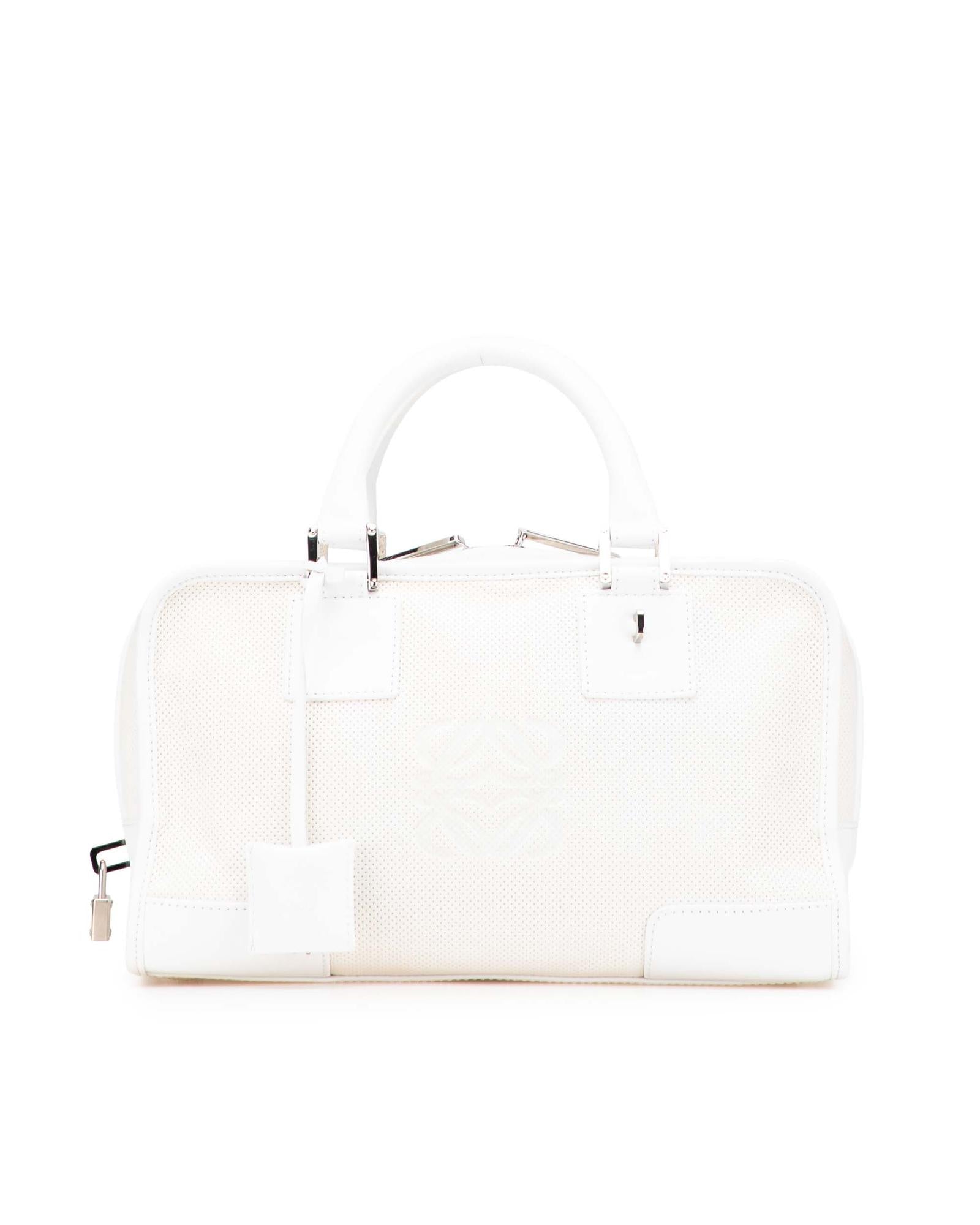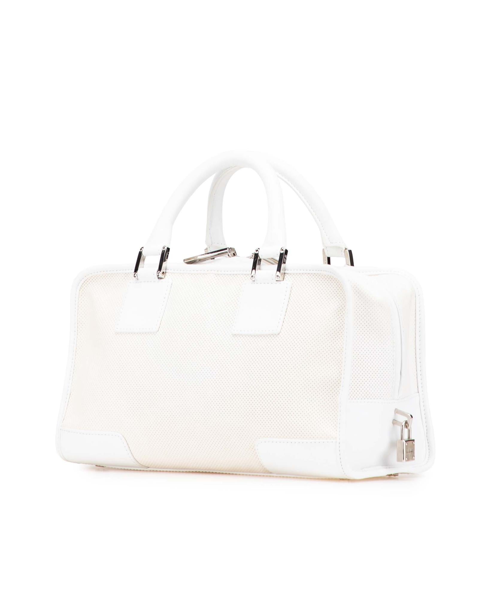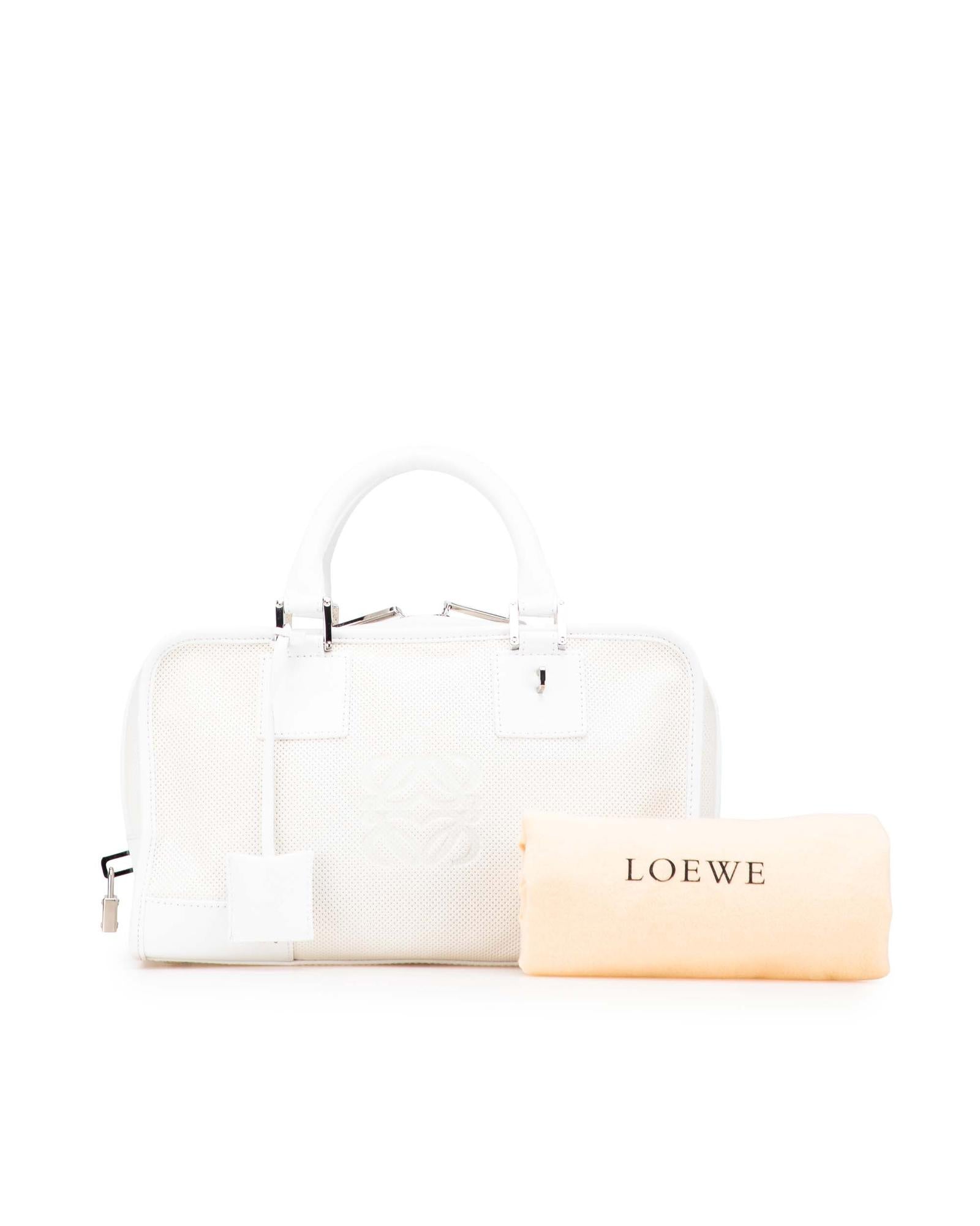 The Amazona 28 features a perforated leather body rolled leather handles a top zip closure and interior zip and slip pockets.Brand: LOEWE Vintage