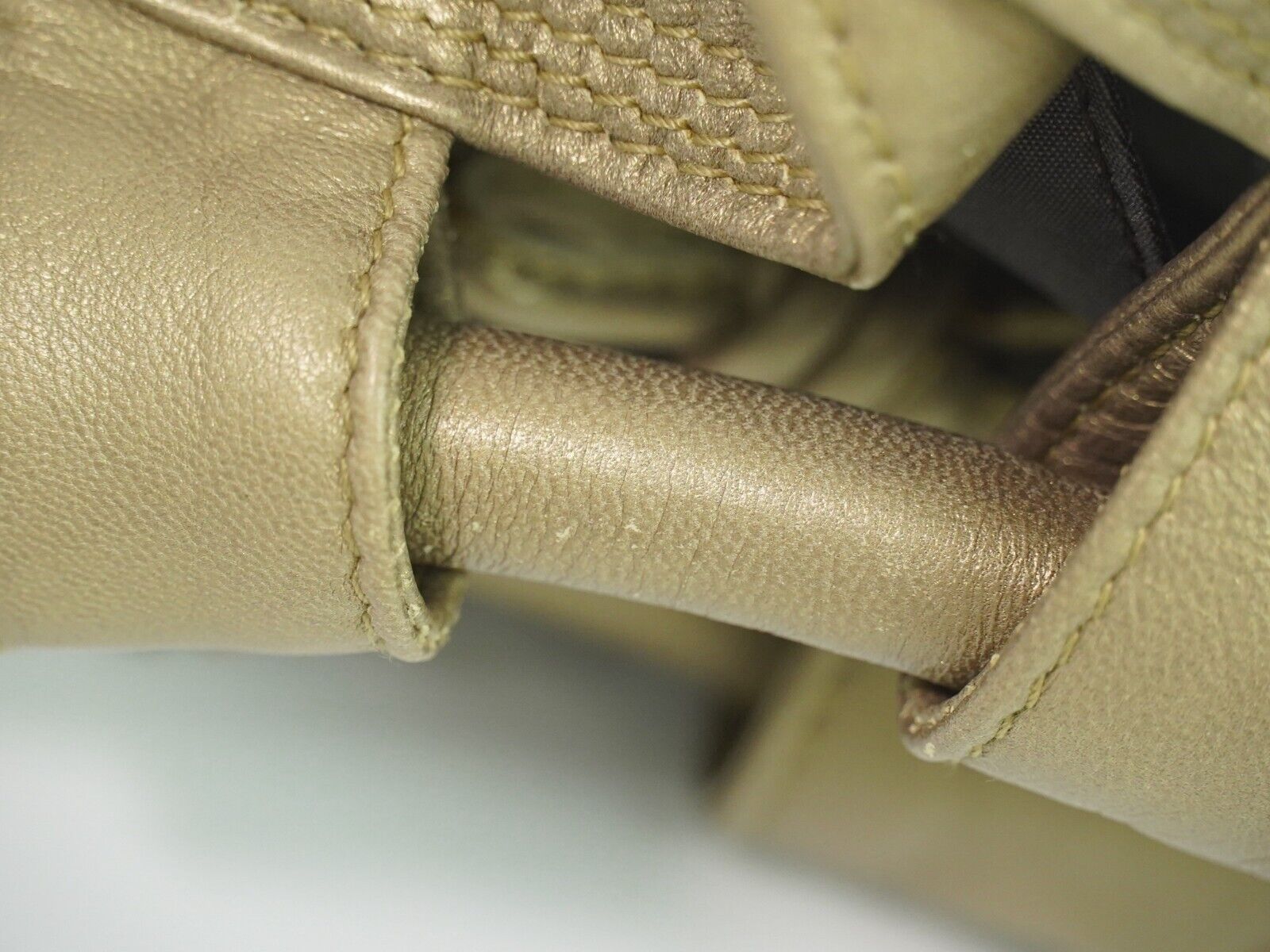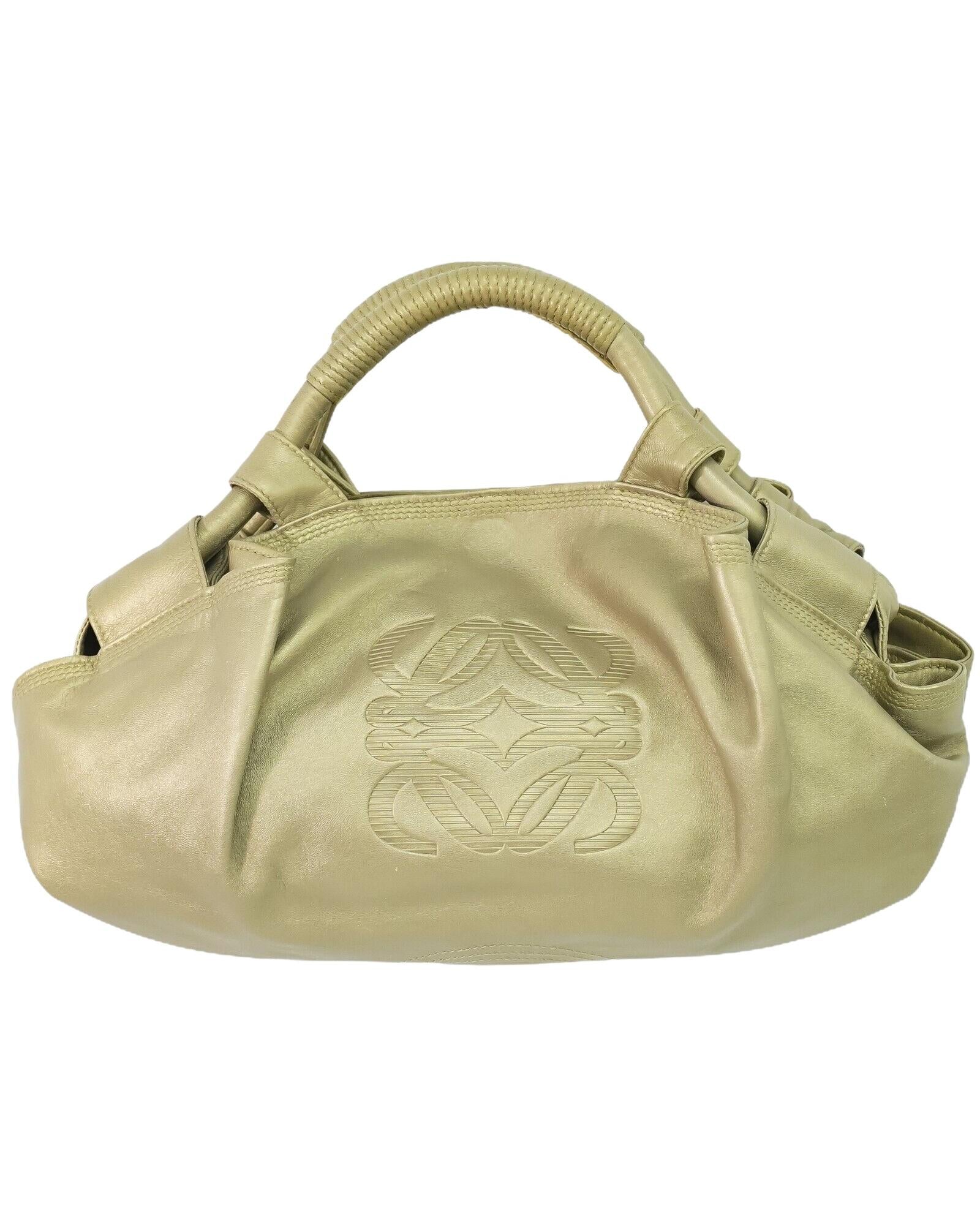 Brand: Loewe Model: Nappa Color: Gold Material: Leather Inclusions: / Dimensions: W 29 cm x H 25 cm x D 8 cm Serial number: 06906 Country of origin: Spain Condition: AB - good condition. The Nappa Air handbag by Loewe boasts a luxurious golden aesthetic crafted from exquisite leather elevating any ensemble with its innate elegance. Tailored specifically for the feminine department and meticulously produced in Spain this accessory infuses a dash of sophistication into every outfit it accompanies. On the outside there is a slight loss of shape scratches and slightly rubbed corners as well as slightly worn handles. Inside a few minor stains and scratches are present. We recommend that you look at all the pictures before making your purchase to ensure that you are satisfied with the condition of the bag.