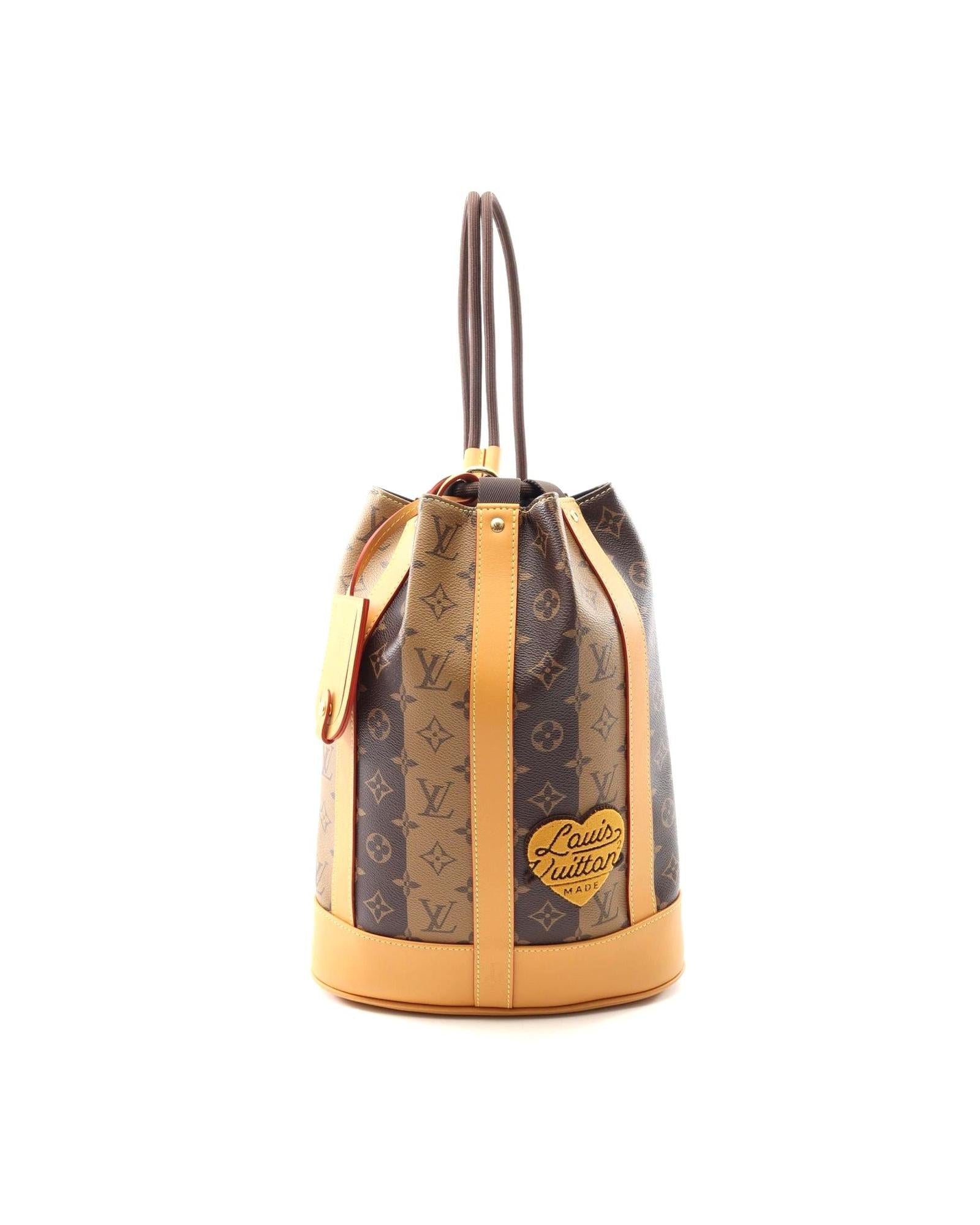 Pre-owned Striped Bucket Handbag Fashionable and Versatile Drawstring Closure Stylish Accessory