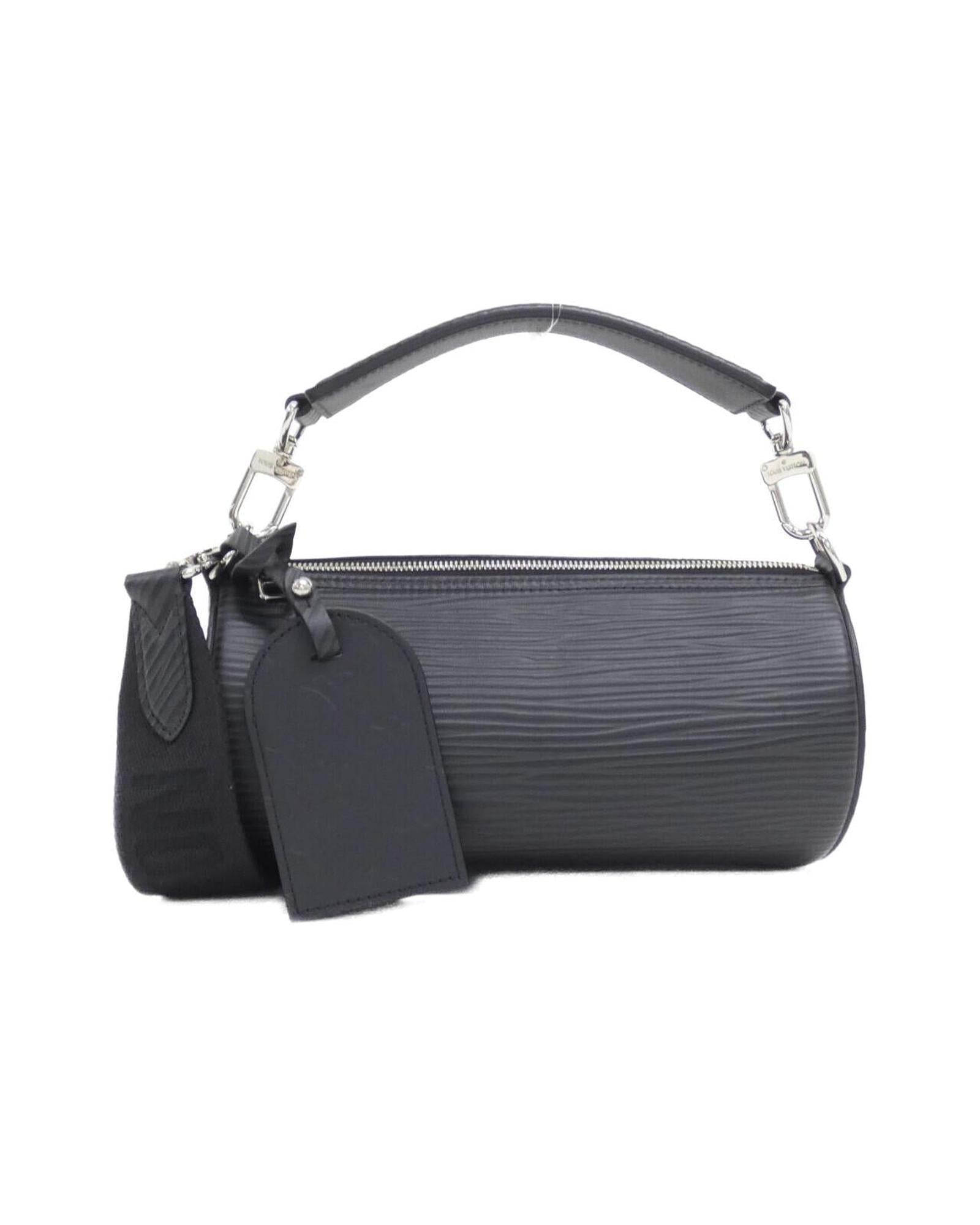 Pre-owned Elegant Leather Cylinder Handbag with Shoulder Strap Accessory
