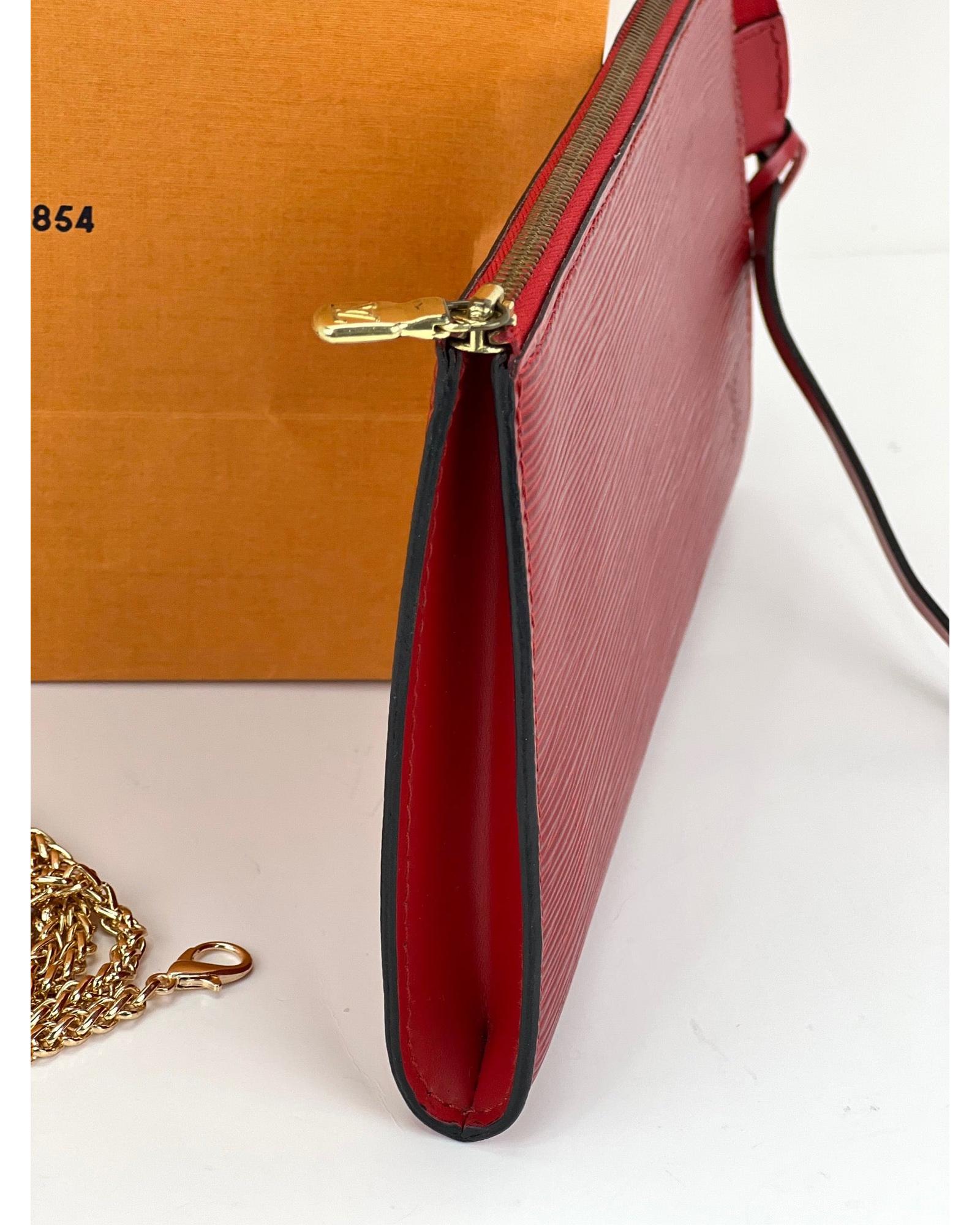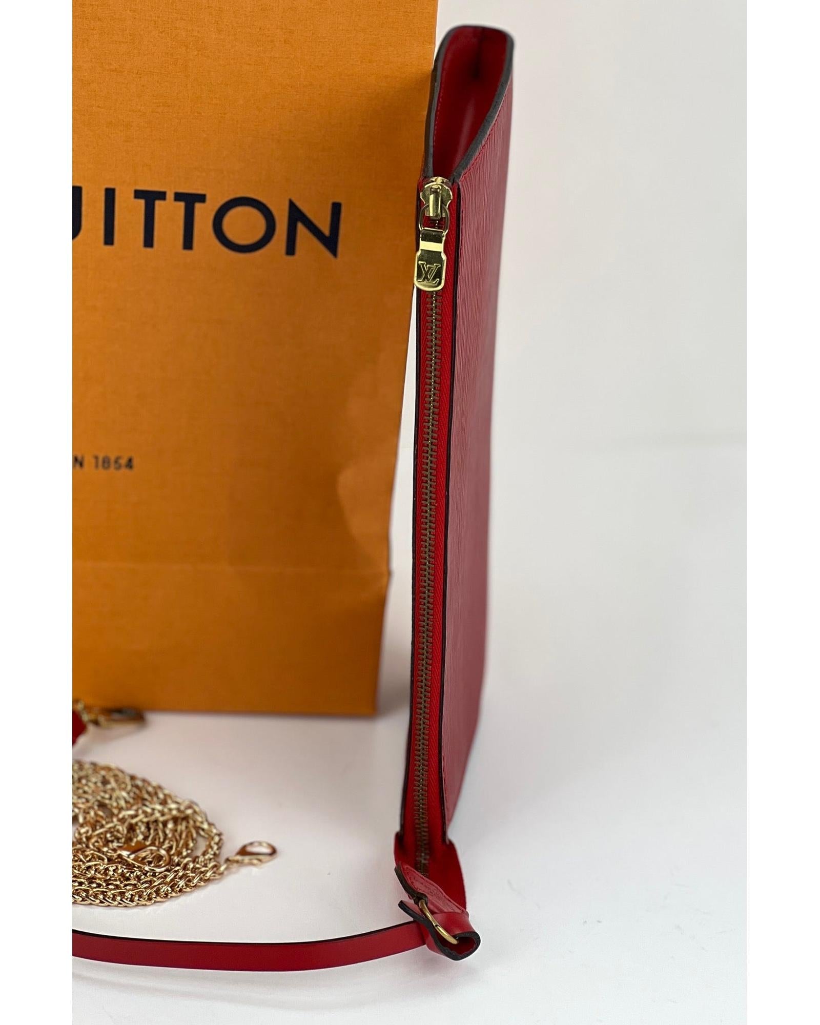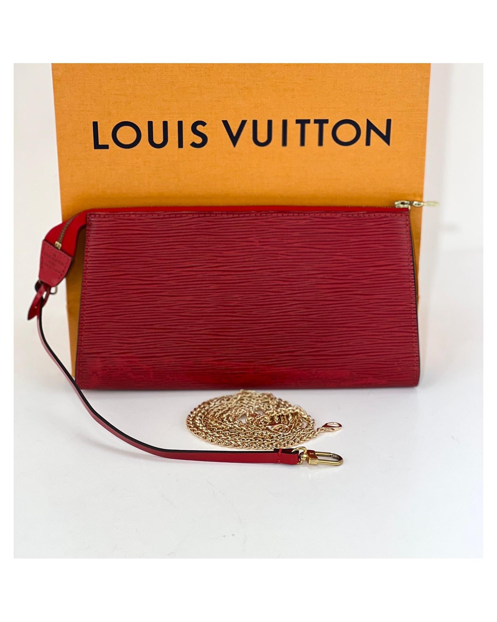 - Included: Non LV Golden strap 48 long LV Red Leather removable Strap with 1 claw hook 11.5 long