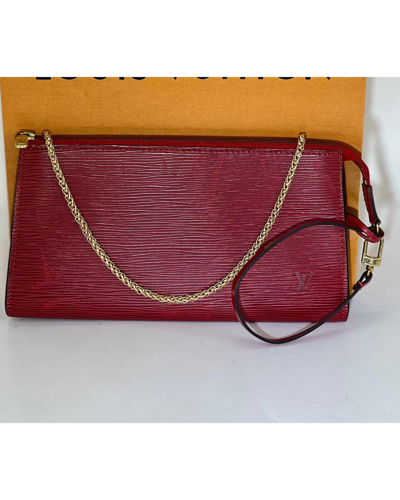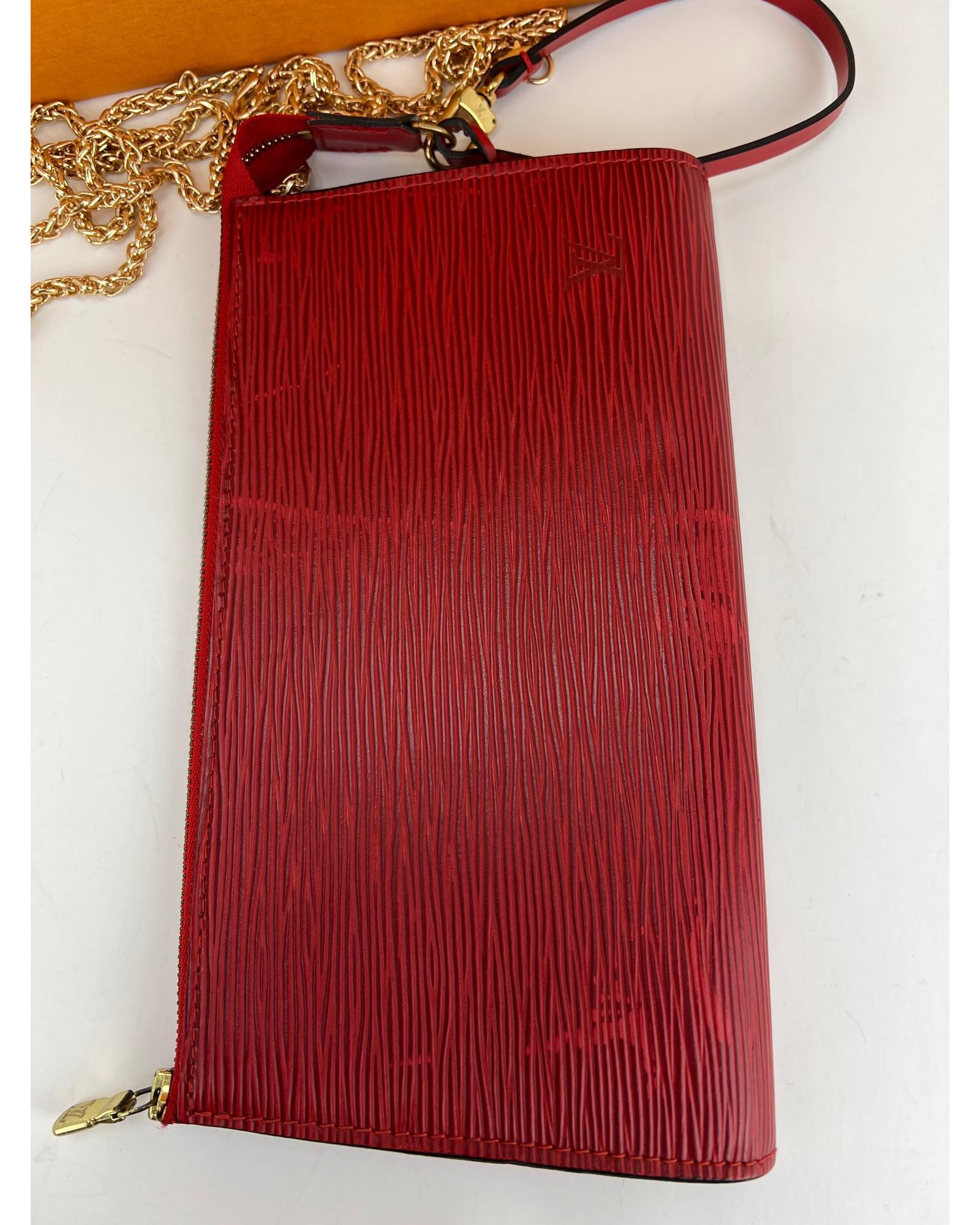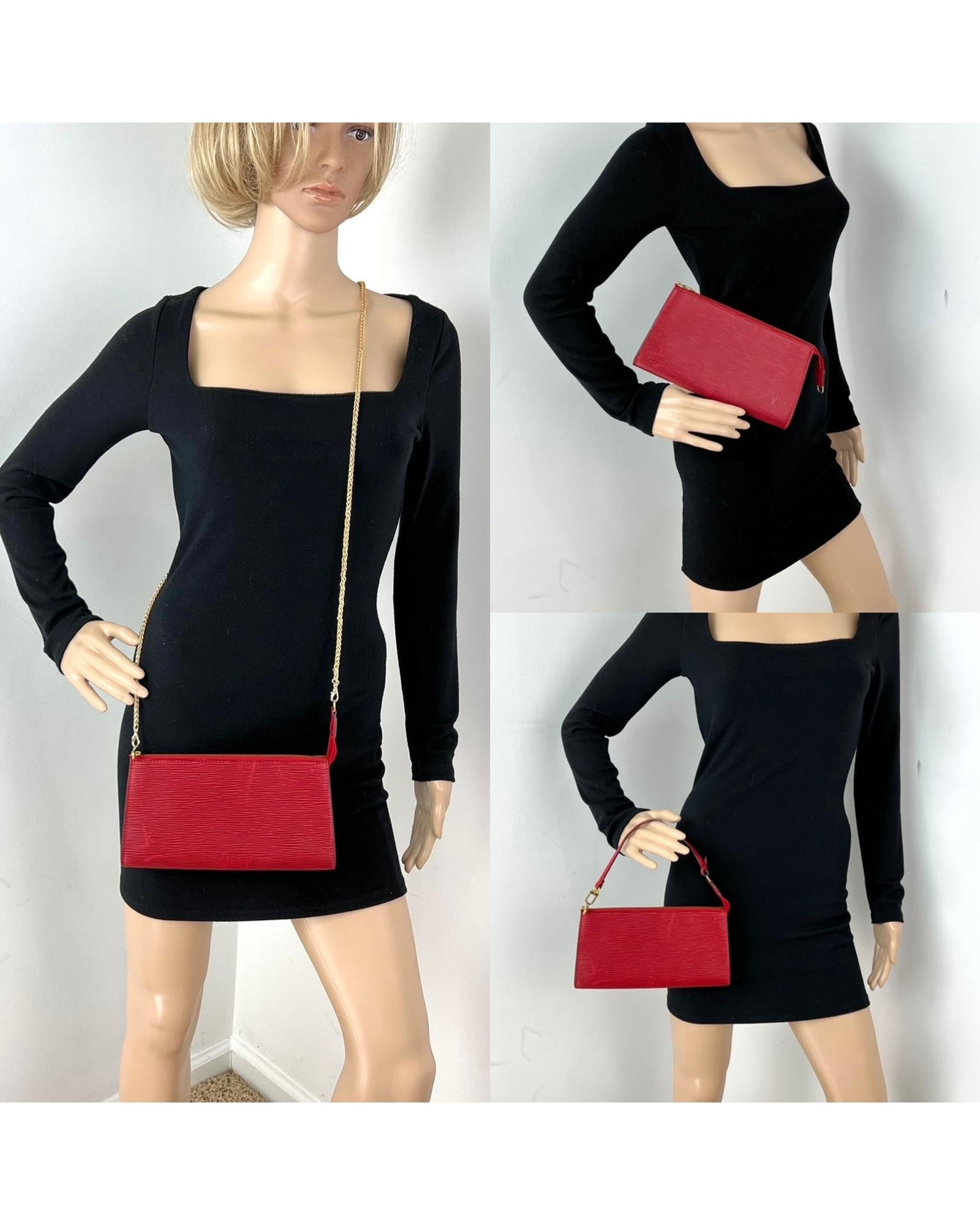 - Included: Non LV Golden strap 48 long LV Red Leather removable Strap with 1 claw hook 11.5 long