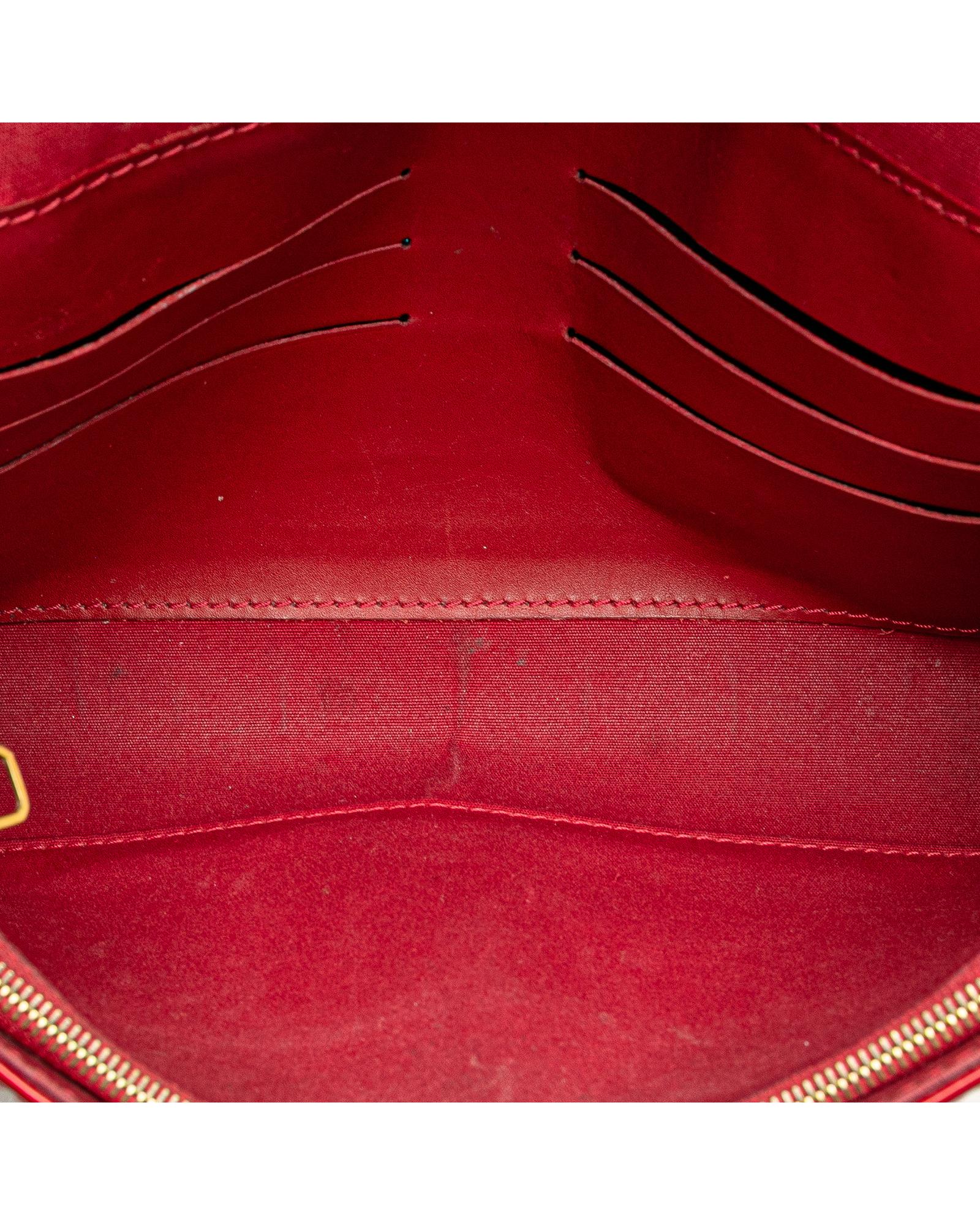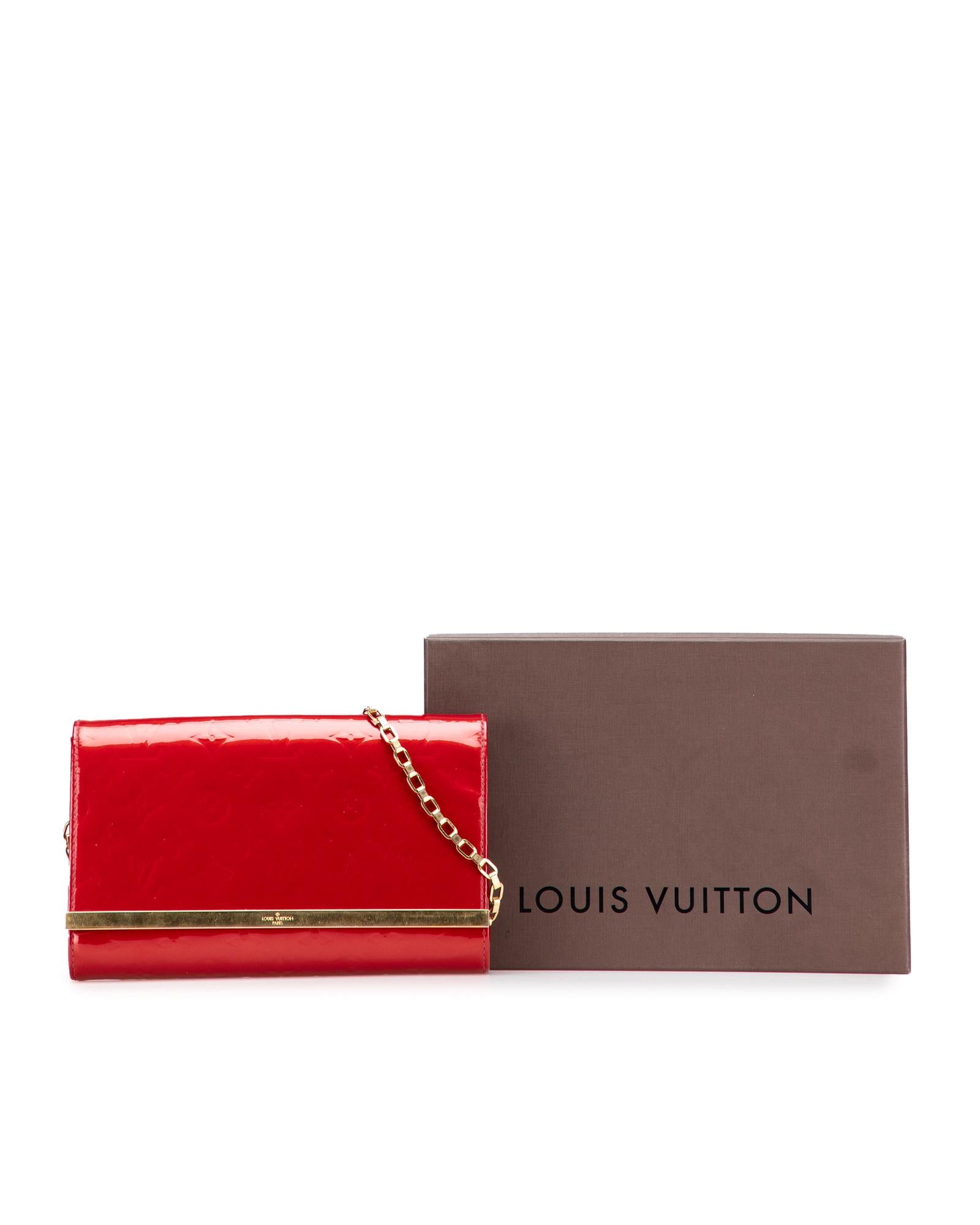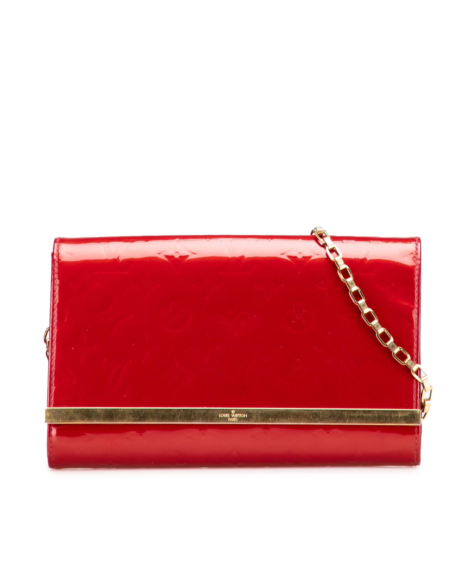 The Ana crossbody bag features a monogram vernis leather body a chain link strap a flap with magnetic closure and interior zip and slip pockets.Brand: Louis Vuitton Vintage