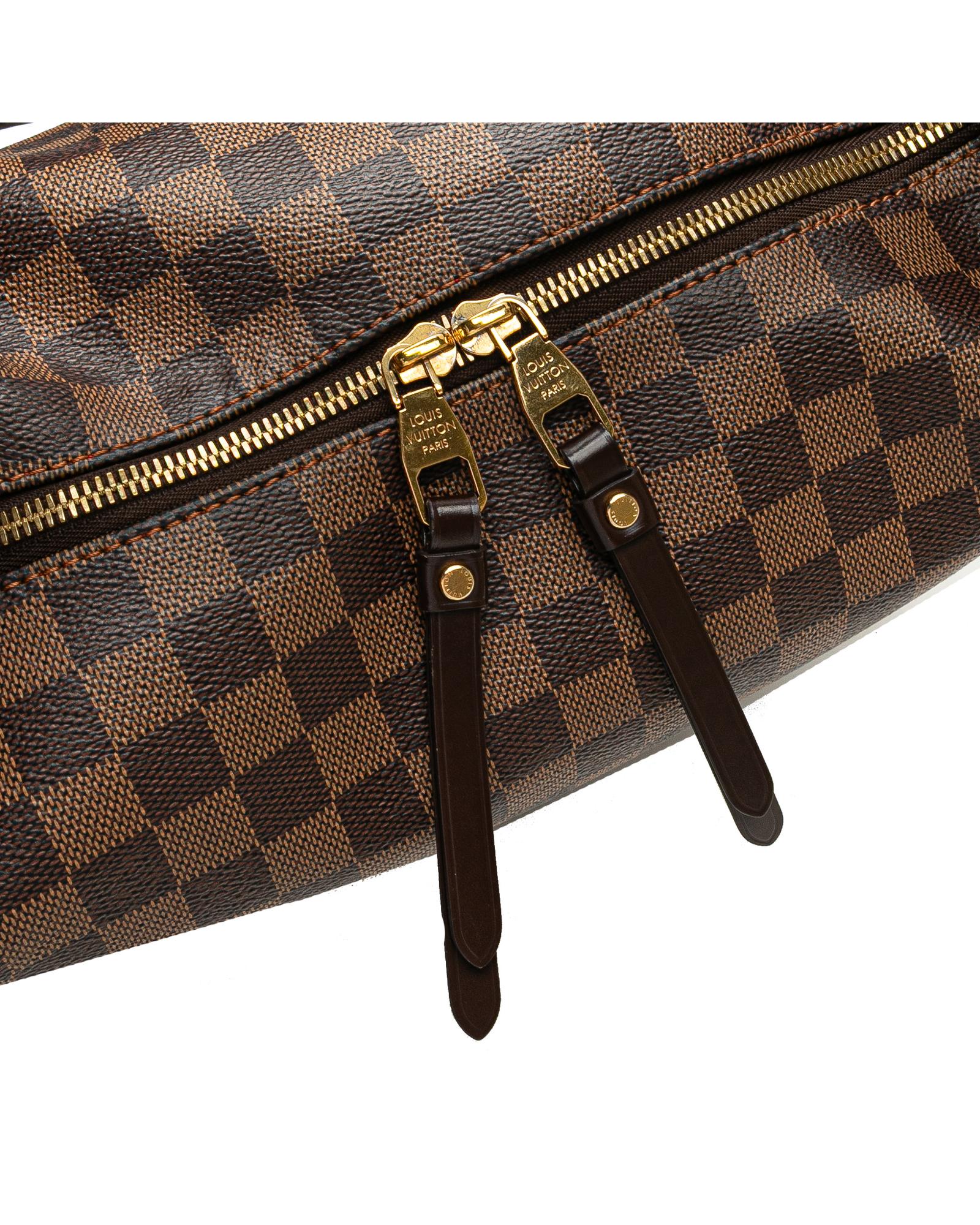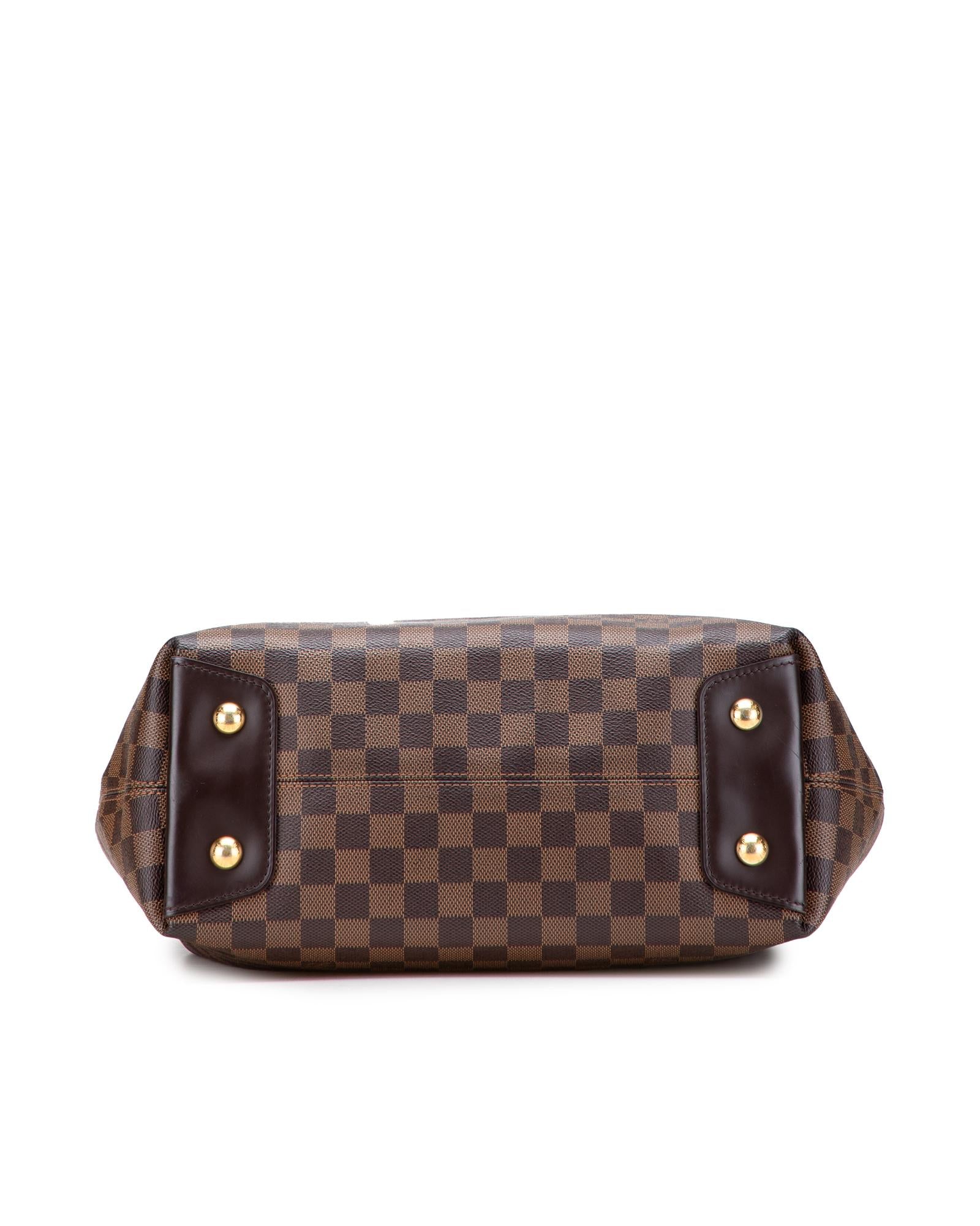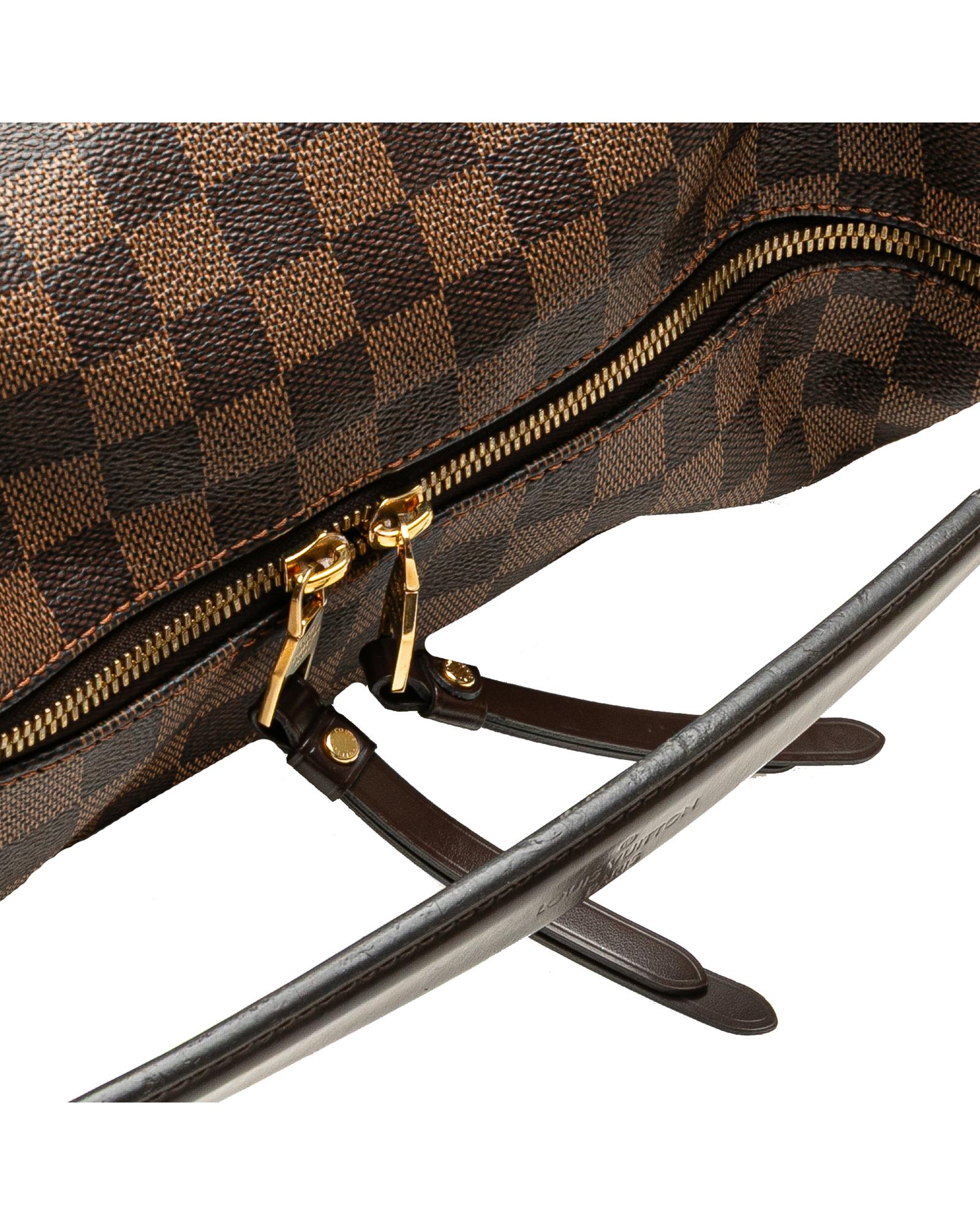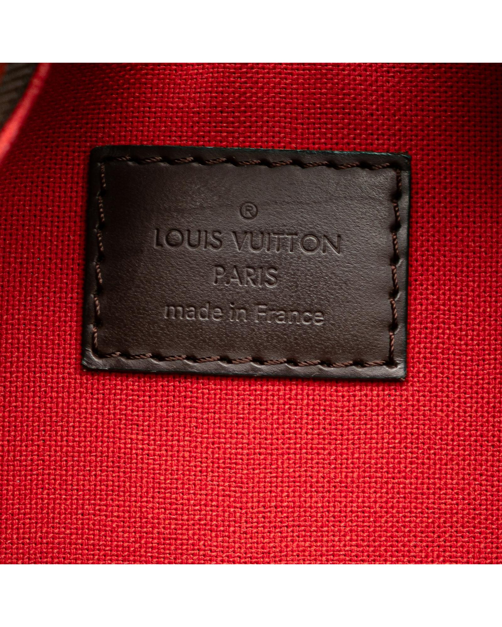 The Duomo features a damier ebene canvas body with leather trim a flat leather strap a two-way top zip closure and interior slip pockets.Brand: Louis Vuitton Vintage