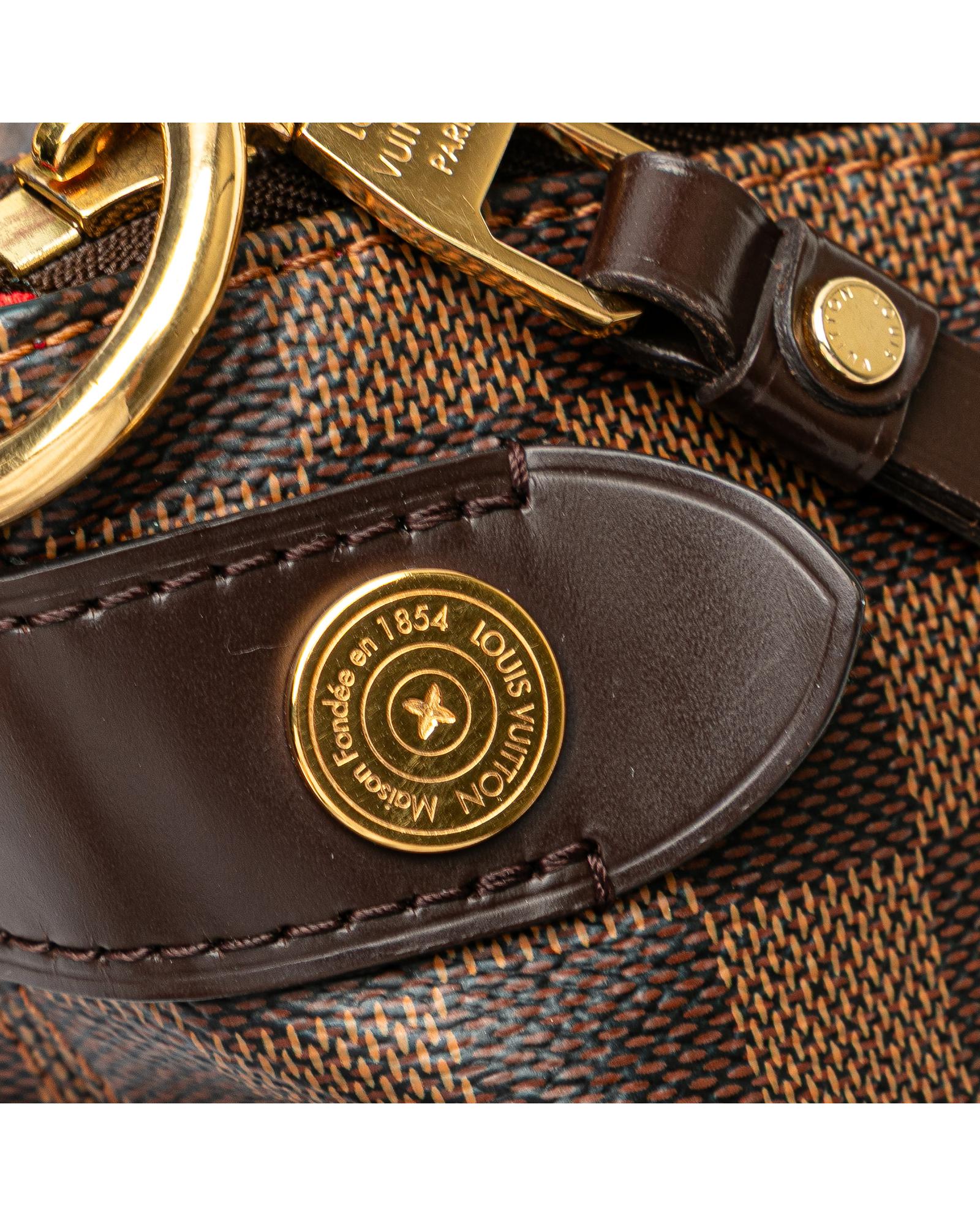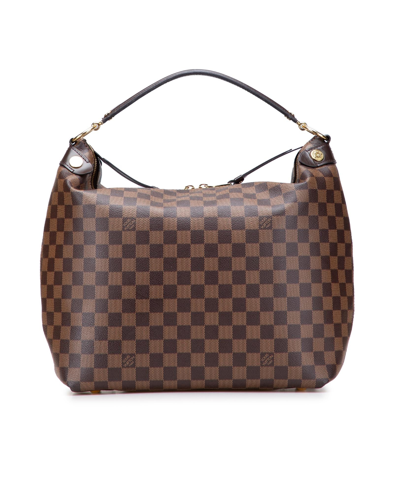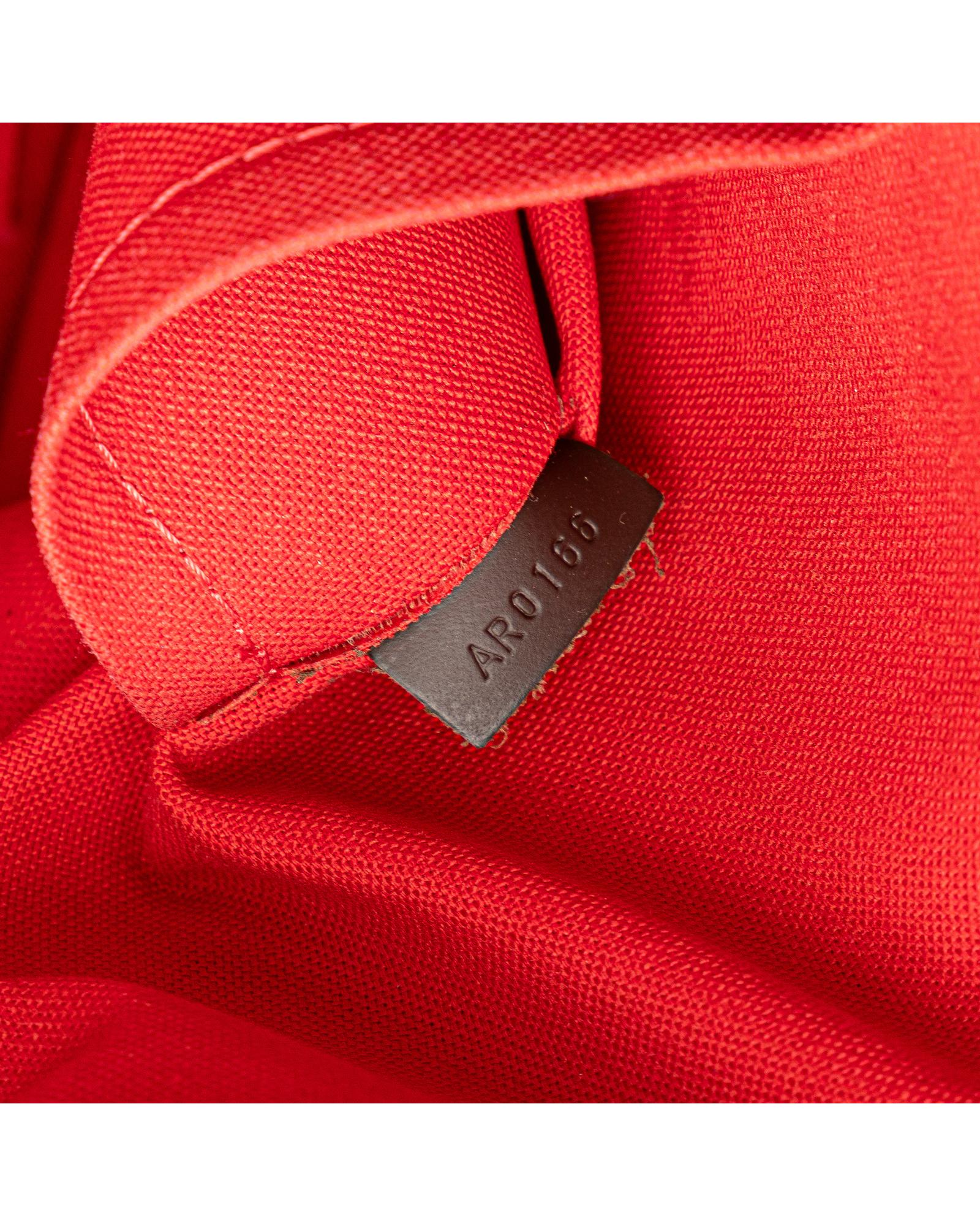 The Duomo features a damier ebene canvas body with leather trim a flat leather strap a two-way top zip closure and interior slip pockets.Brand: Louis Vuitton Vintage