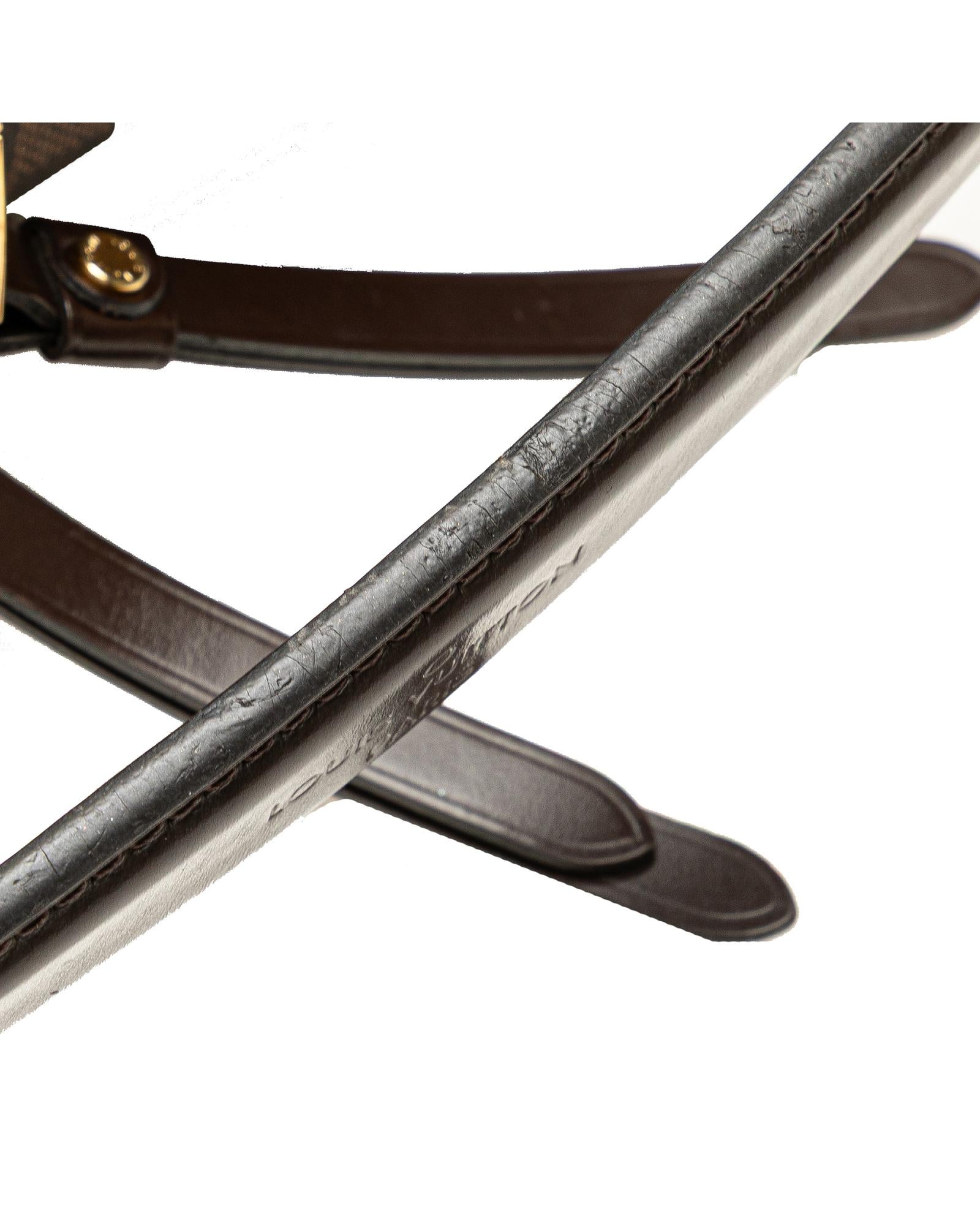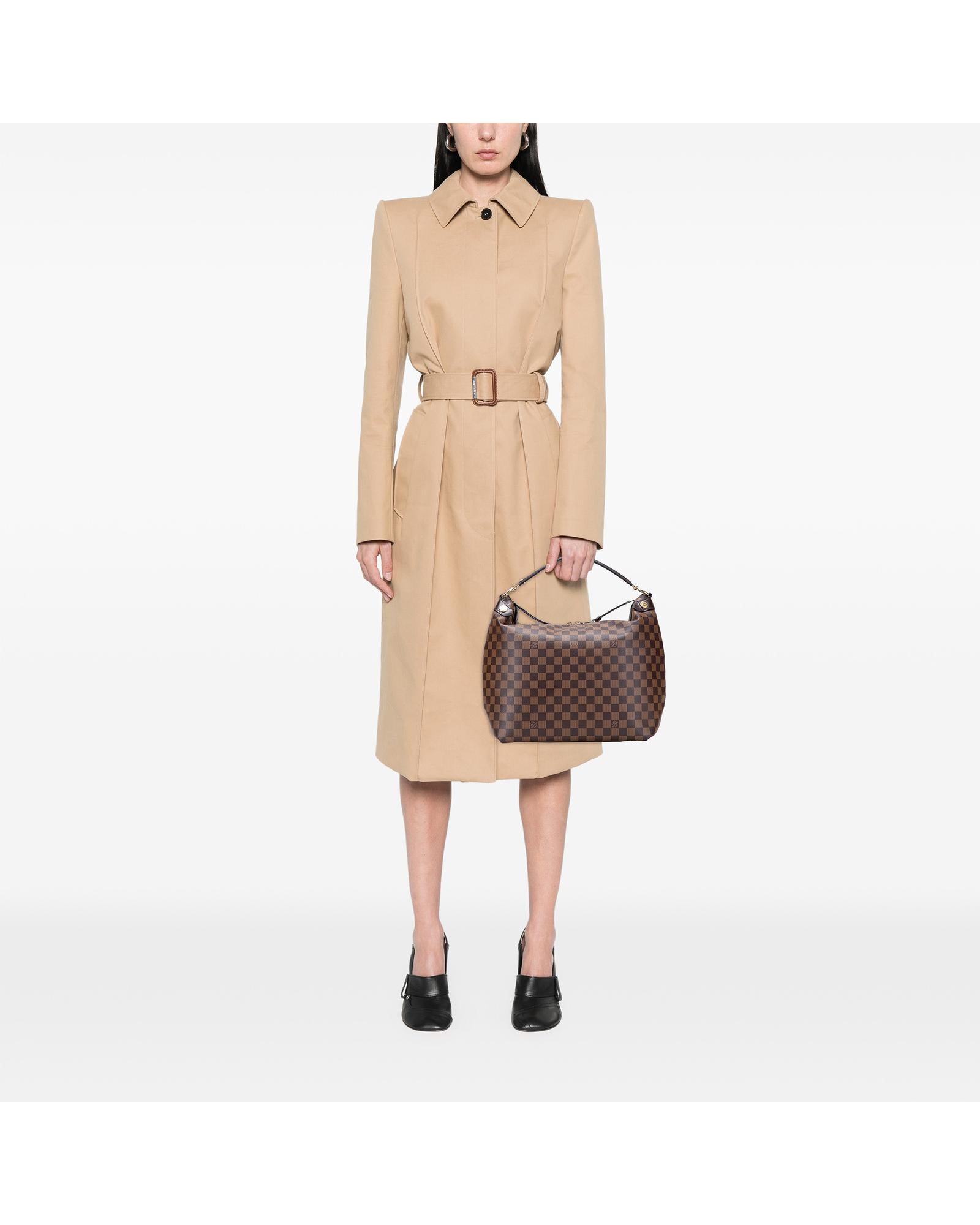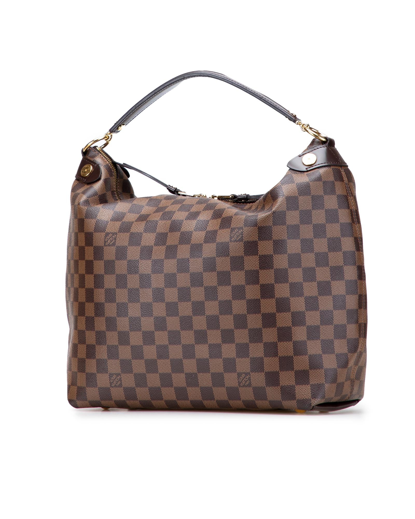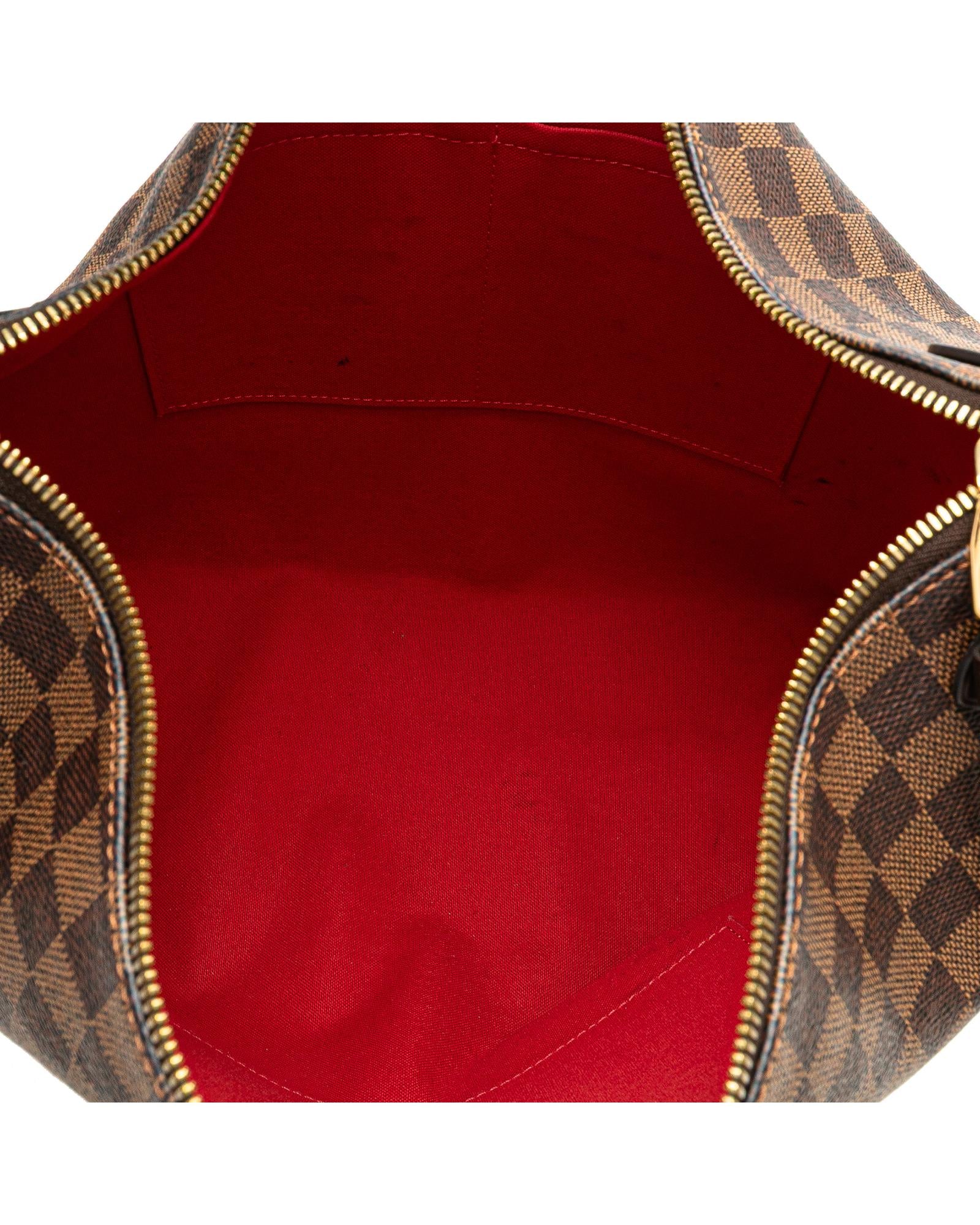 The Duomo features a damier ebene canvas body with leather trim a flat leather strap a two-way top zip closure and interior slip pockets.Brand: Louis Vuitton Vintage