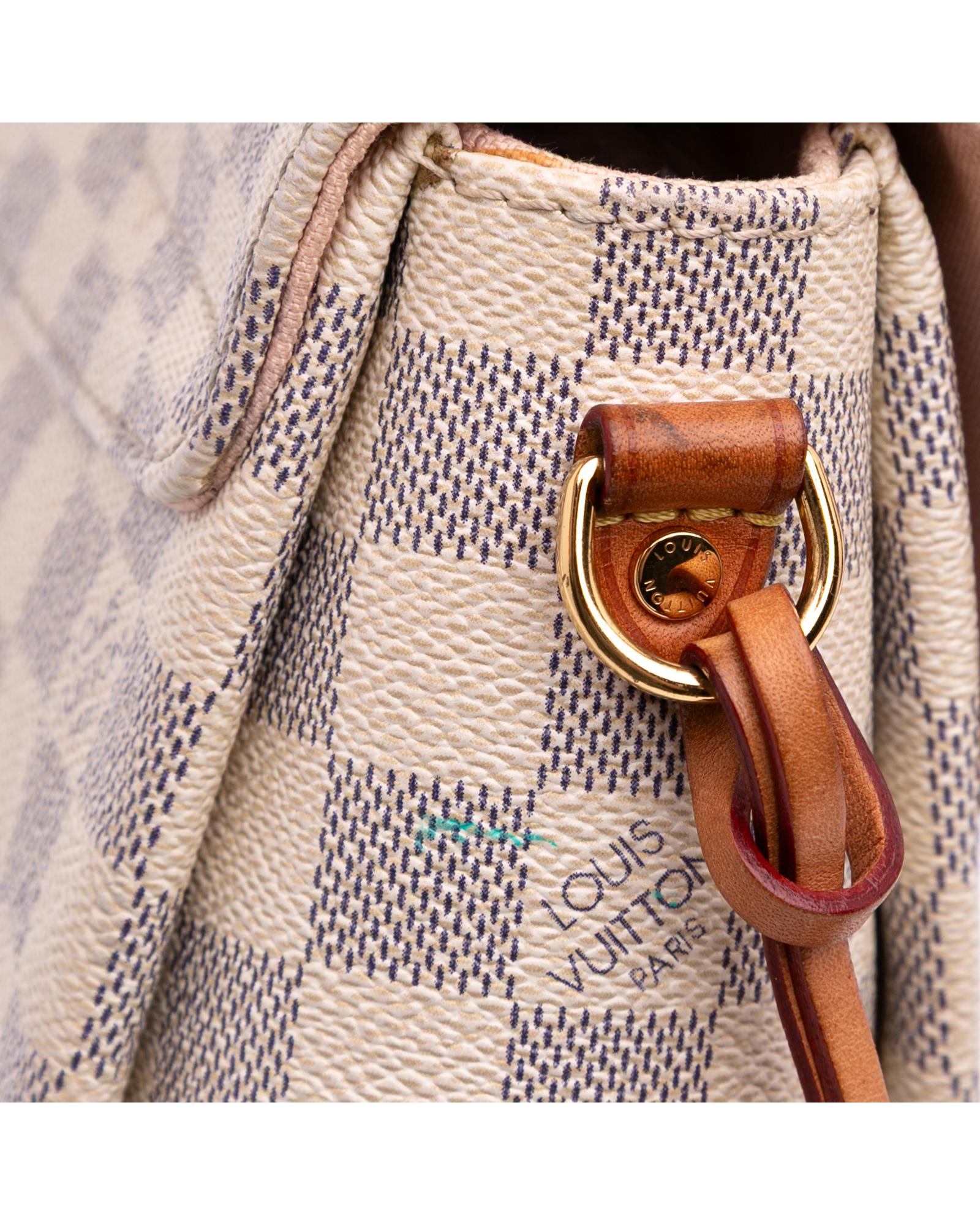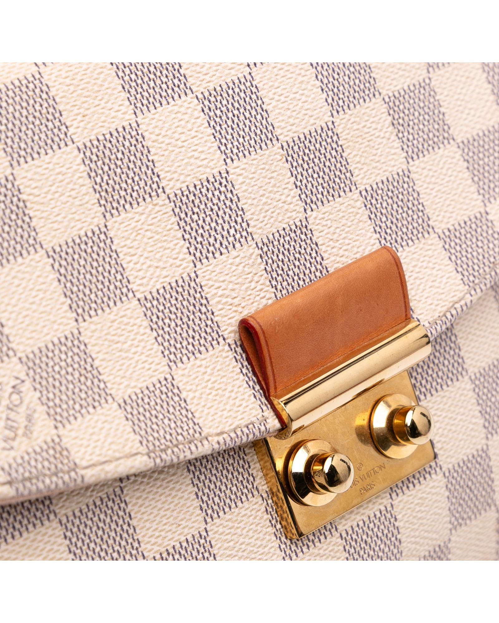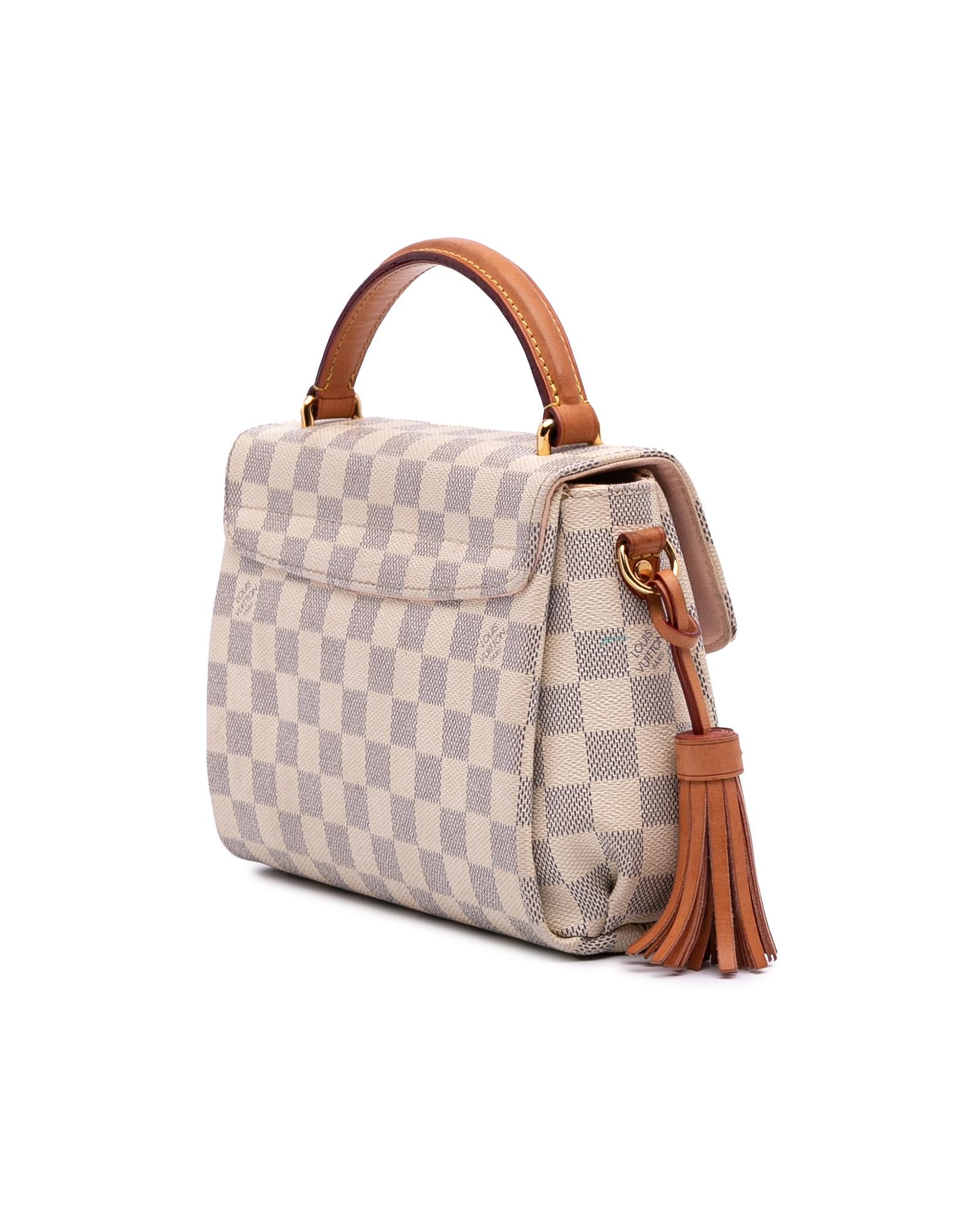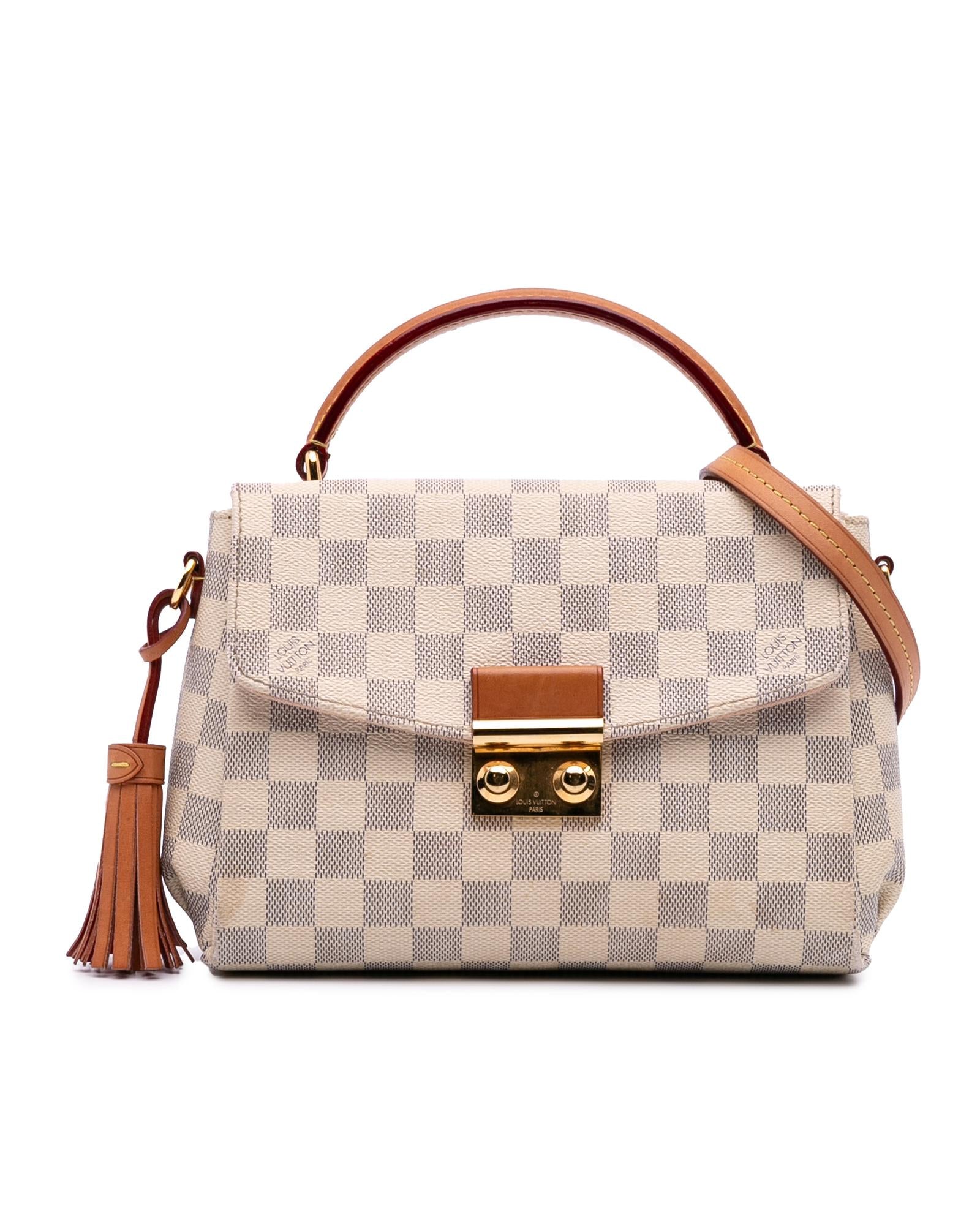 The Croisette features a damier azur canvas body with vachetta leather trim a leather tassel detail a flat vachetta leather top handle a detachable flat vachetta leather strap a front flap with a gold-tone push-lock closure and an interior slip pocket.Brand: Louis Vuitton Vintage