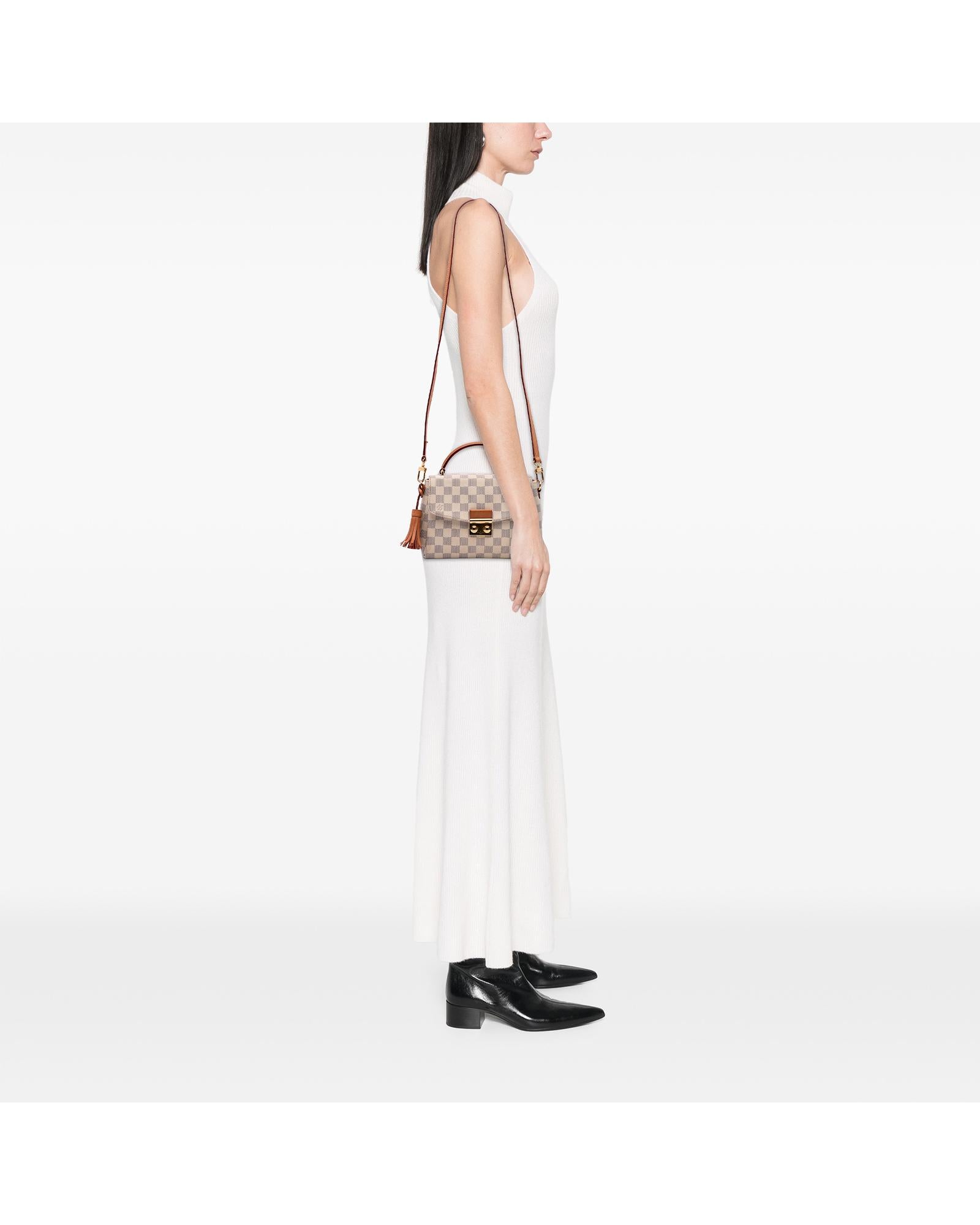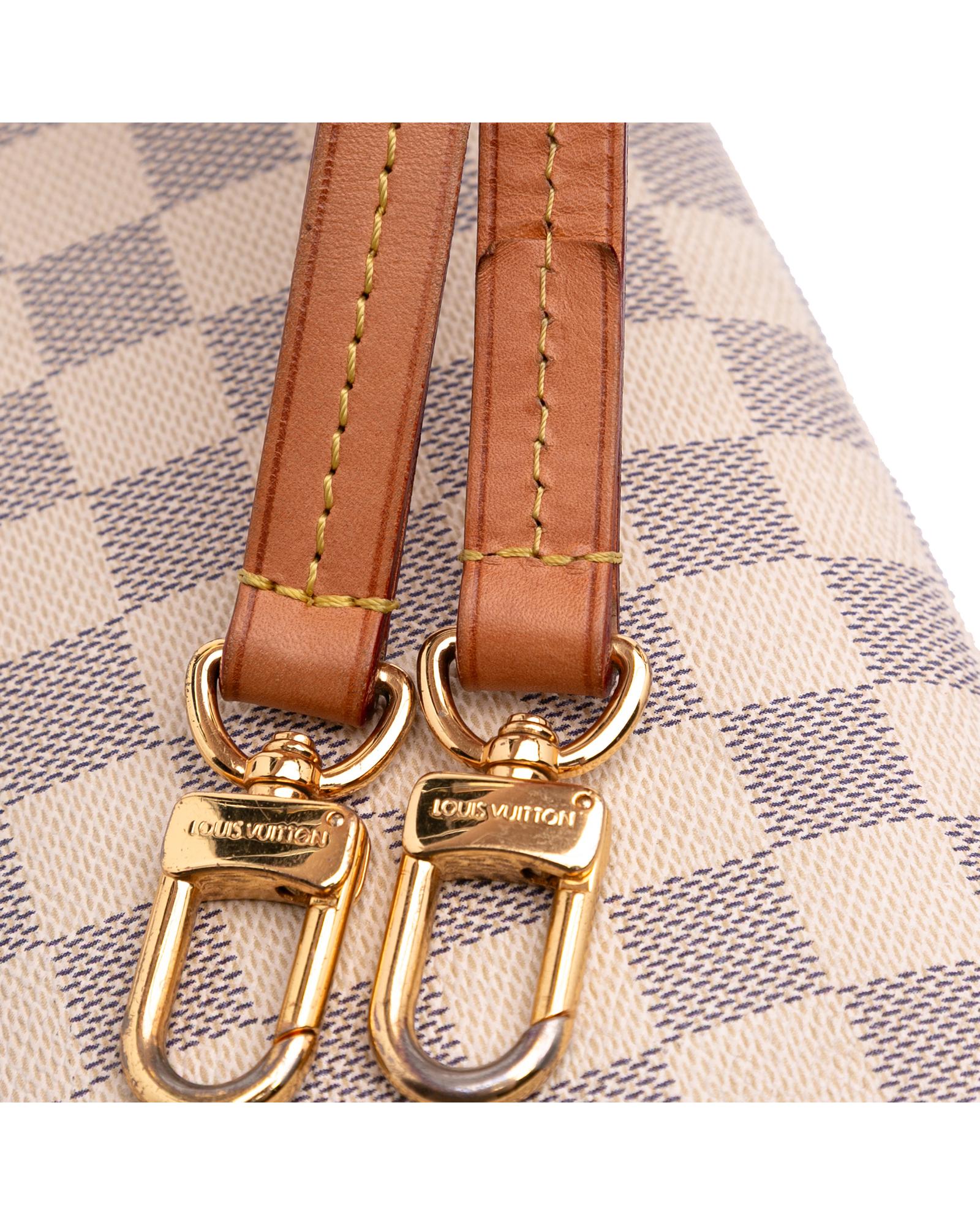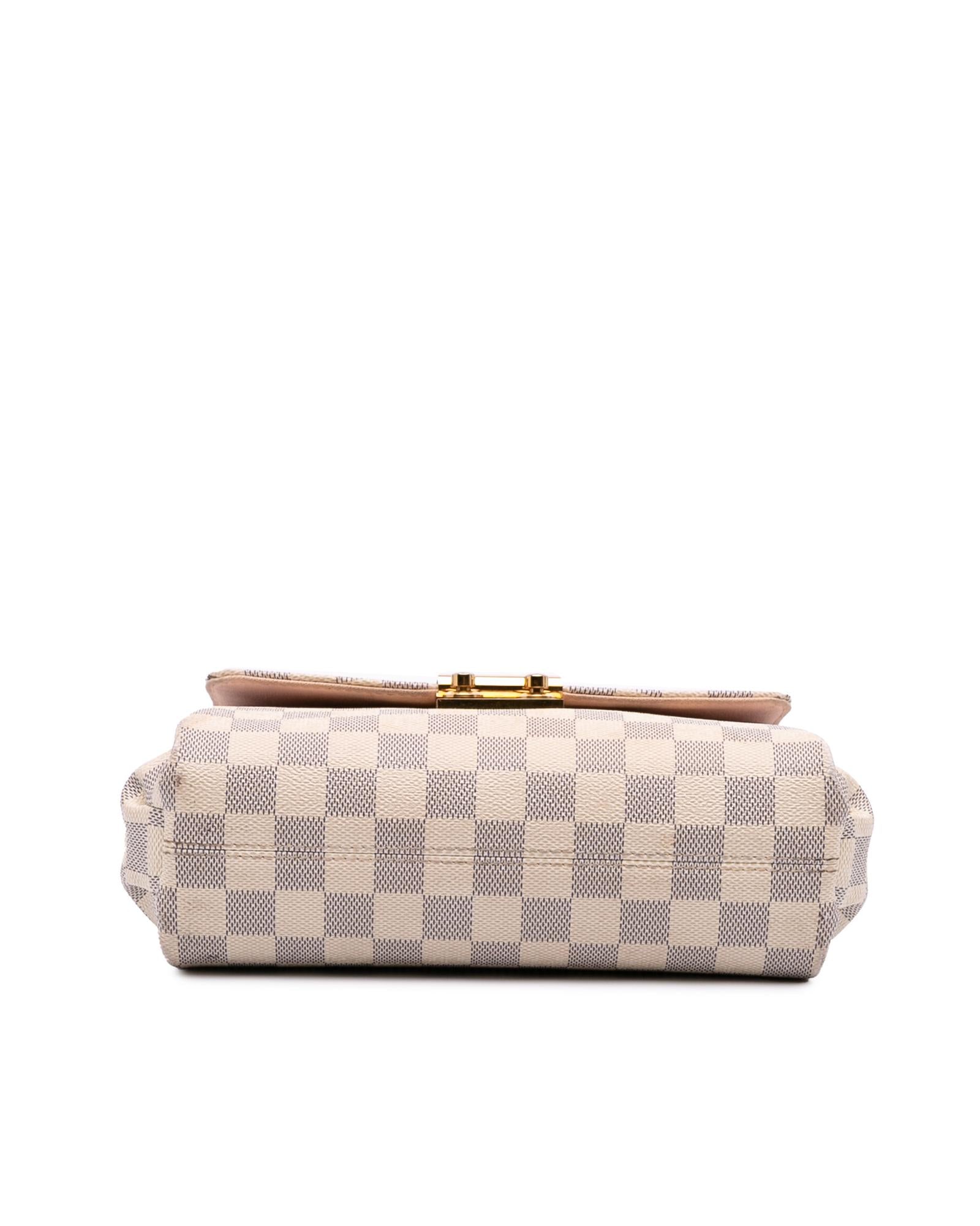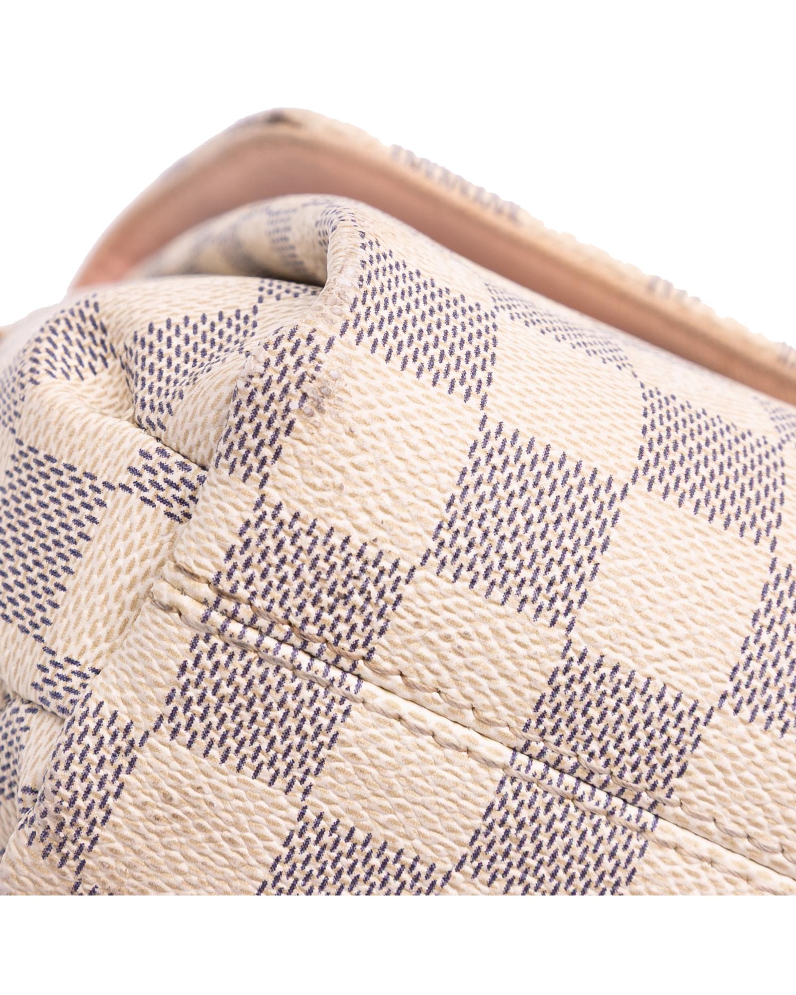 The Croisette features a damier azur canvas body with vachetta leather trim a leather tassel detail a flat vachetta leather top handle a detachable flat vachetta leather strap a front flap with a gold-tone push-lock closure and an interior slip pocket.Brand: Louis Vuitton Vintage