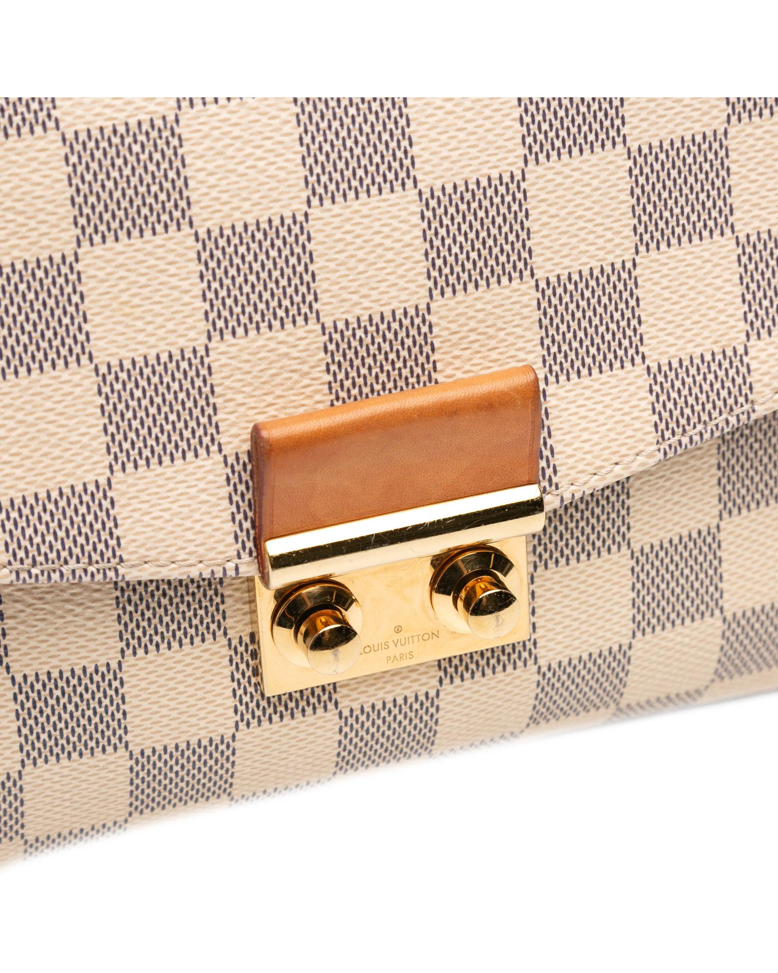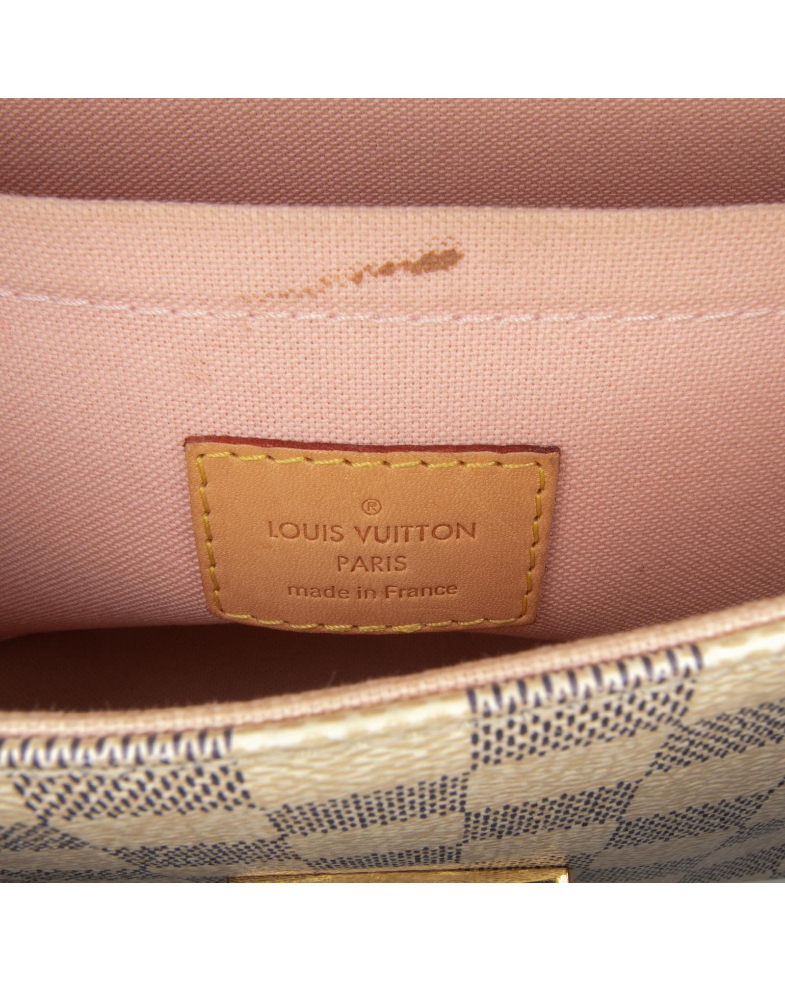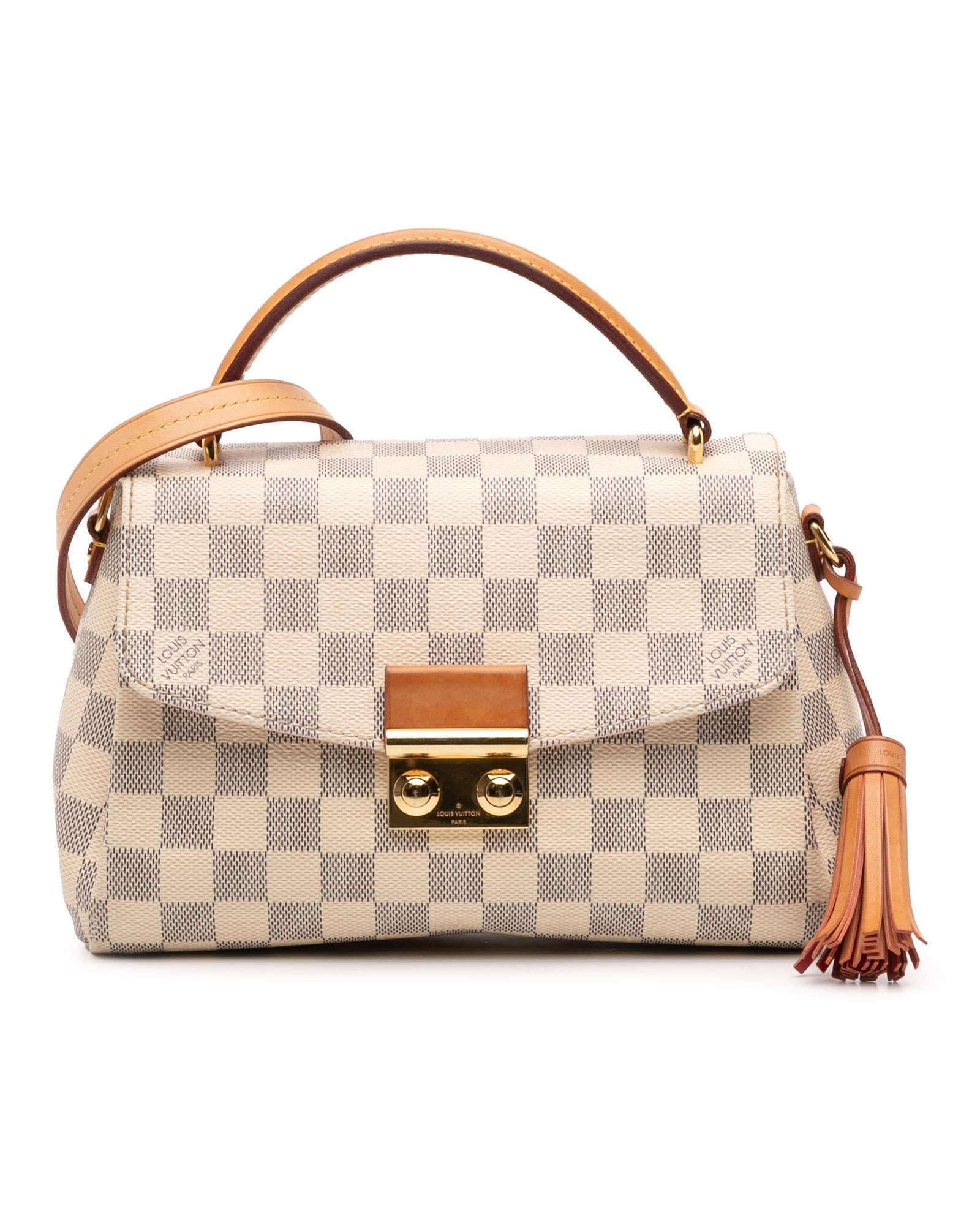 The Croisette features a damier azur canvas body with vachetta leather trim a leather tassel detail a flat vachetta leather top handle a detachable flat vachetta leather strap a front flap with a gold-tone push-lock closure and an interior slip pocket.Brand: Louis Vuitton Vintage