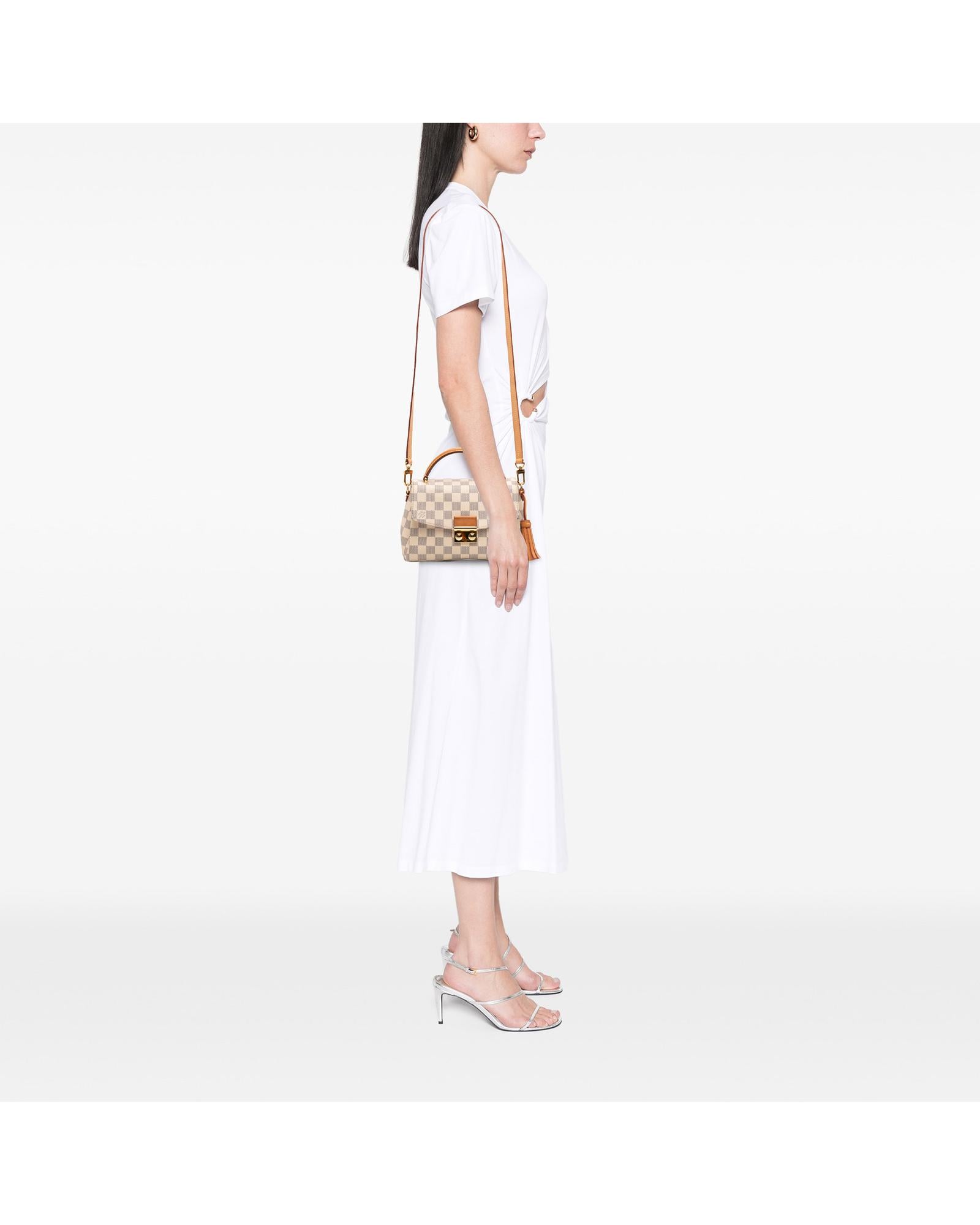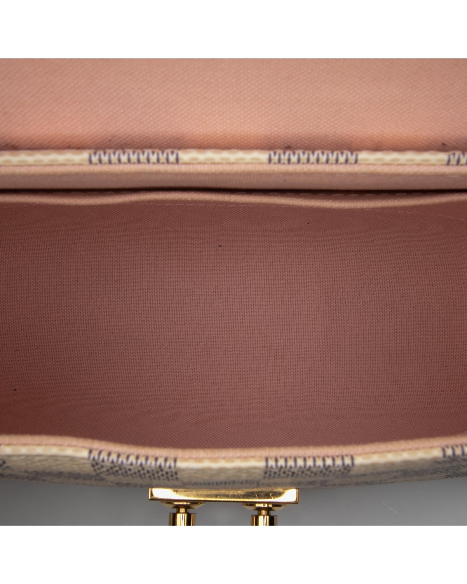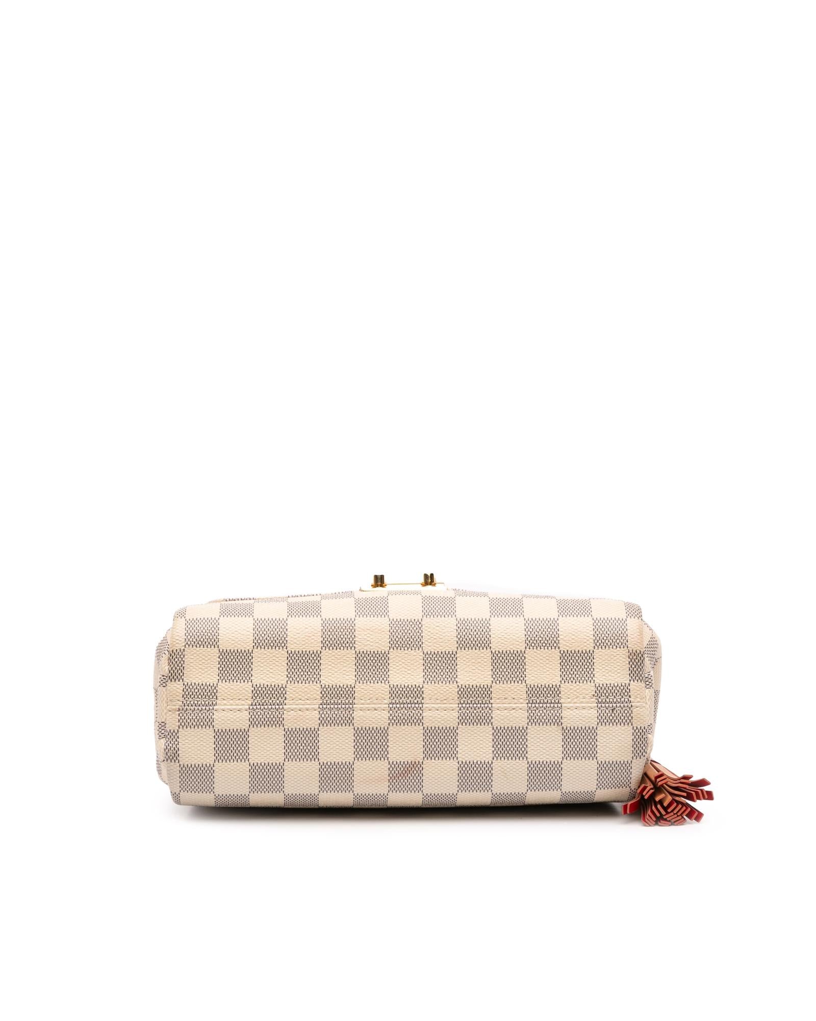 The Croisette features a damier azur canvas body with vachetta leather trim a leather tassel detail a flat vachetta leather top handle a detachable flat vachetta leather strap a front flap with a gold-tone push-lock closure and an interior slip pocket.Brand: Louis Vuitton Vintage