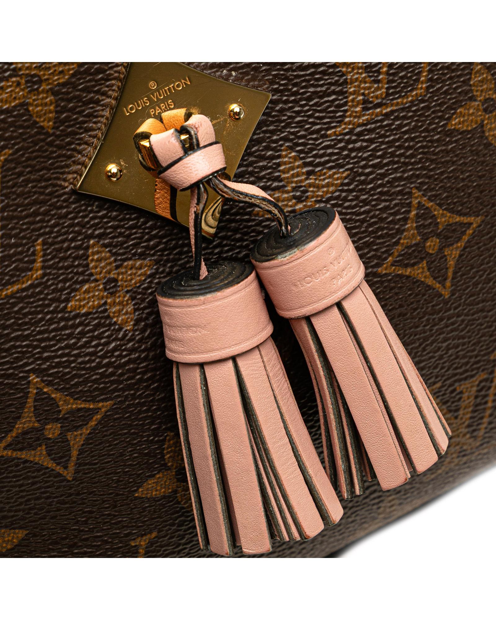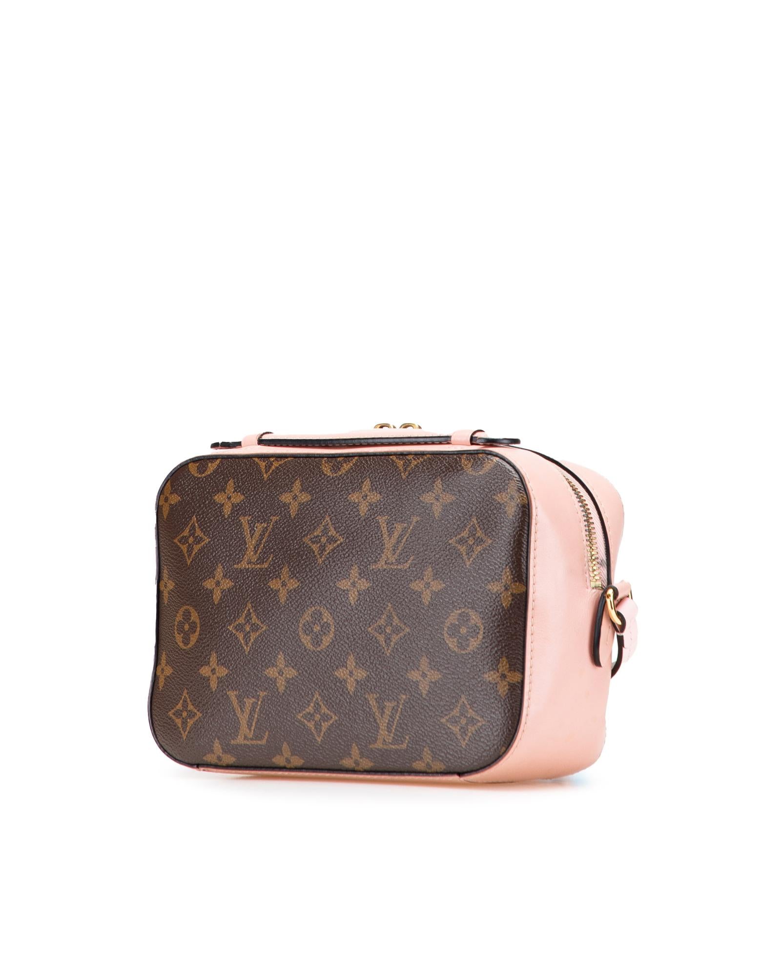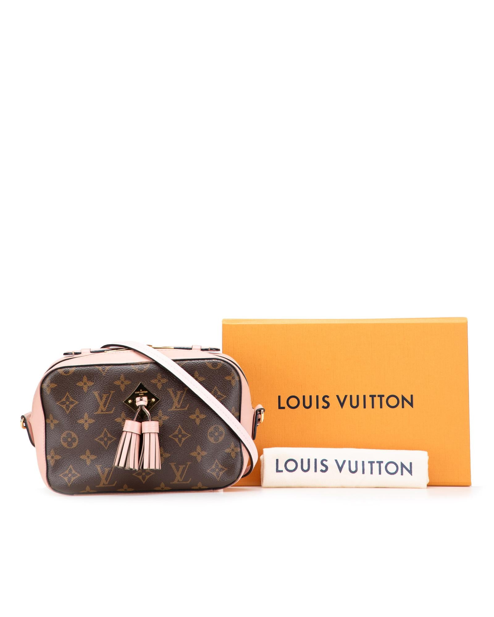 The Saintonge features a monogram canvas body with leather trim a flat leather top handle a flat leather shoulder strap a top zip closure and an interior slip pocket.Brand: Louis Vuitton Vintage
