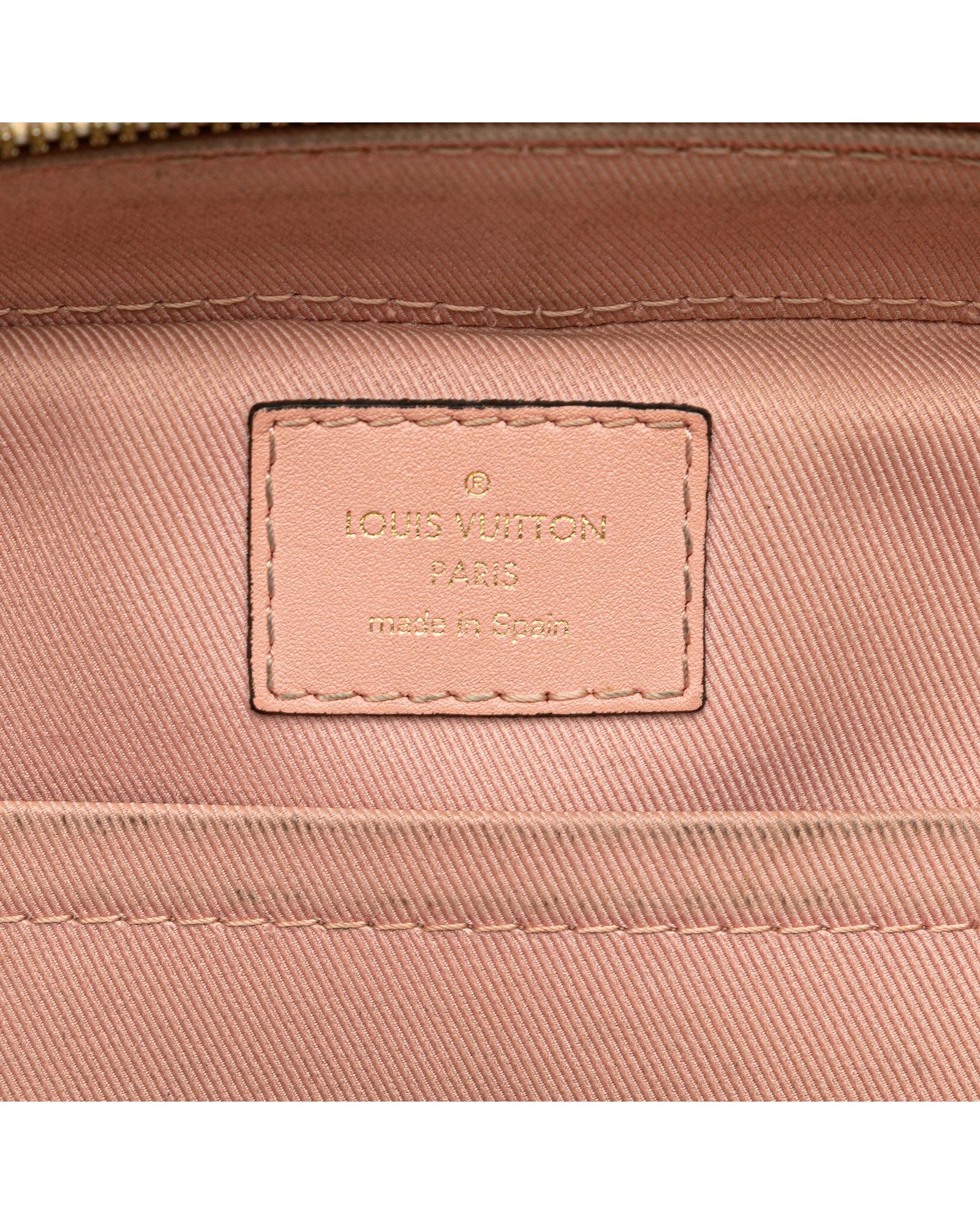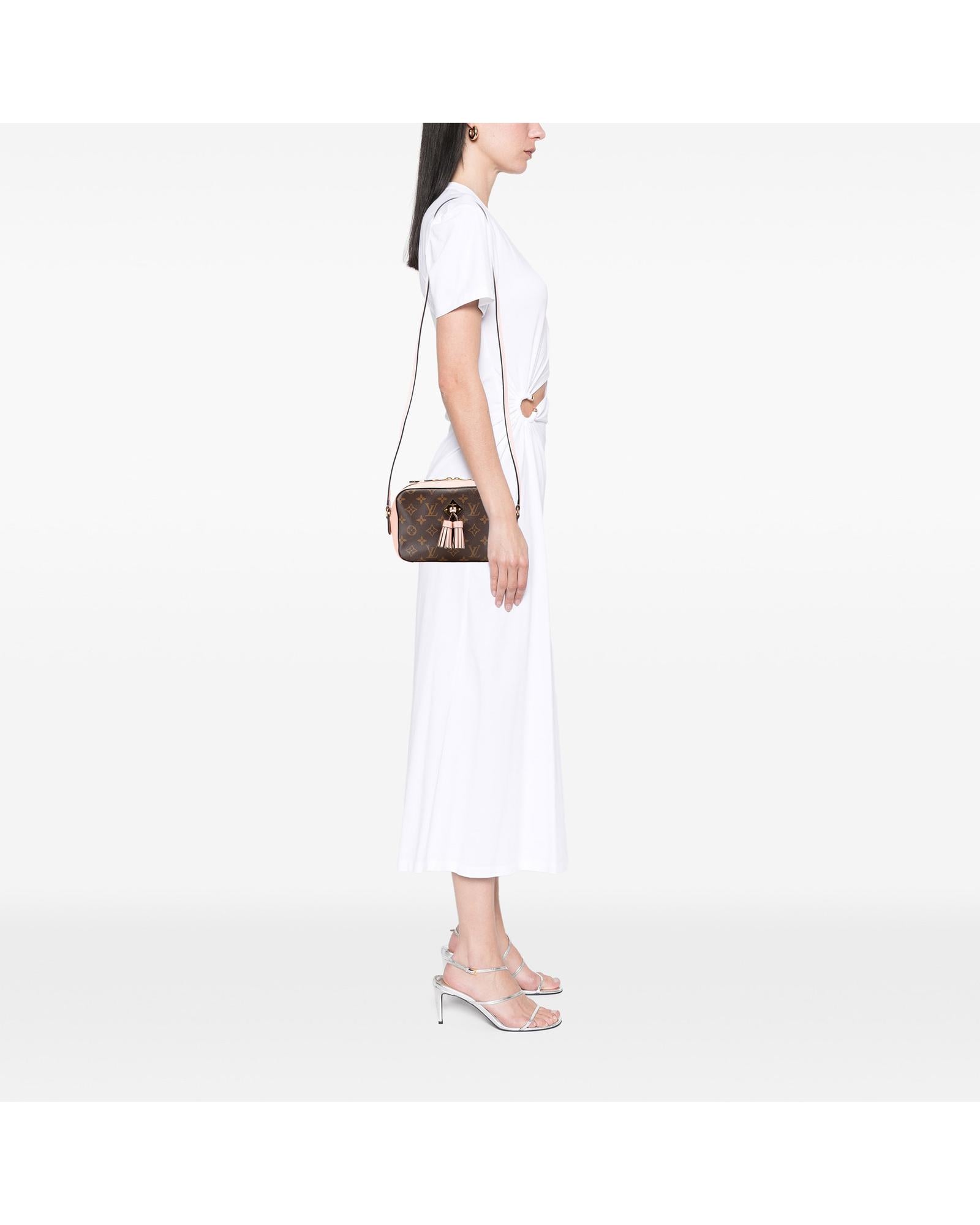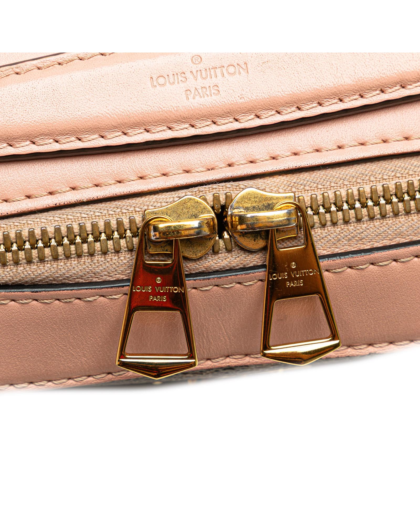 The Saintonge features a monogram canvas body with leather trim a flat leather top handle a flat leather shoulder strap a top zip closure and an interior slip pocket.Brand: Louis Vuitton Vintage