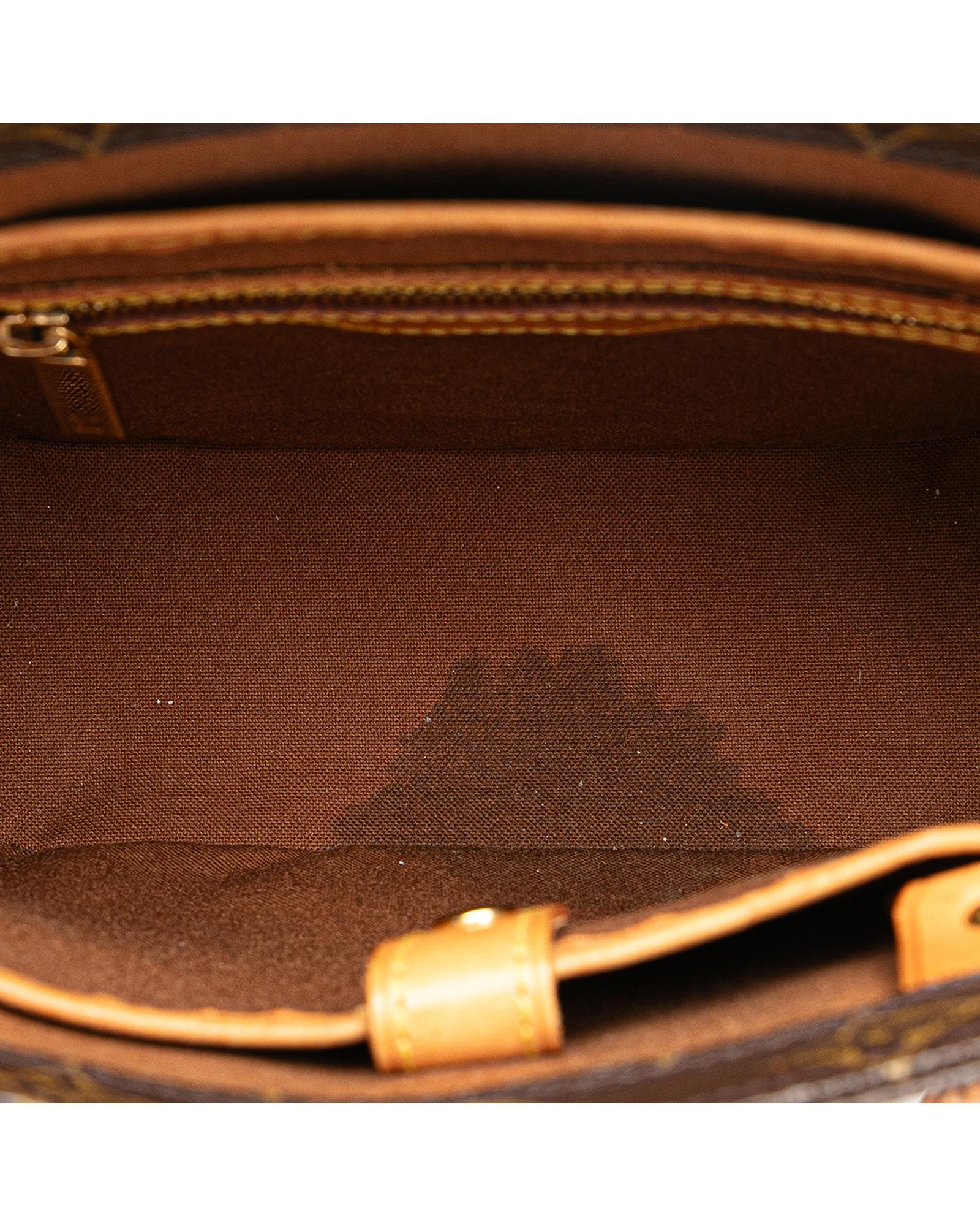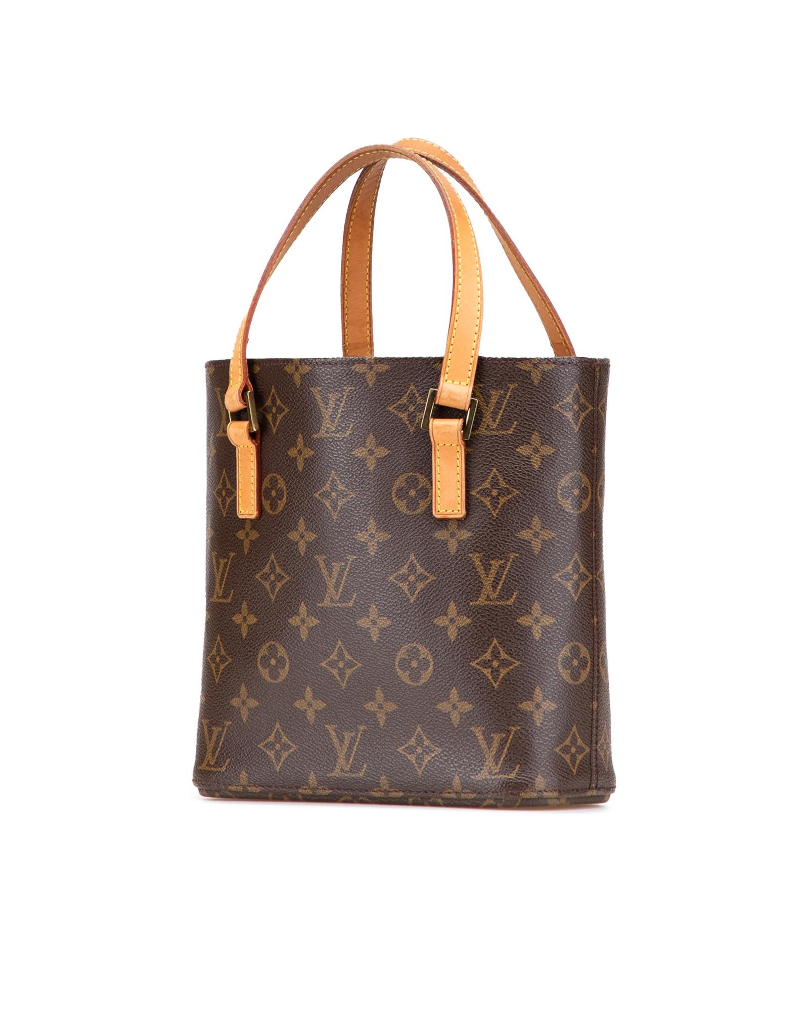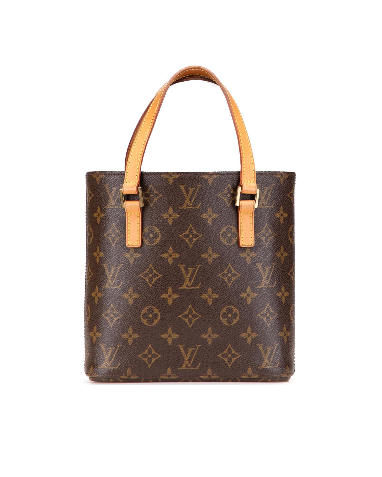 The Vavin PM features a monogram canvas body flat vachetta leather straps interior compartments and an interior zip closure.