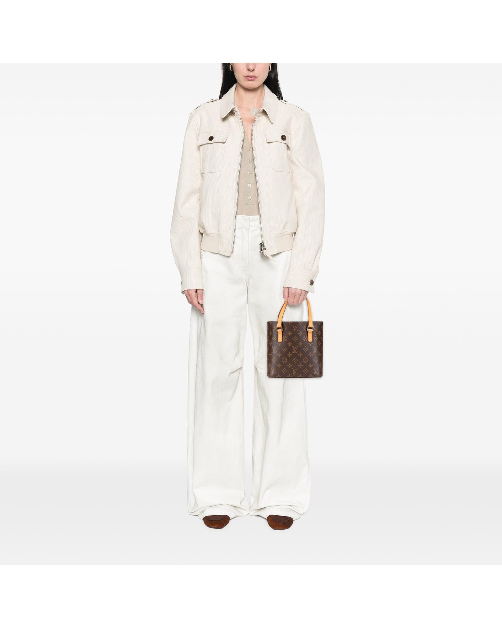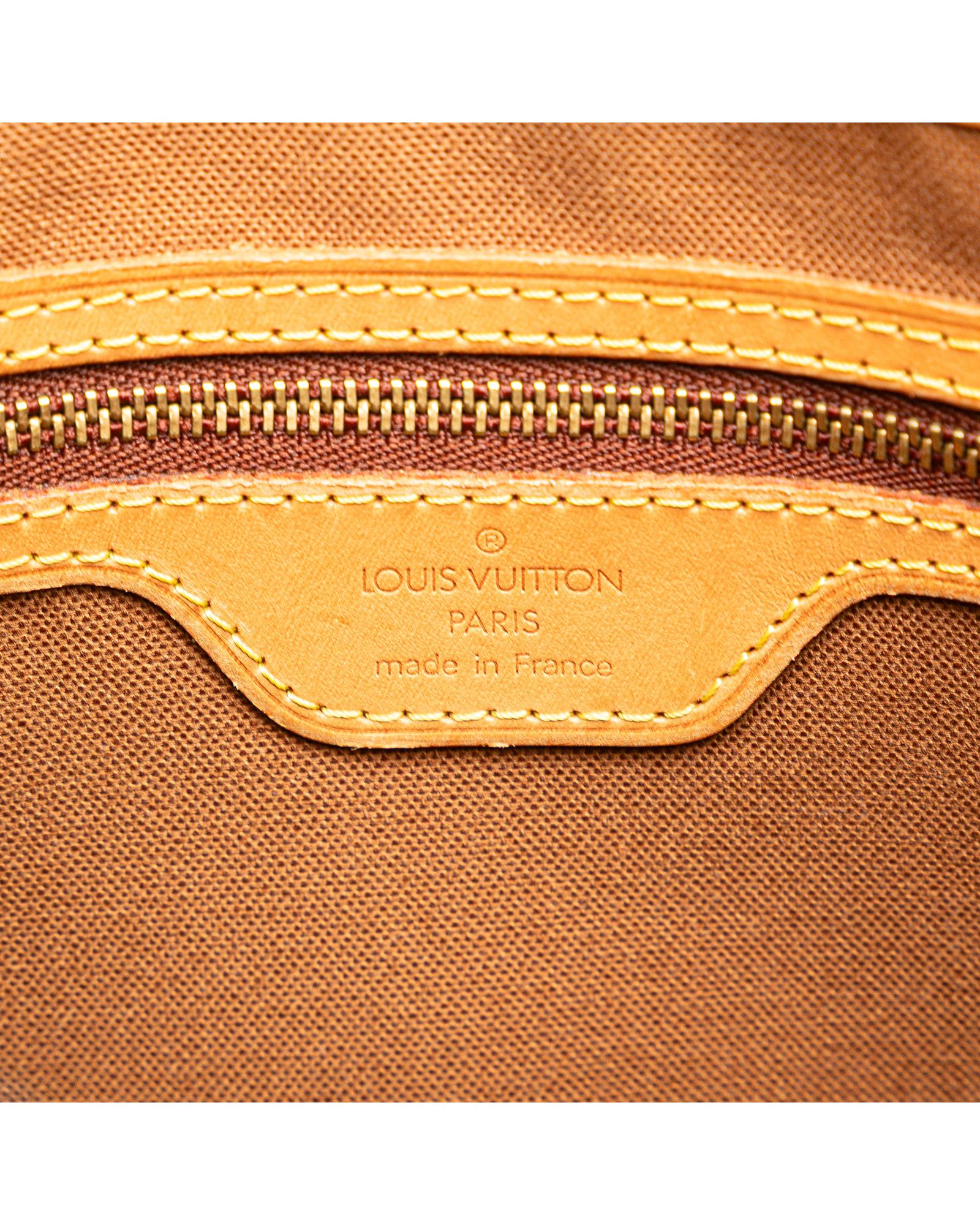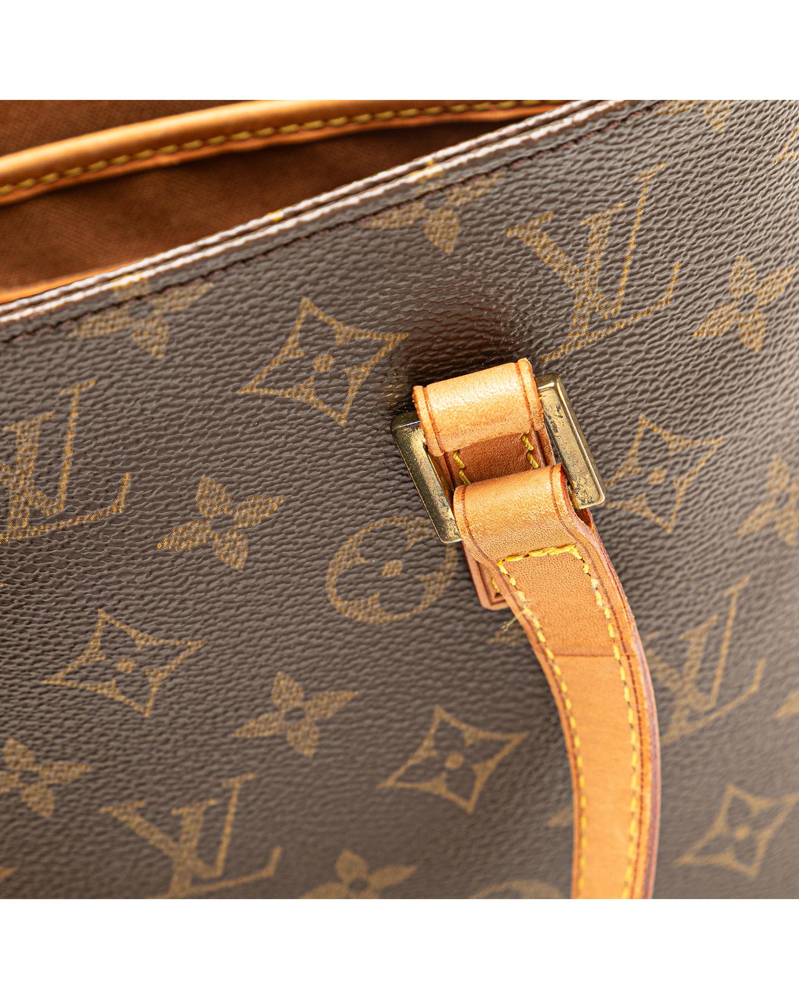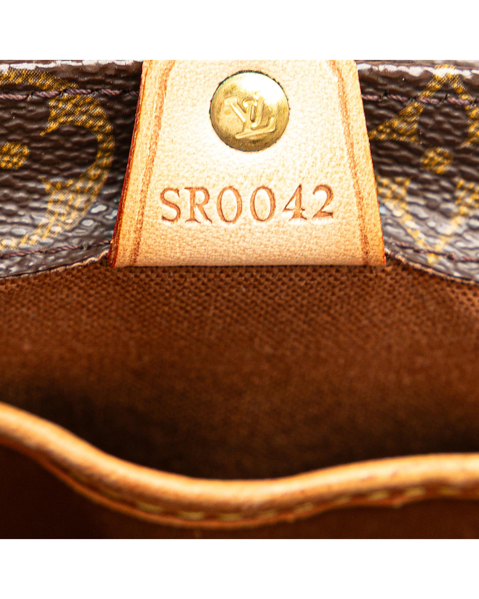 The Vavin PM features a monogram canvas body flat vachetta leather straps interior compartments and an interior zip closure.