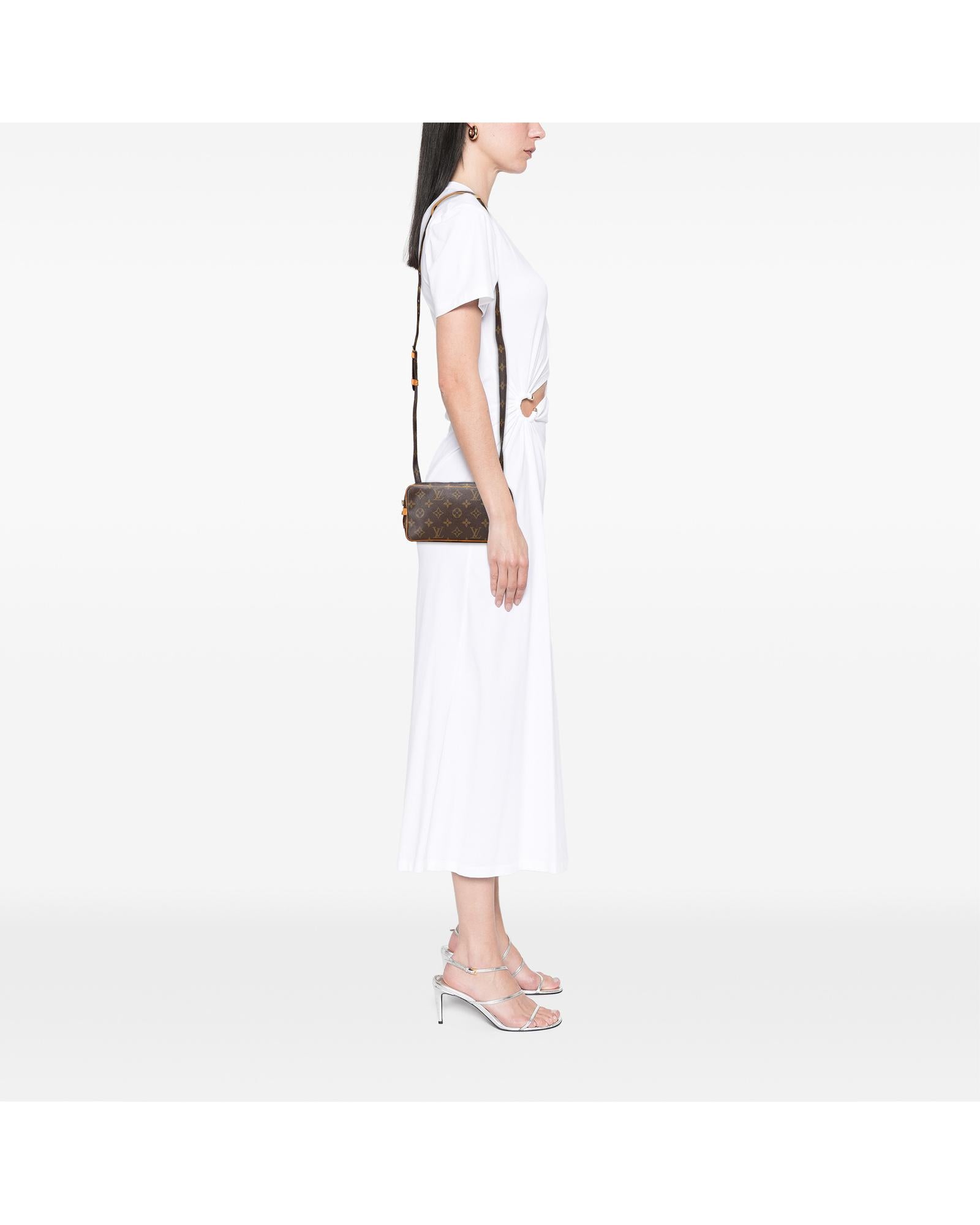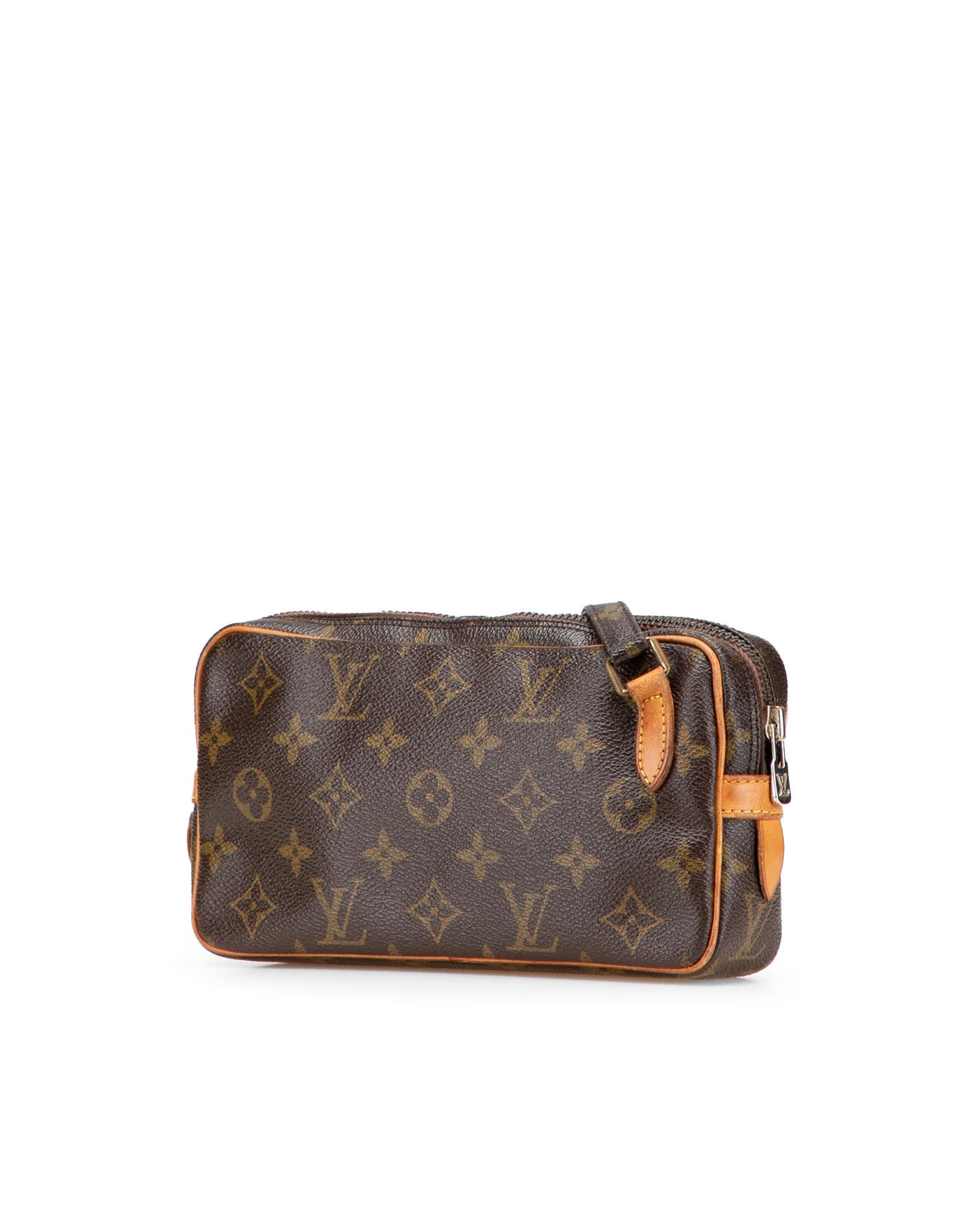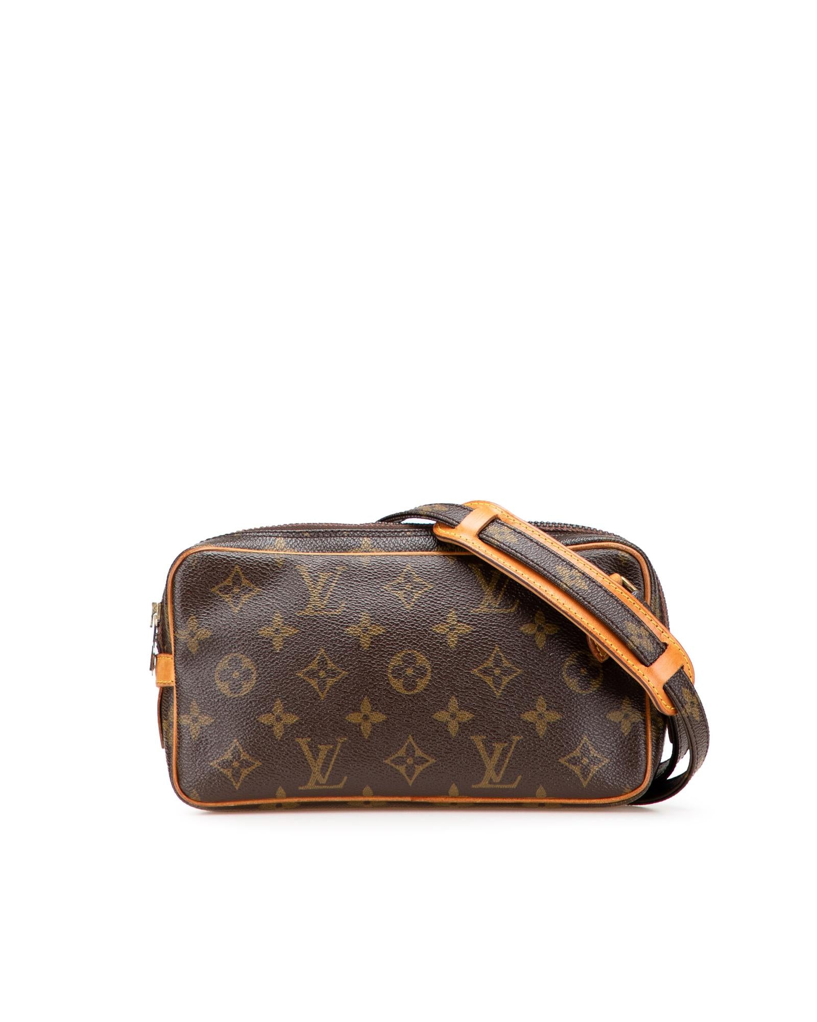 The Marly Bandouliere features a monogram canvas body with vachetta leather trim an adjustable shoulder strap and a top zip closure.Brand: Louis Vuitton Vintage