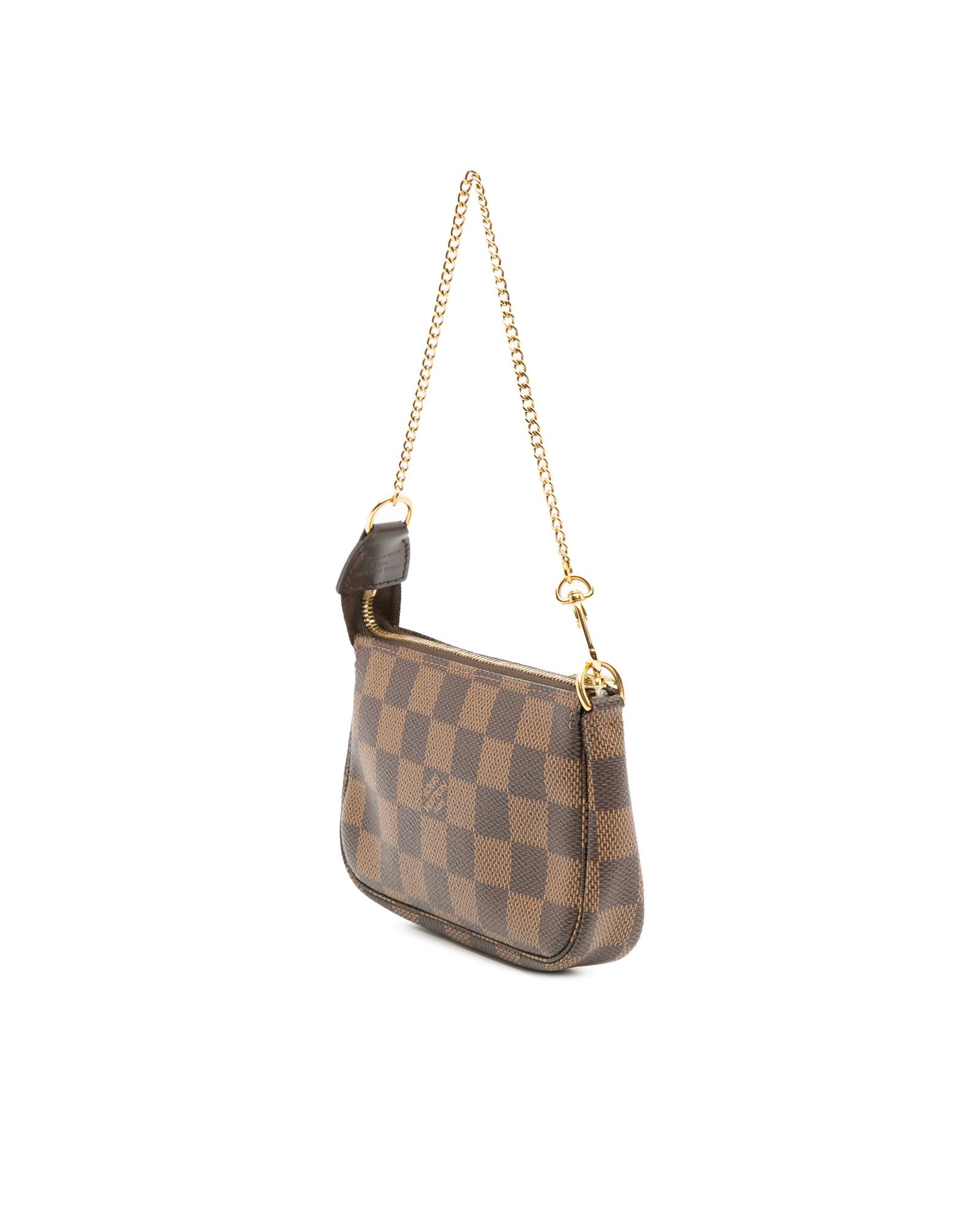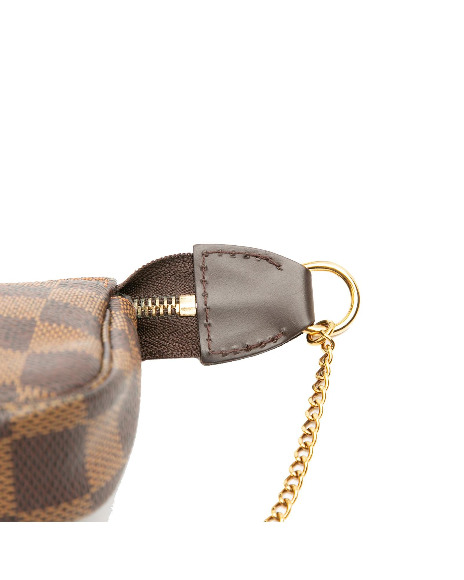 The Mini Pochette Accessoires features a damier canvas body a gold-tone chain strap and a top zip closure.Brand: Louis Vuitton Vintage