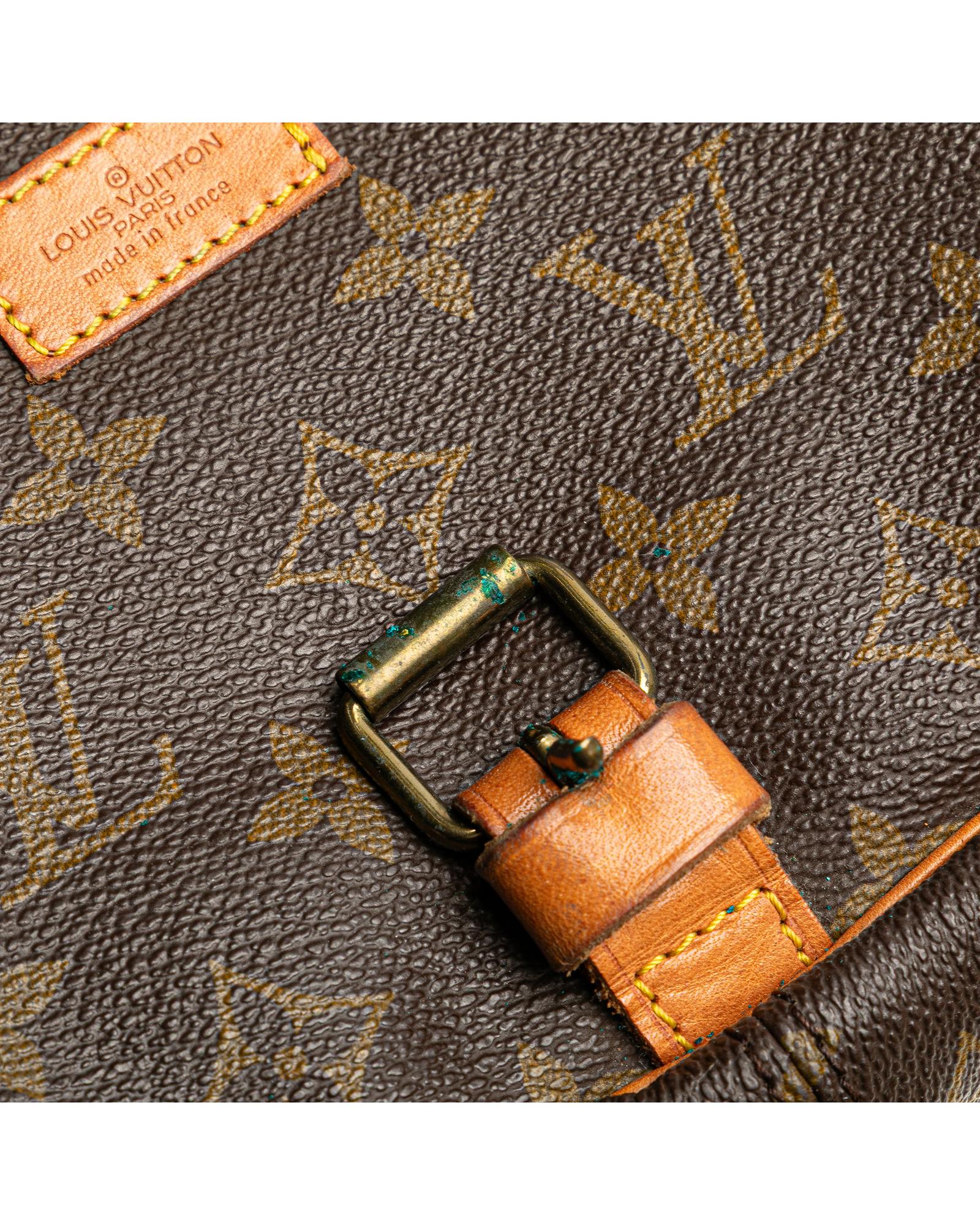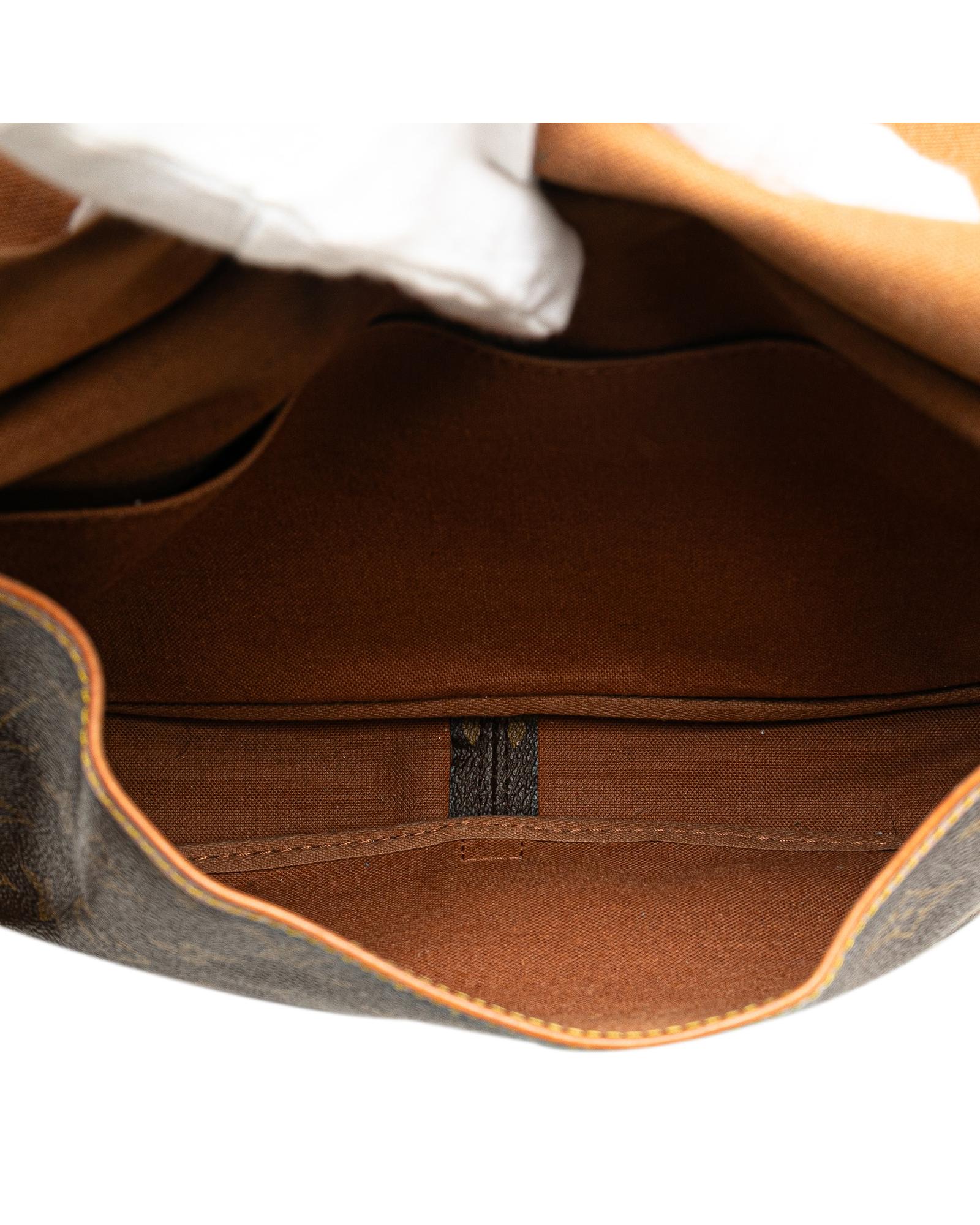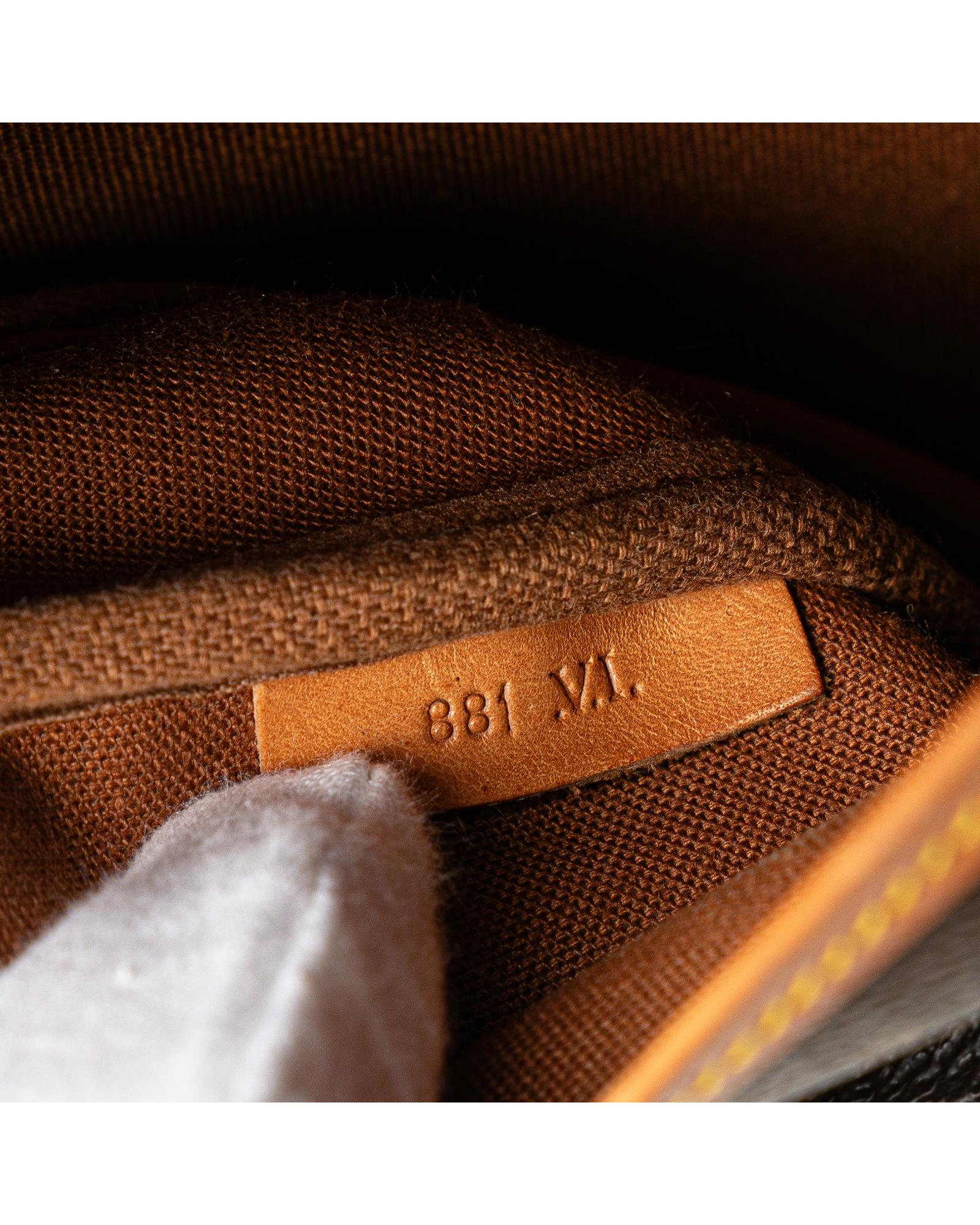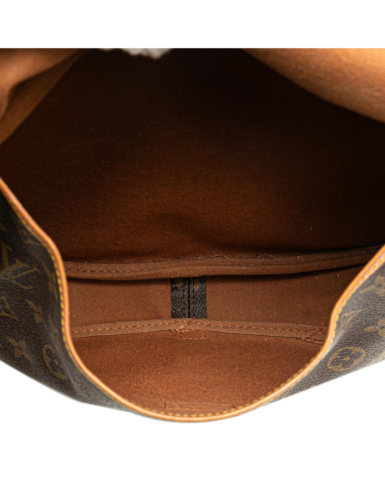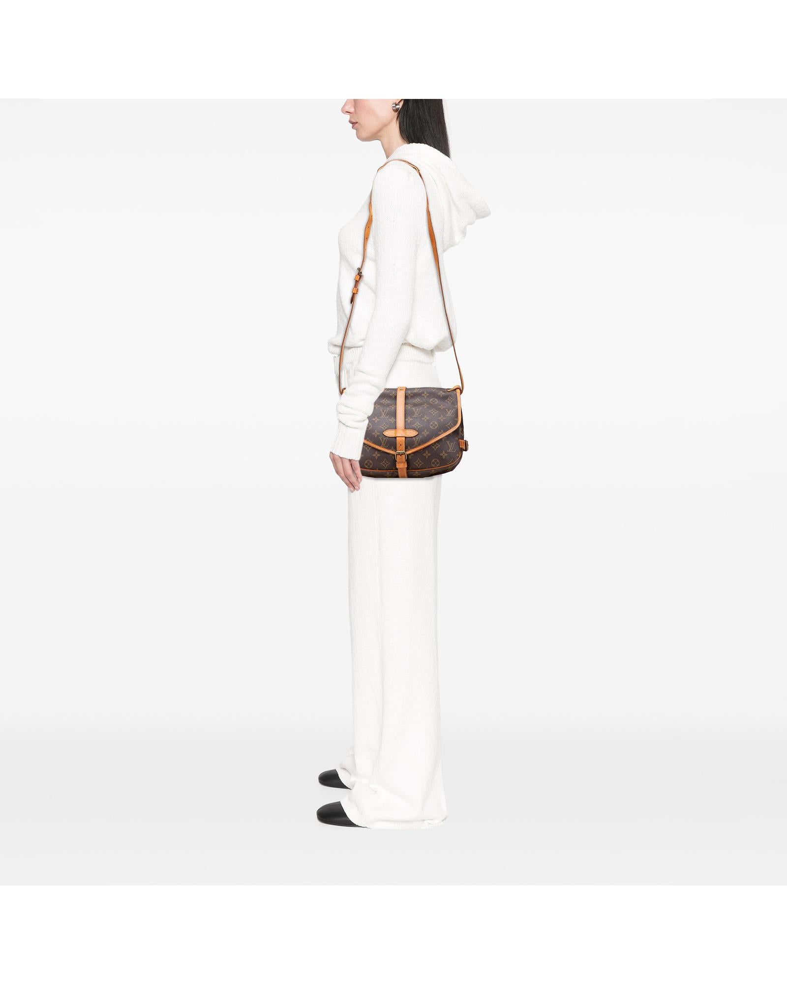 The Saumur 30 features a monogram canvas body with vachetta leather trim a flat adjustable vachetta leather shoulder strap double open compartments with front flaps and belt buckle closures.Brand: Louis Vuitton Vintage