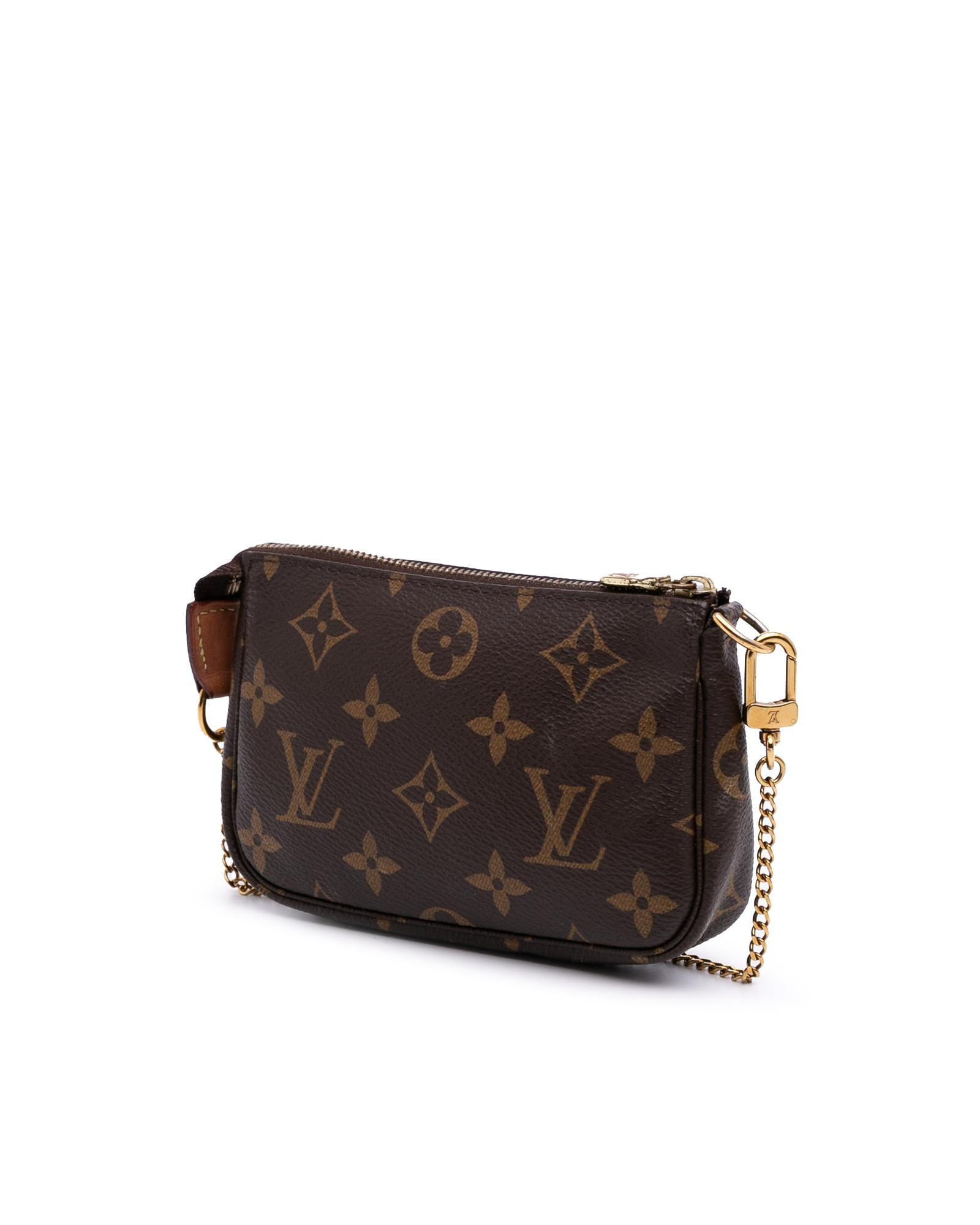 The Mini Pochette Accessoires features a monogram canvas body a gold-tone chain strap and a top zip closure.Brand: Louis Vuitton Vintage