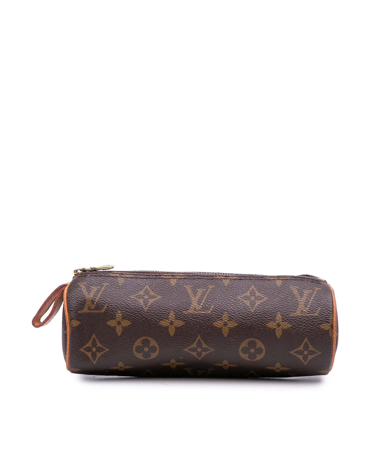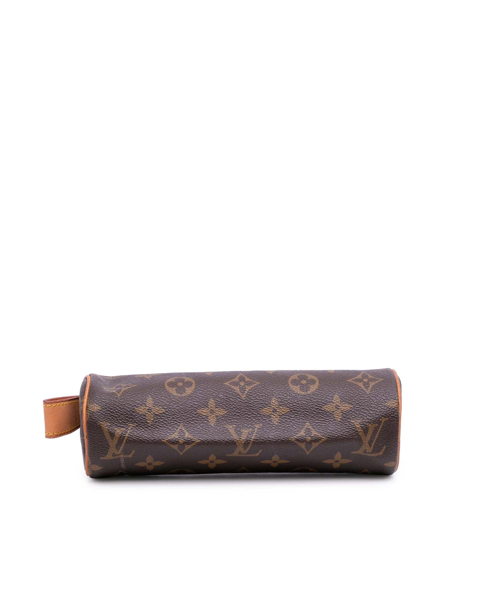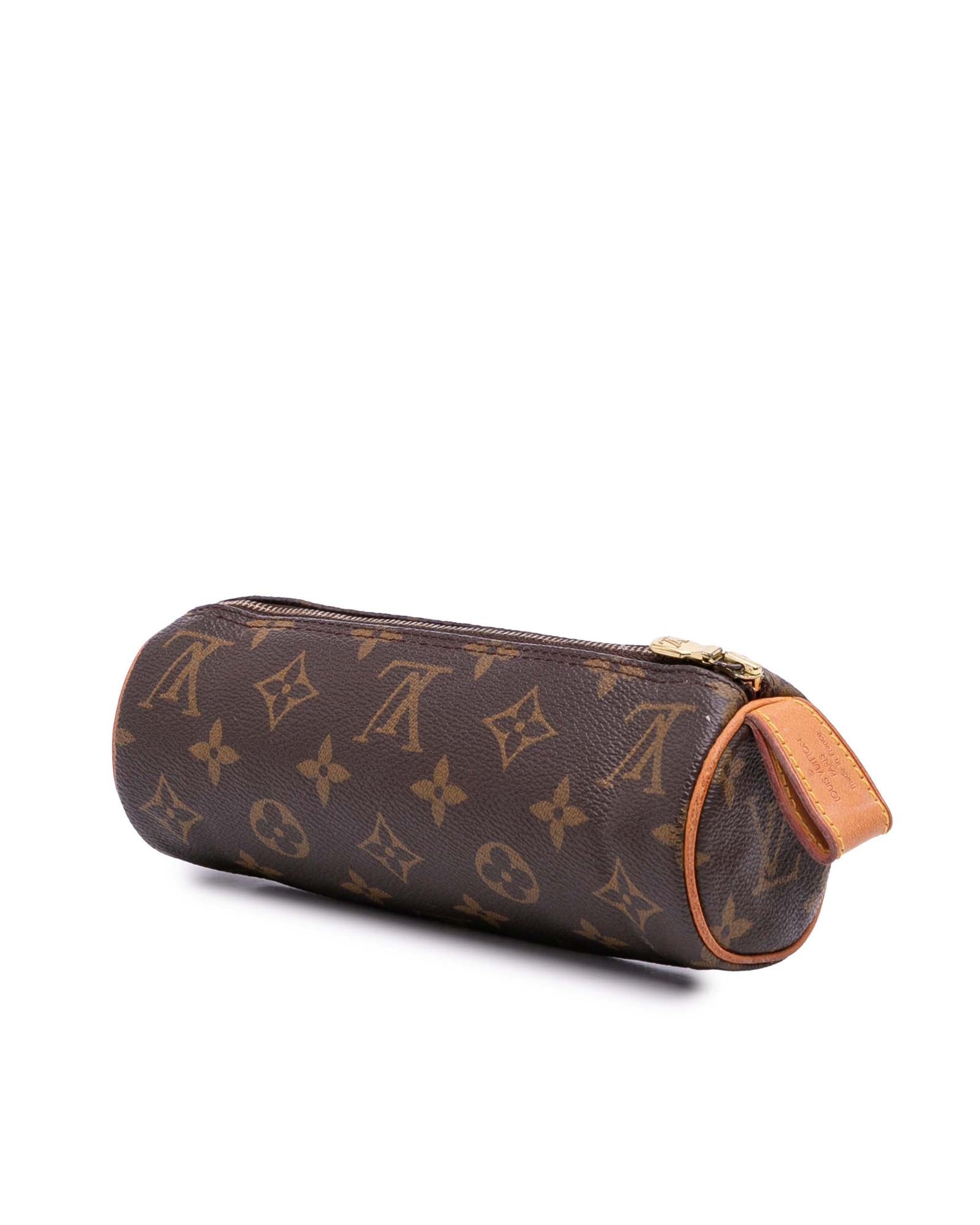 This pencil case features a monogram canvas body with leather trim a flat vachetta leather handle and a top zip closure.Brand: Louis Vuitton Vintage