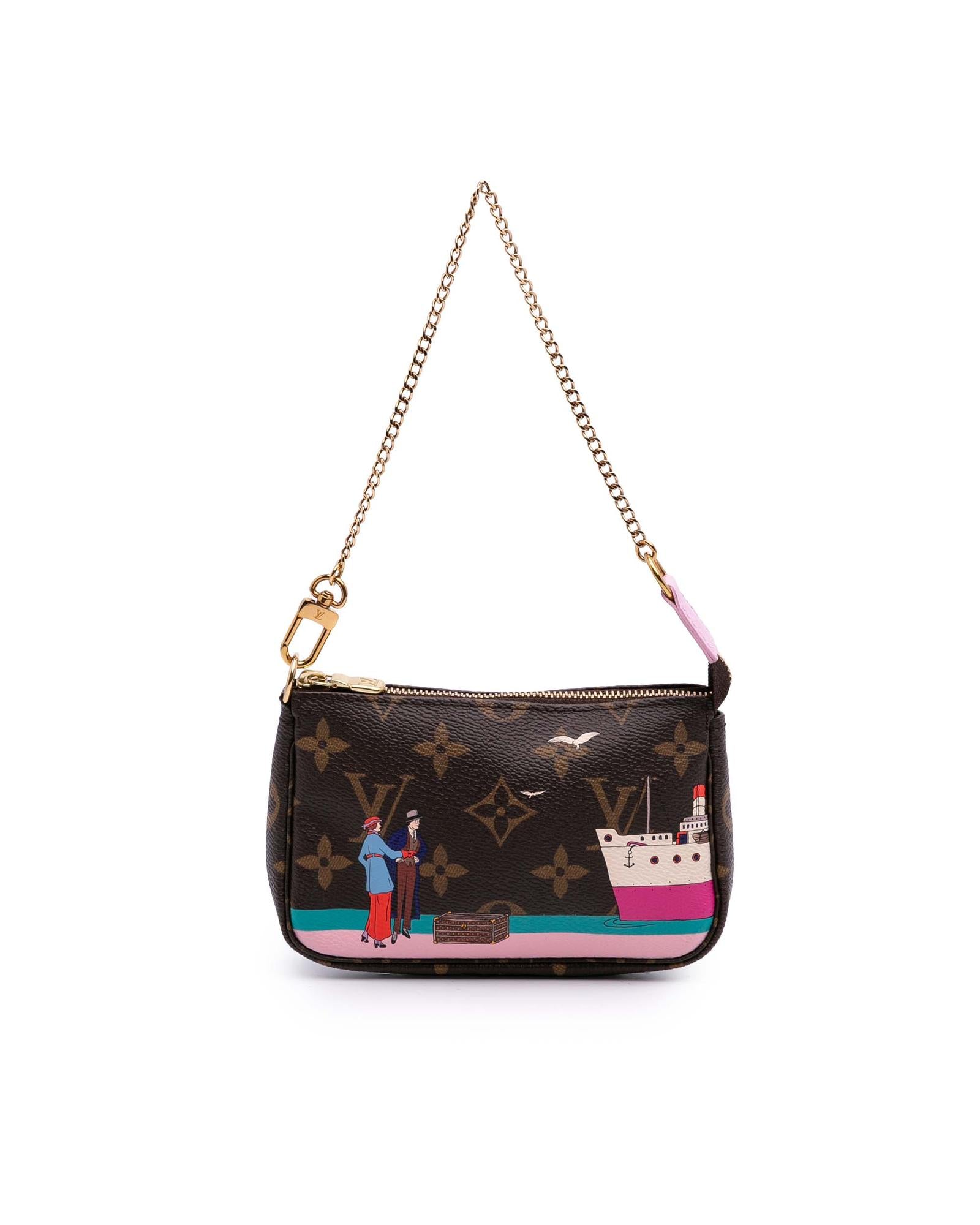 The Mini Pochette Accessoires features a printed monogram canvas body a chain link strap and a top zip closure.Brand: Louis Vuitton Vintage