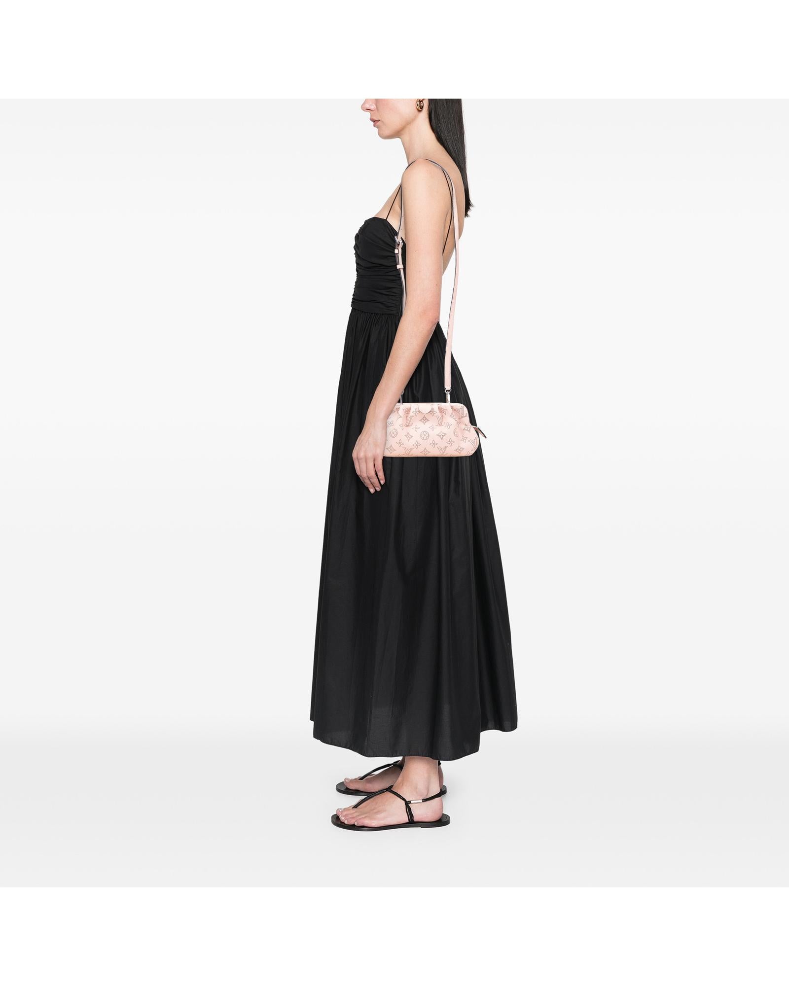 The Scala Mini Pouch features a perforated leather body a detachable strap a top zip closure and an interior slip pocket.Brand: Louis Vuitton Vintage