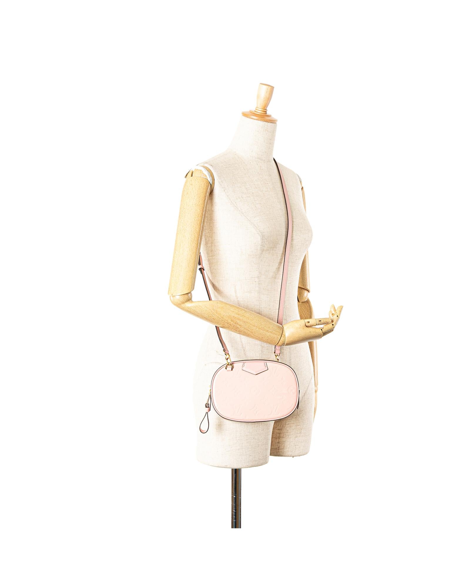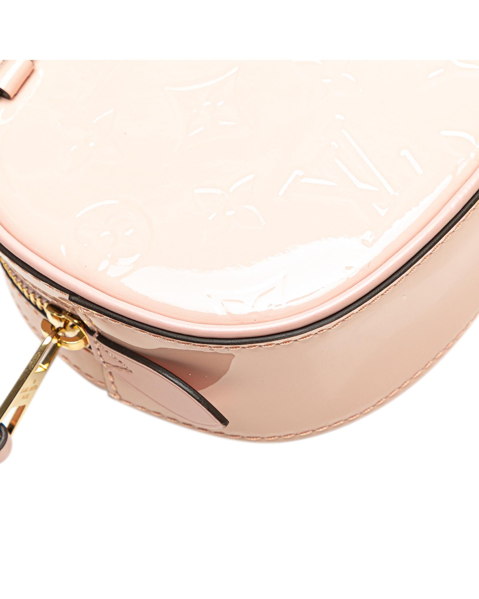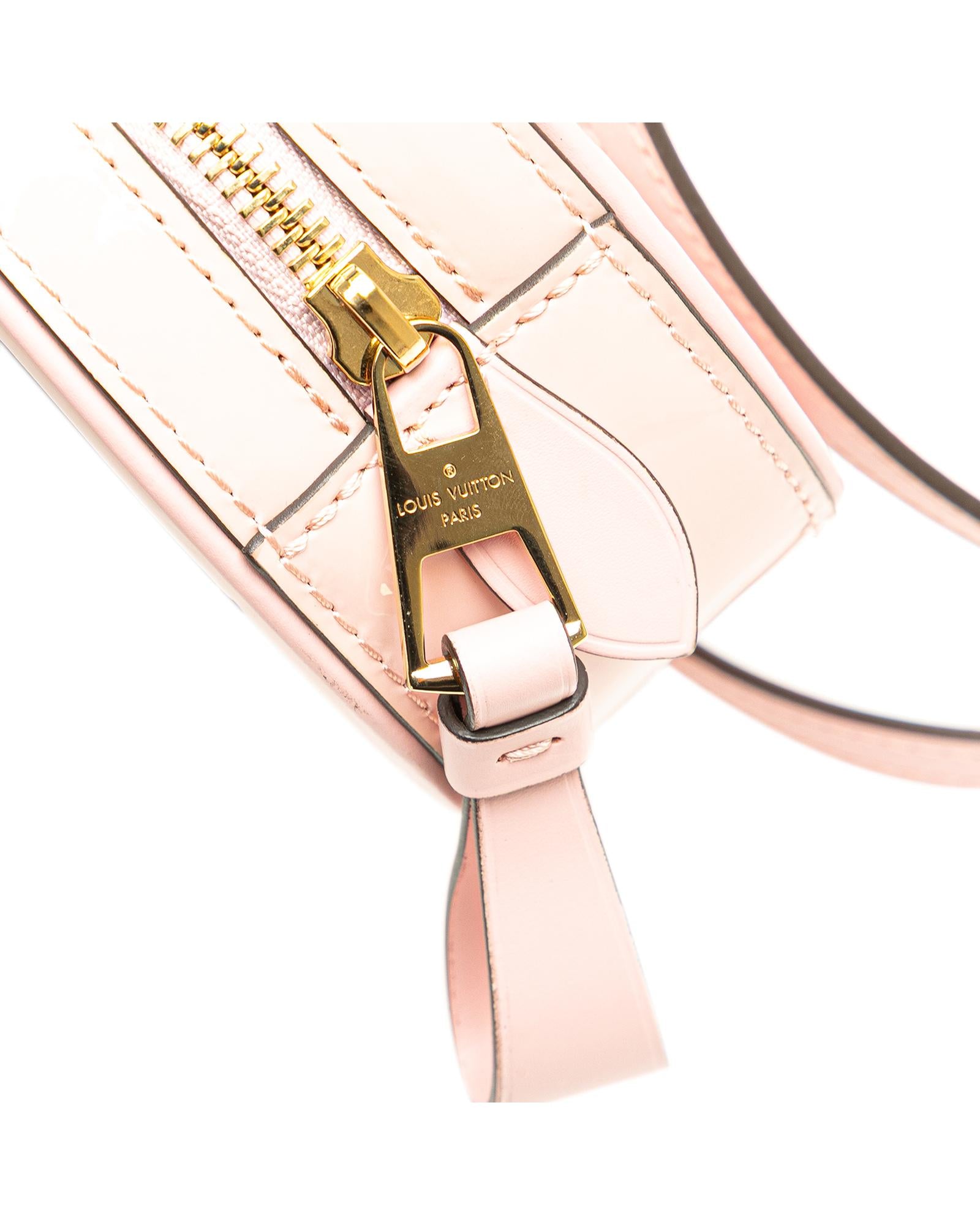This belt bag features a monogram vernis leather body an adjustable and convertible flat leather strap a top zip closure and an interior slip pocket.