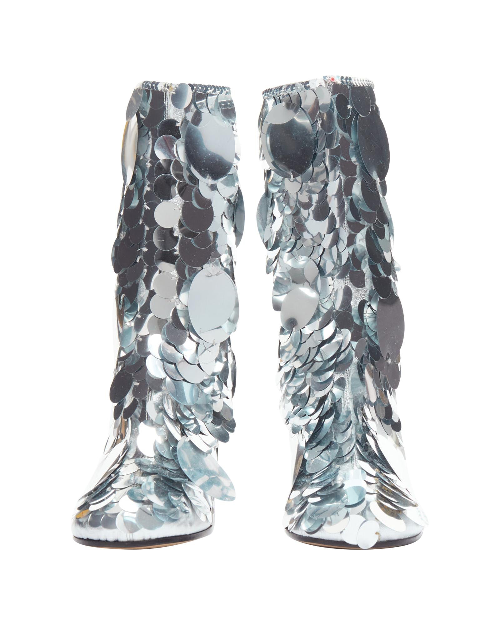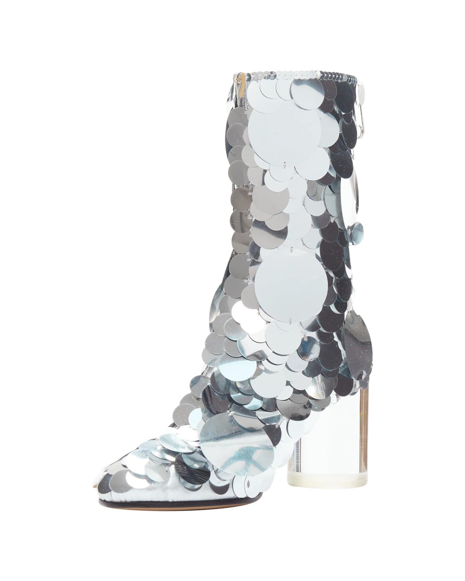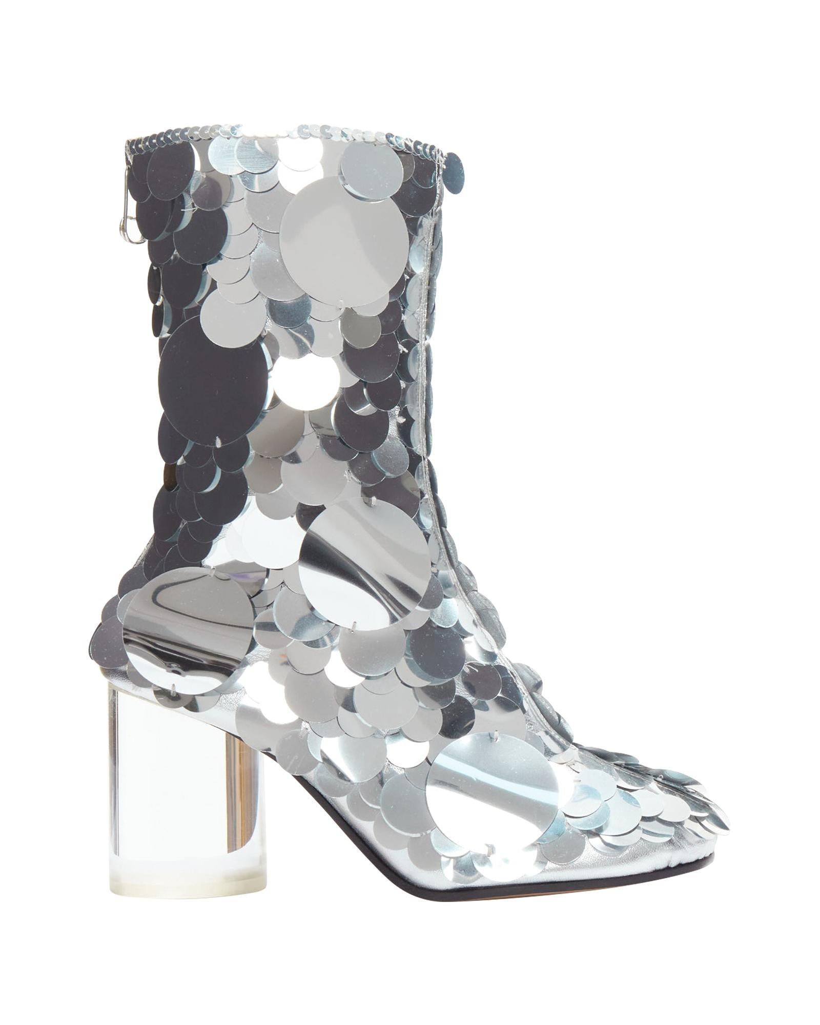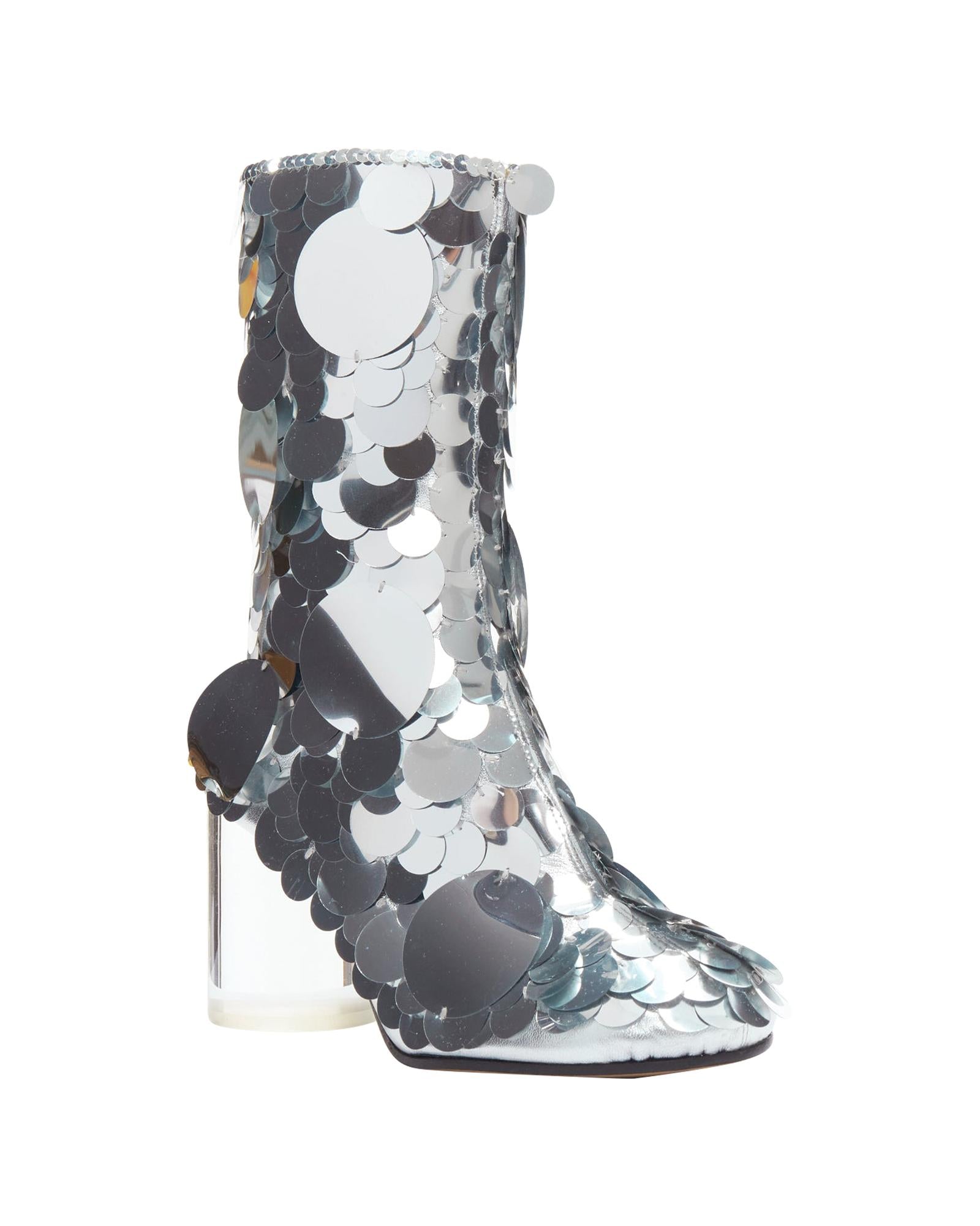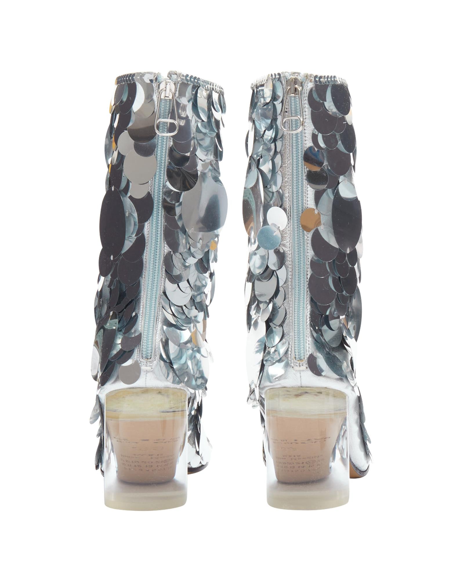 Pre-owned Novelty Heeled Booties with Sequin Embellishments and Block Heel