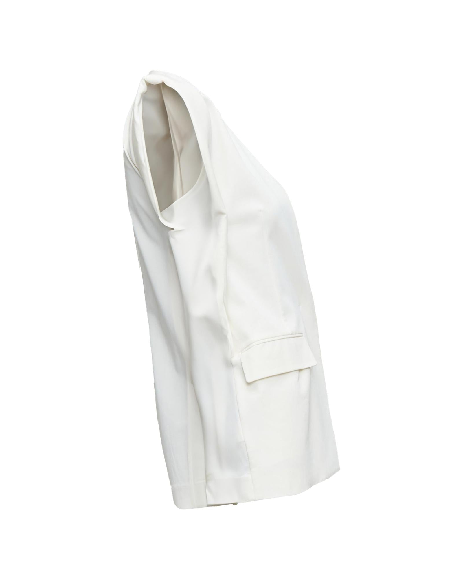 Pre-owned Sleeveless Blazer Jacket with Plunging Neckline and Pocket Accents