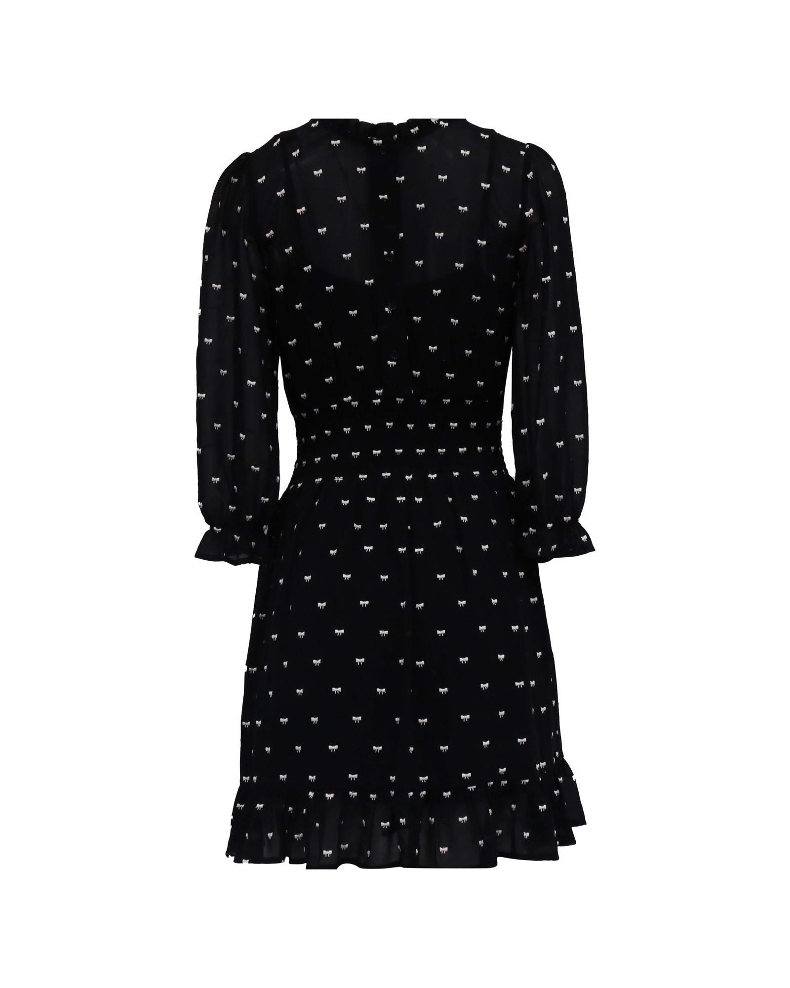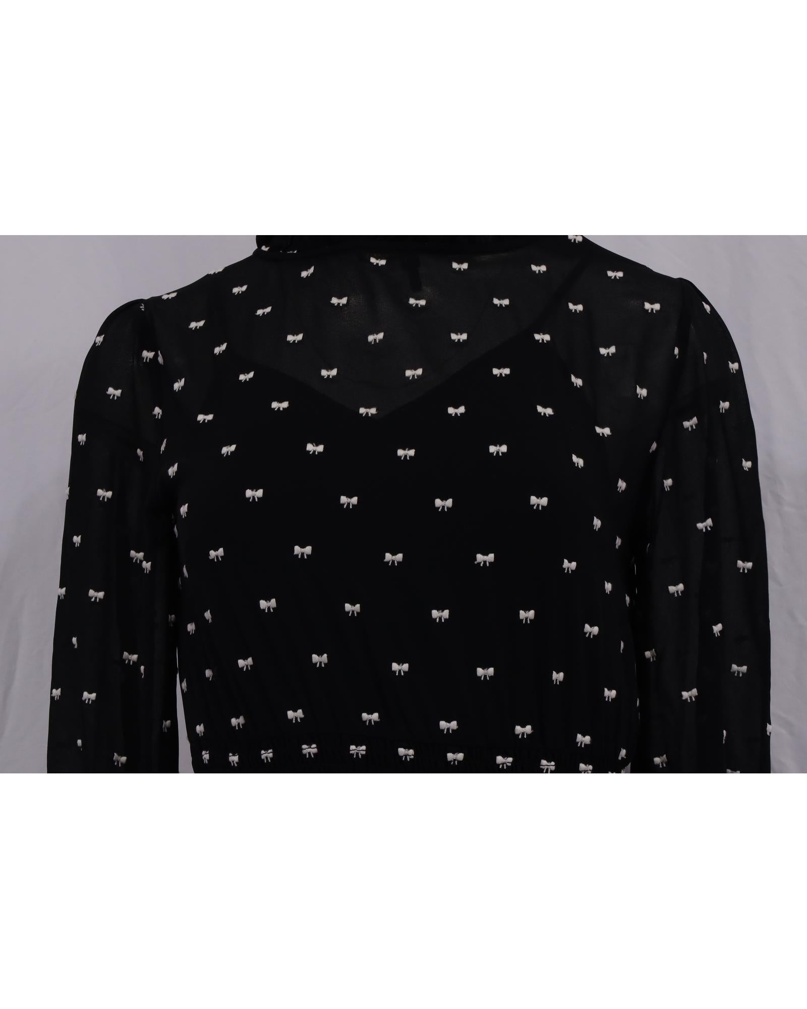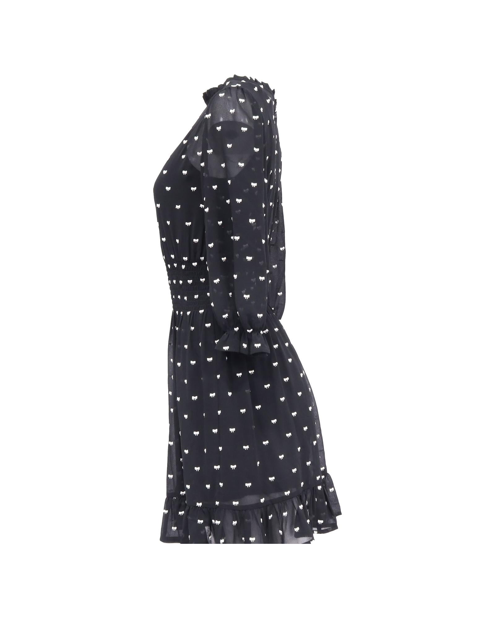 Pre-owned Elegant V-Neck Party Dress with Long Sleeves and Ruffle Hem