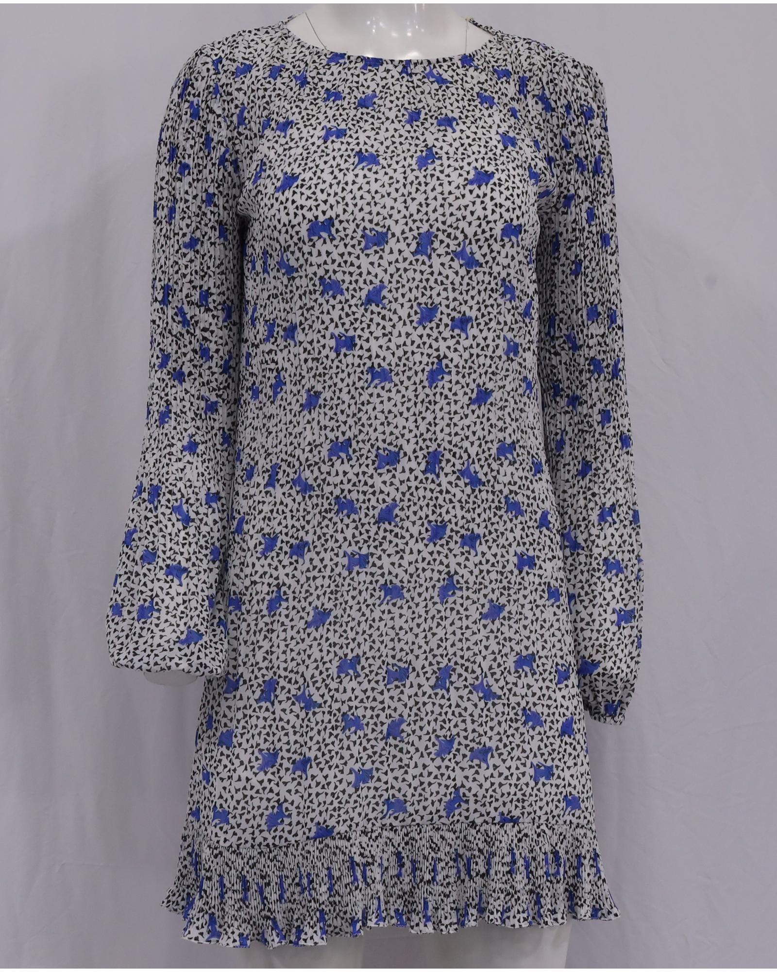 Pre-owned Elegant Printed Dress with Long Sleeves and Ruffle Hem