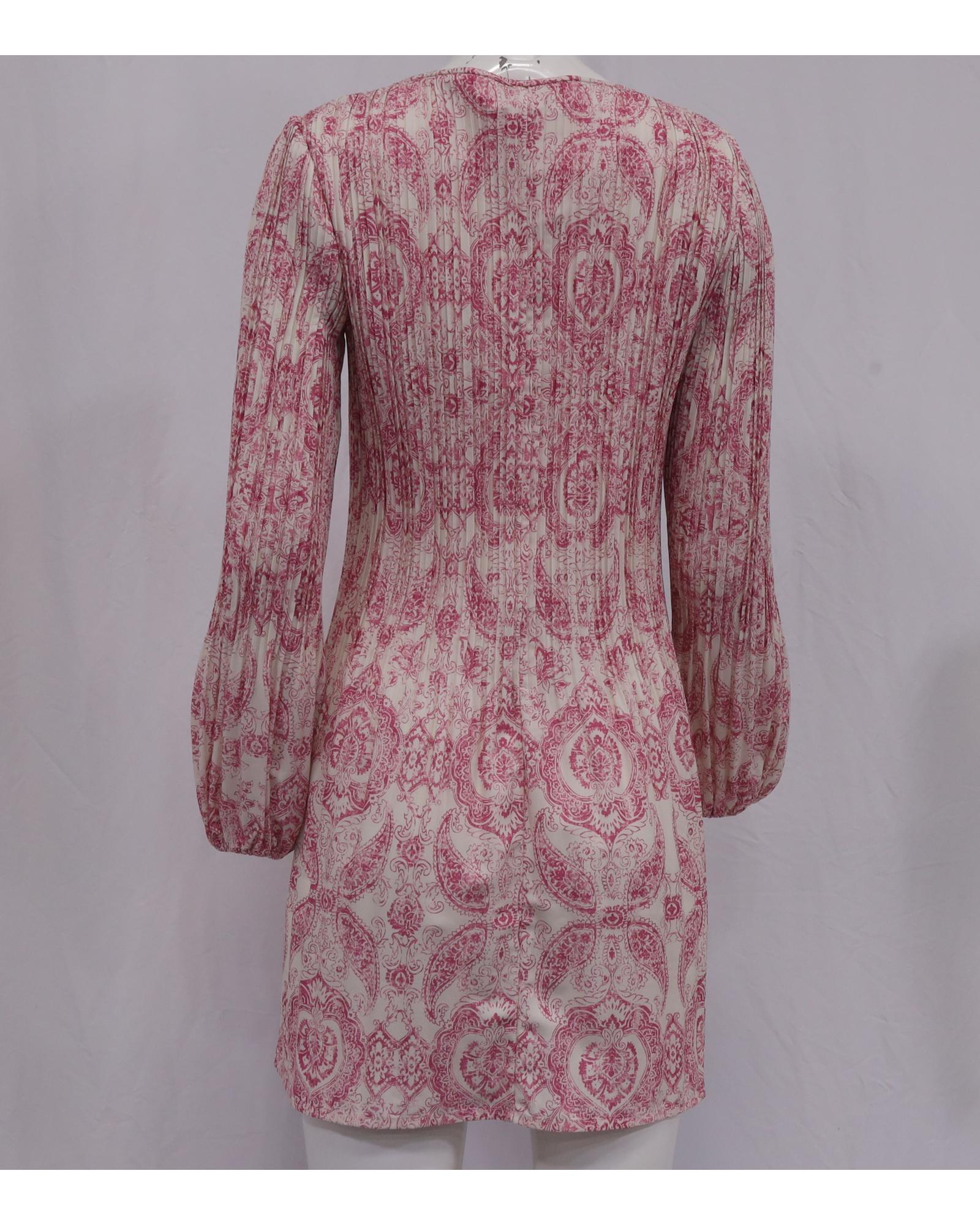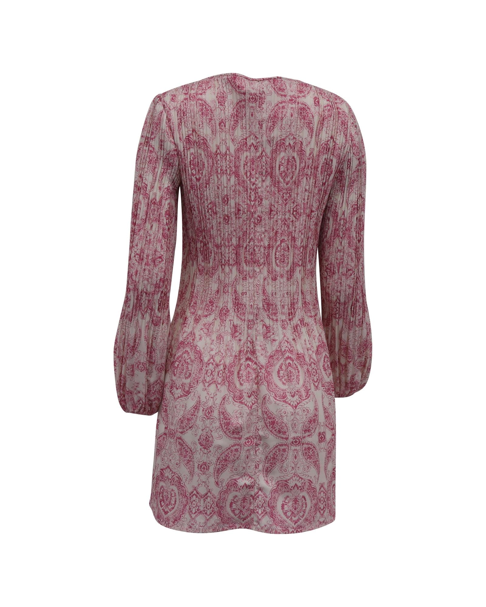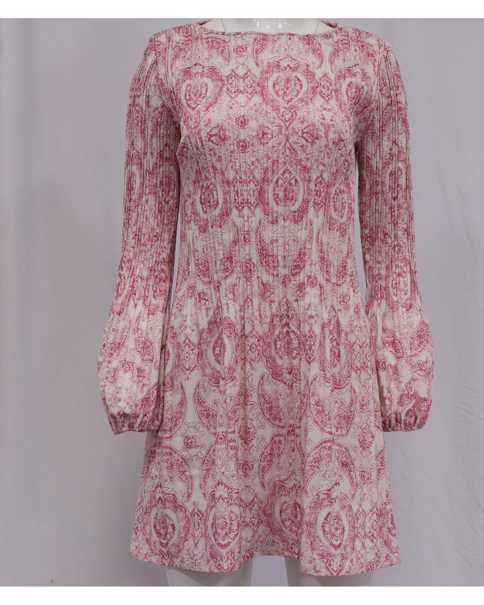 Pre-owned Printed Dress with Long Sleeves and Shirring Detail