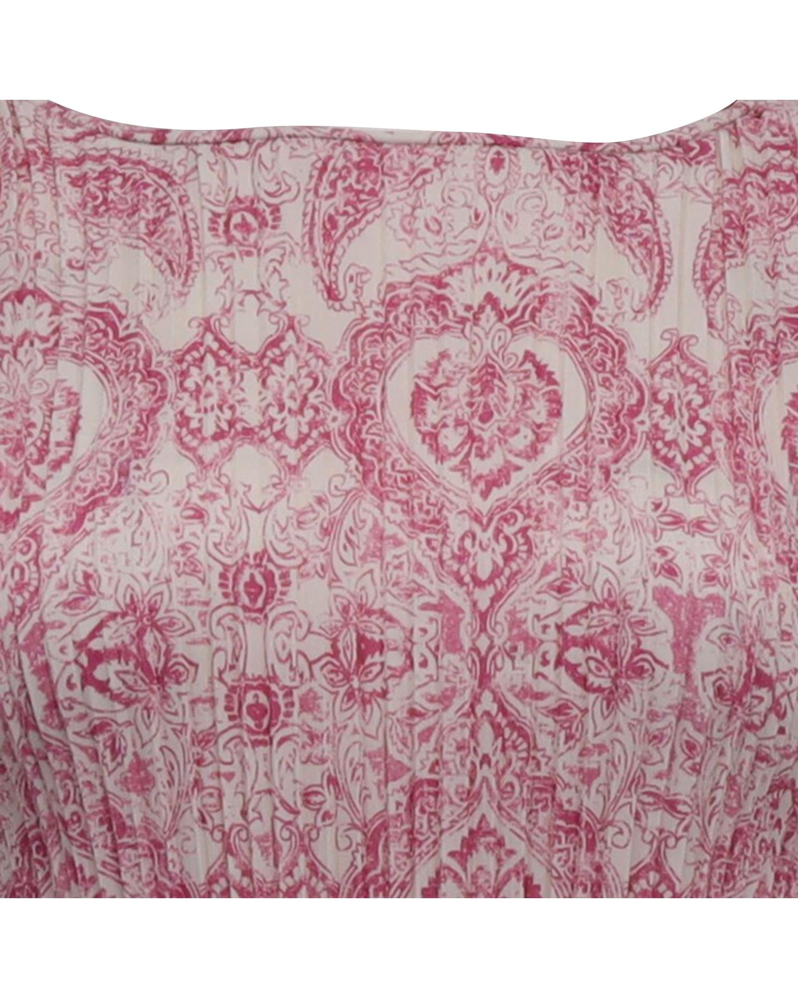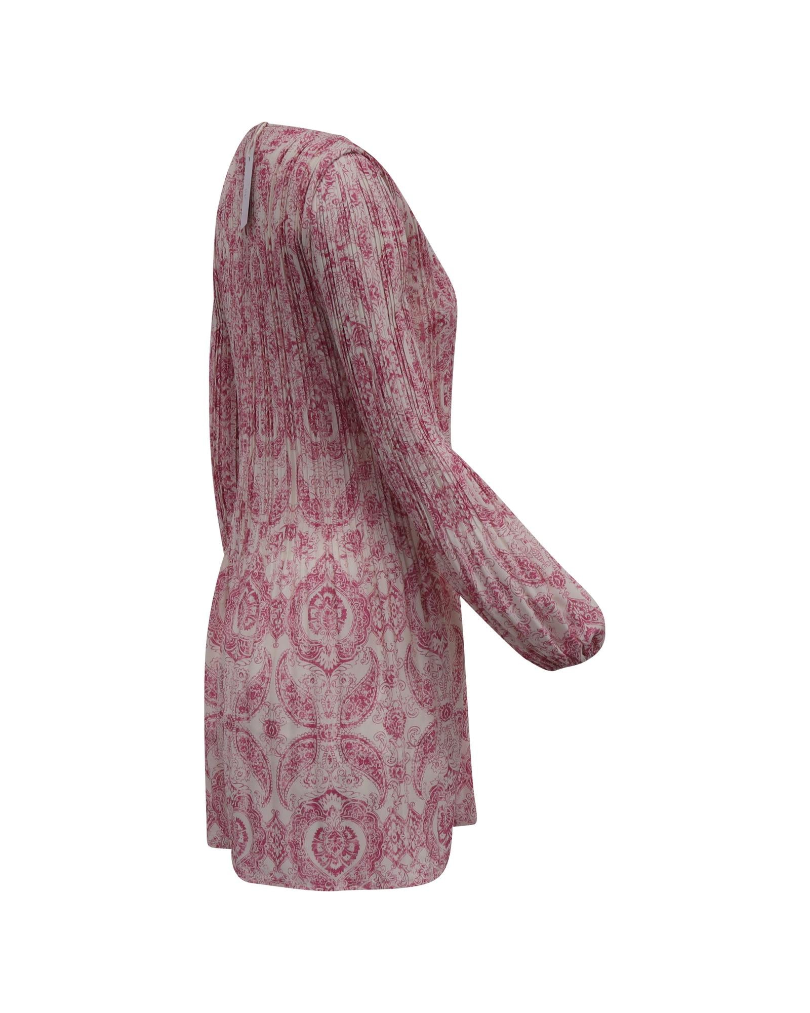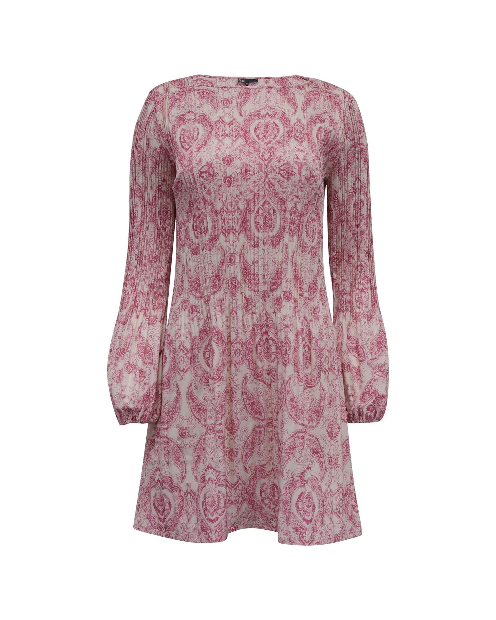 Pre-owned Printed Dress with Long Sleeves and Shirring Detail