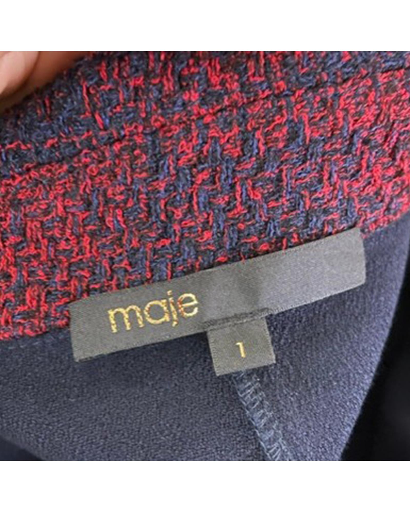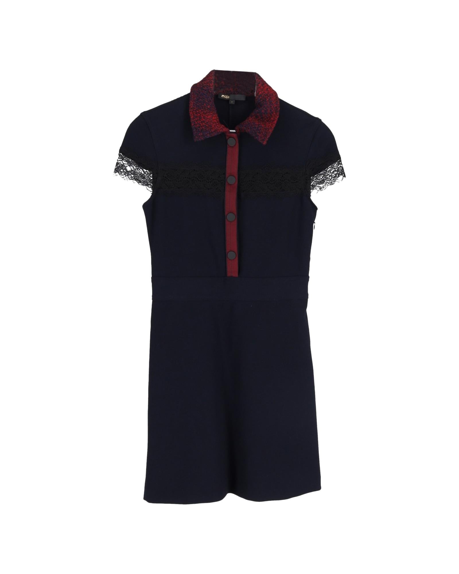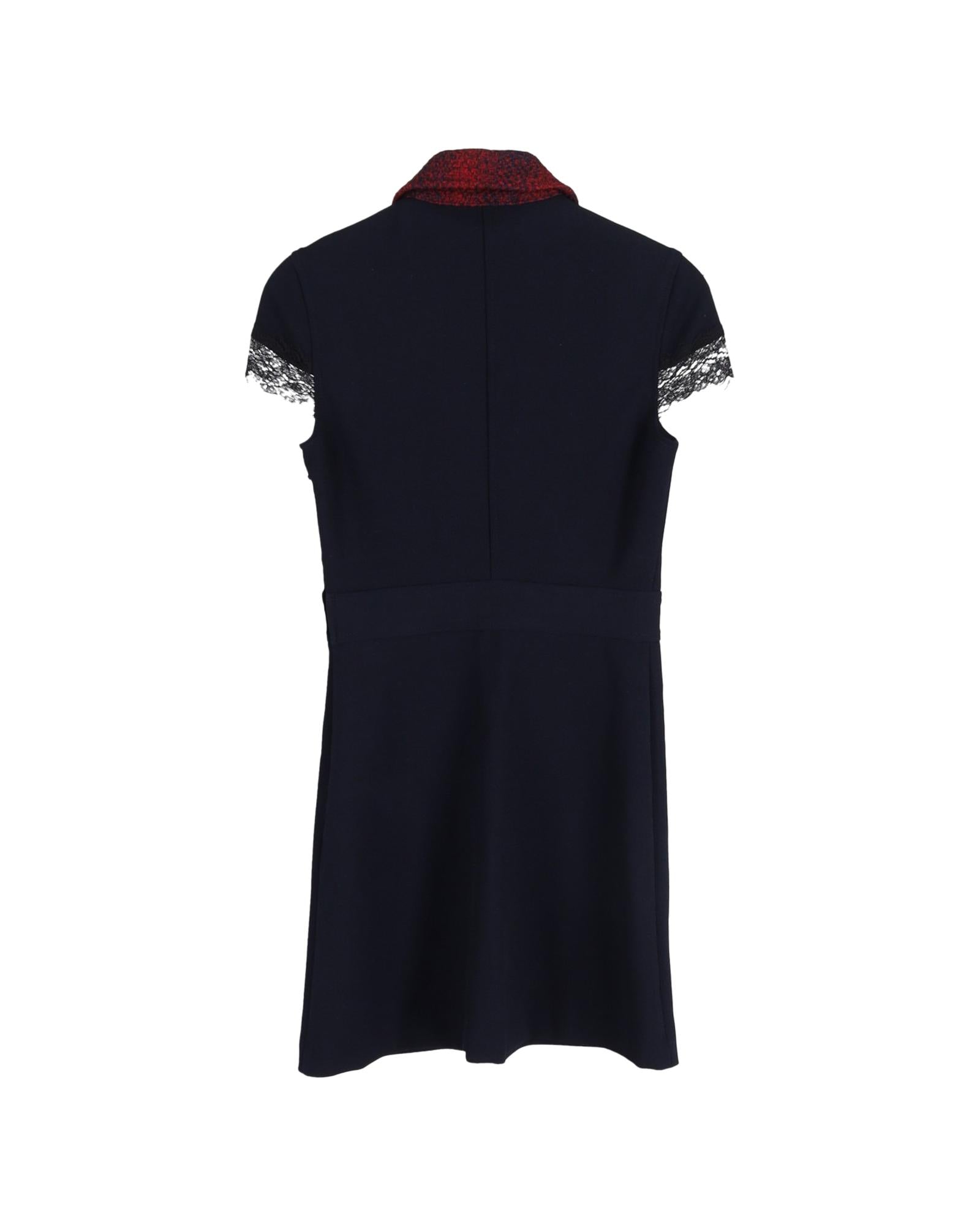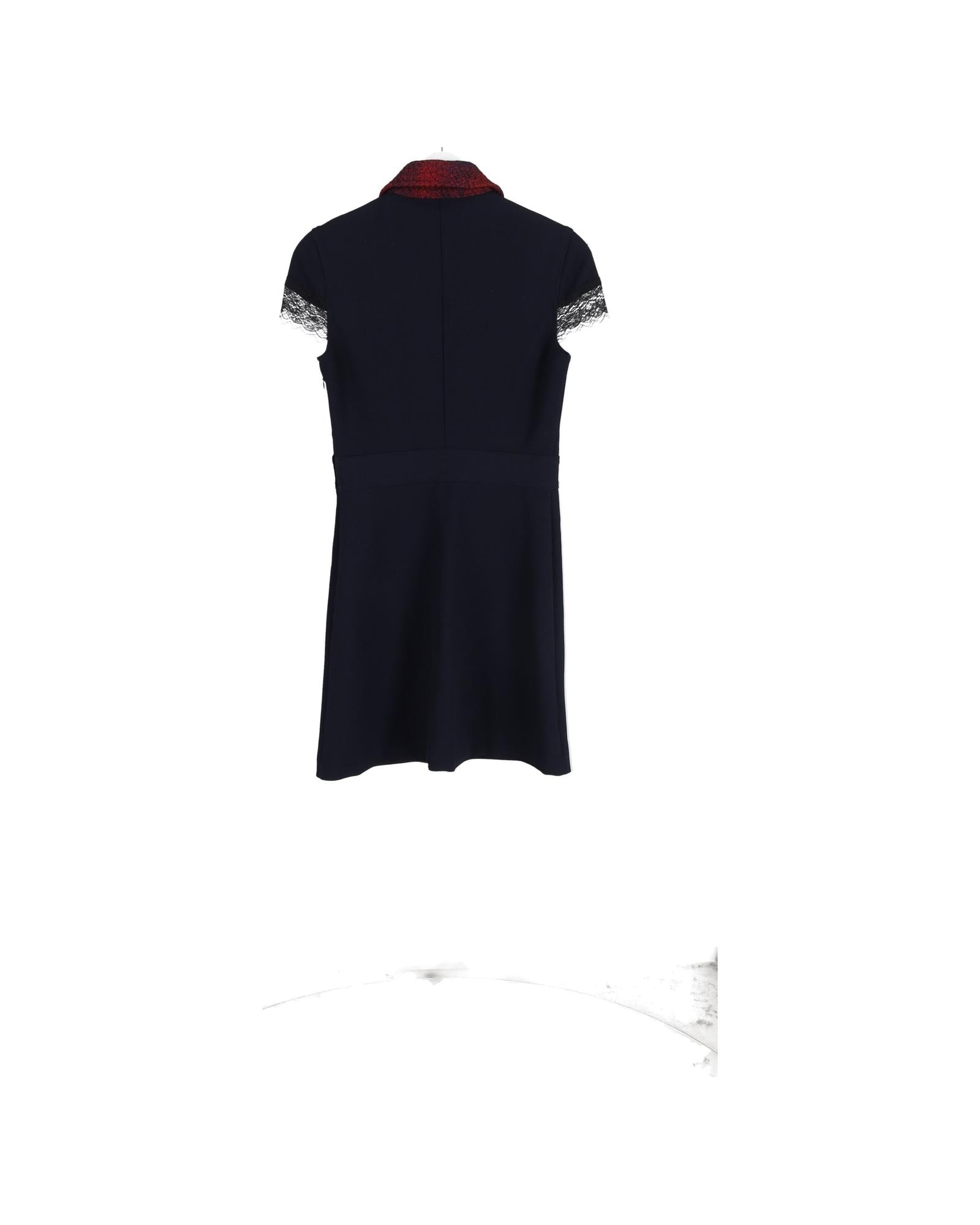 - Maje Riloid Lace Trim Mini Collared Dress in Navy Blue Polyester