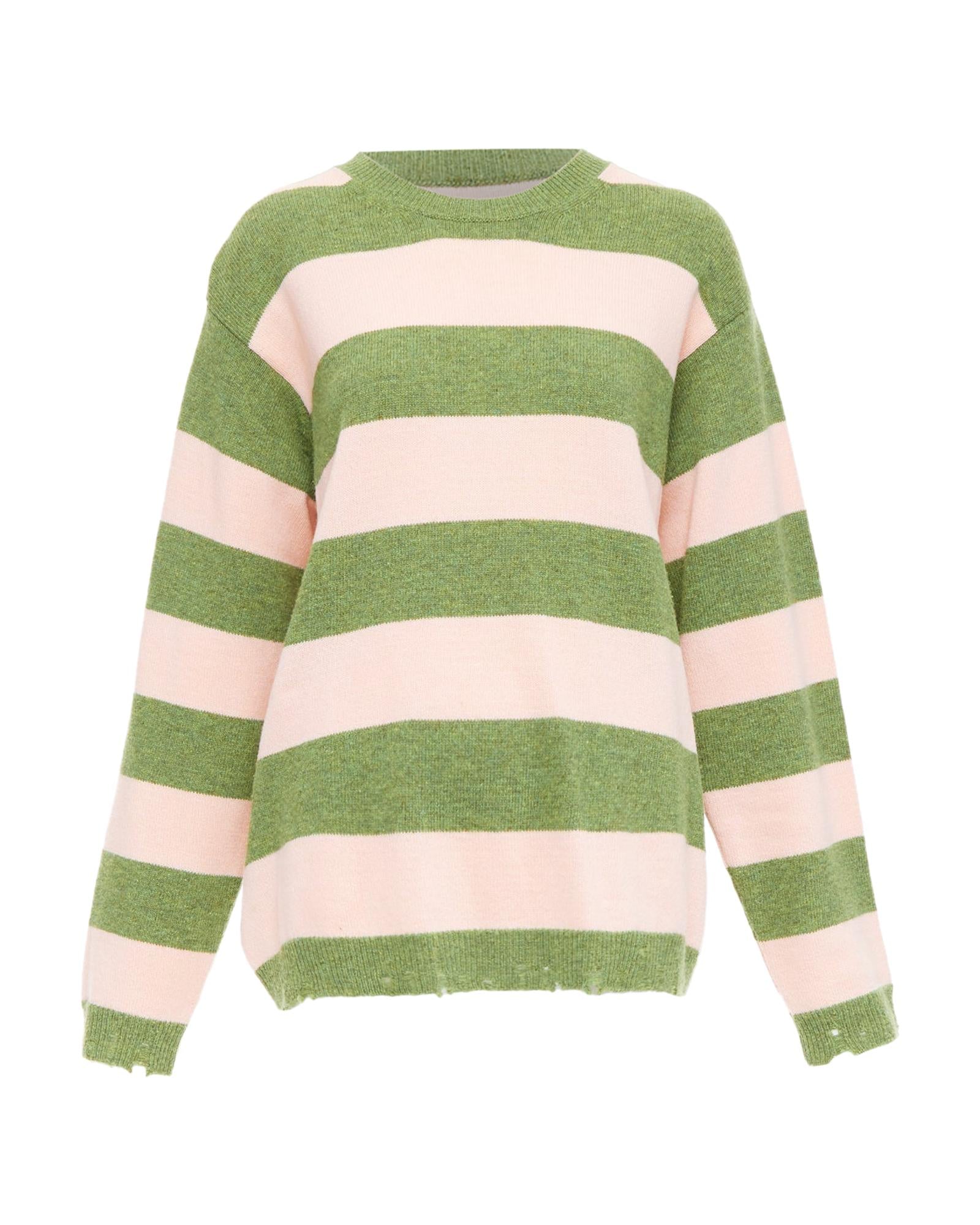 Pre-owned Striped Long Sleeve Sweater with Round Neckline