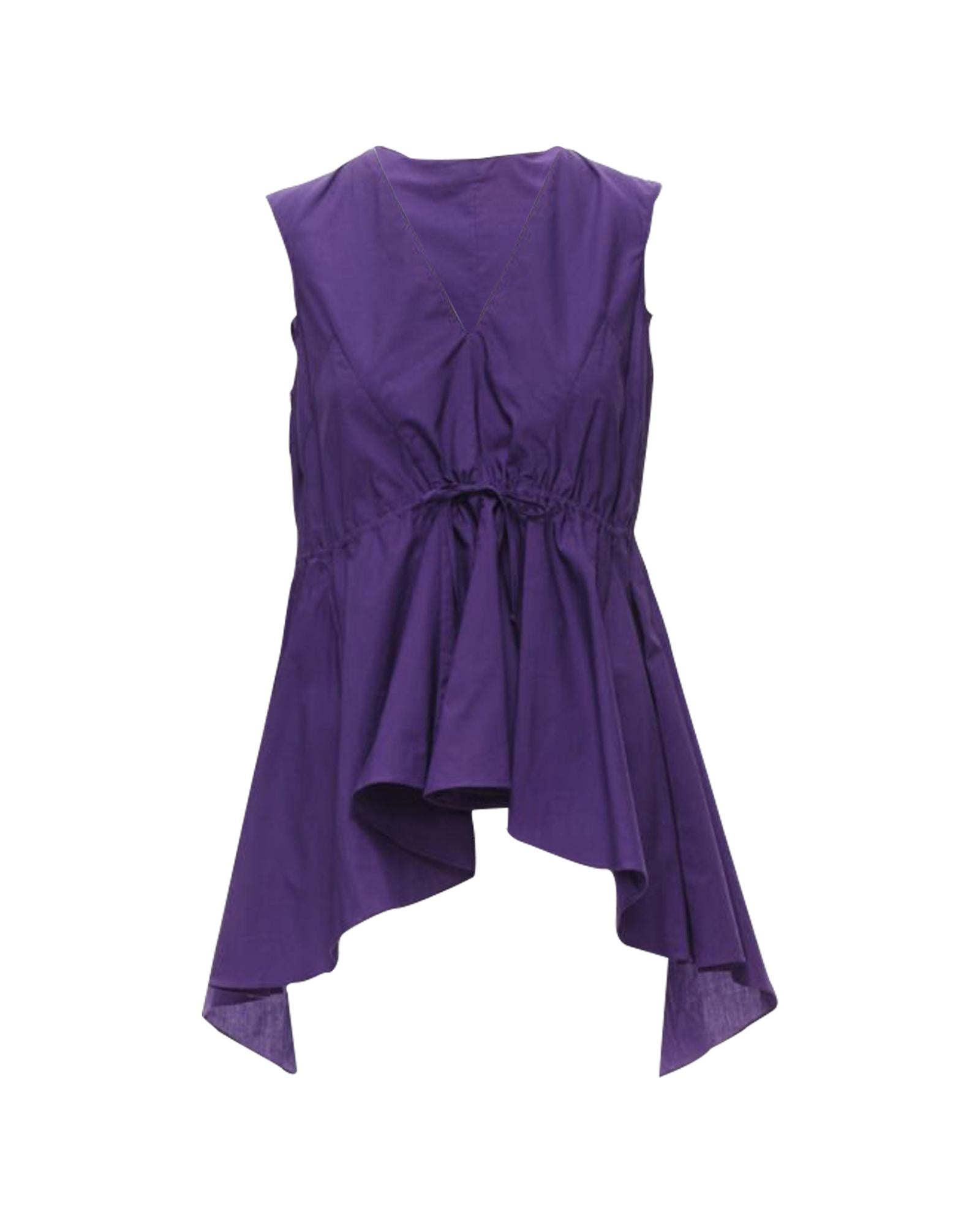 Pre-owned Sleeveless Woven Top with V-Neckline and Drawstring Waist