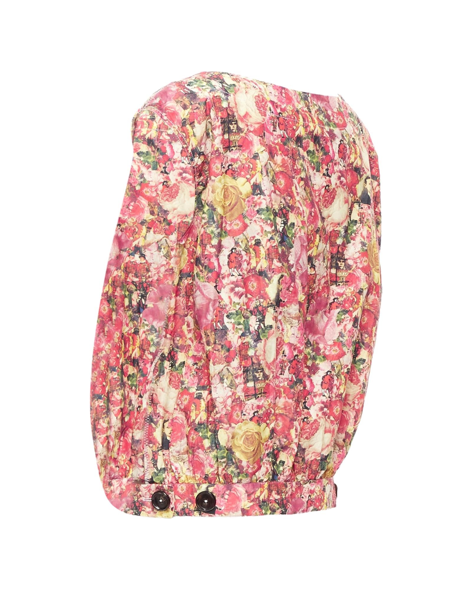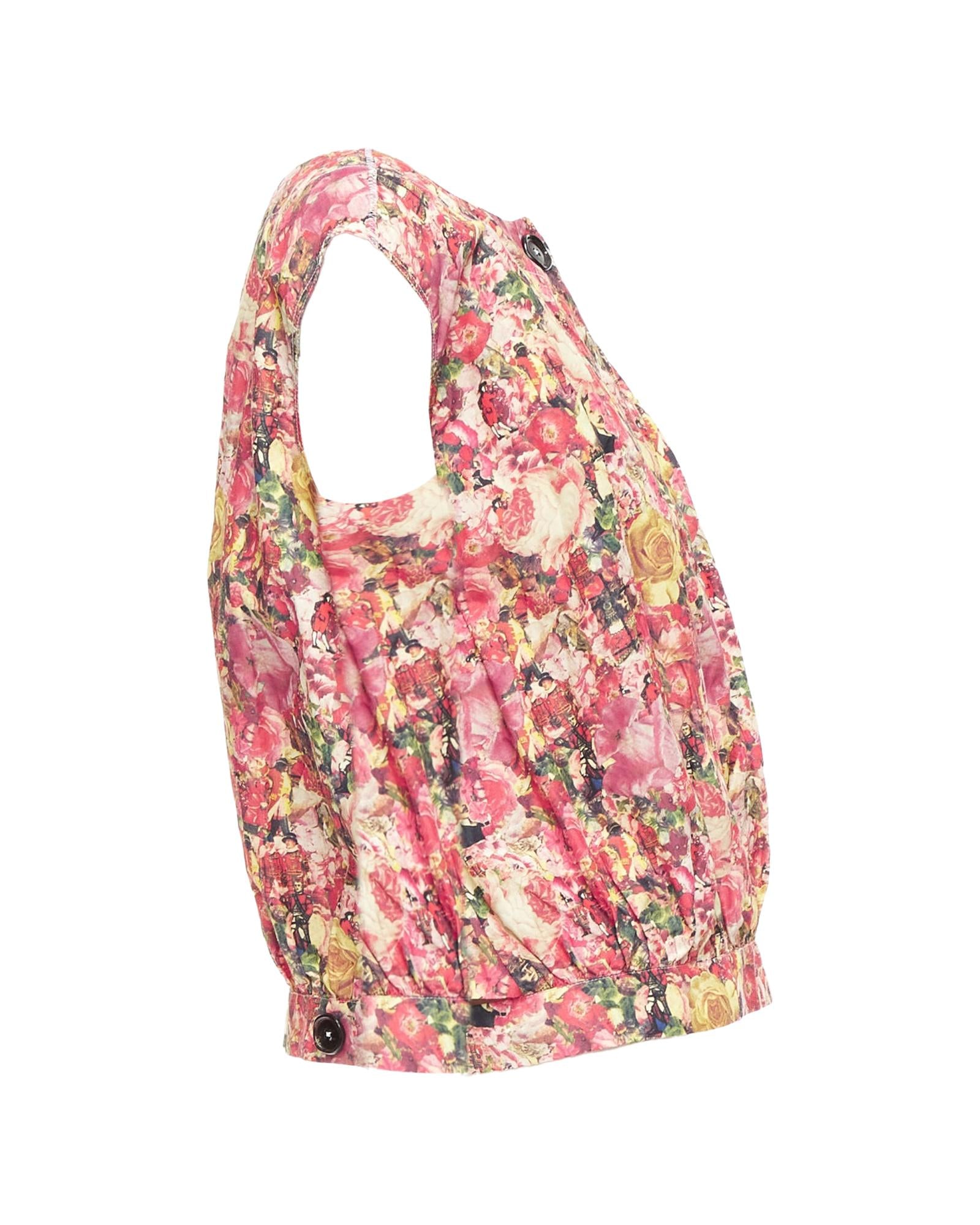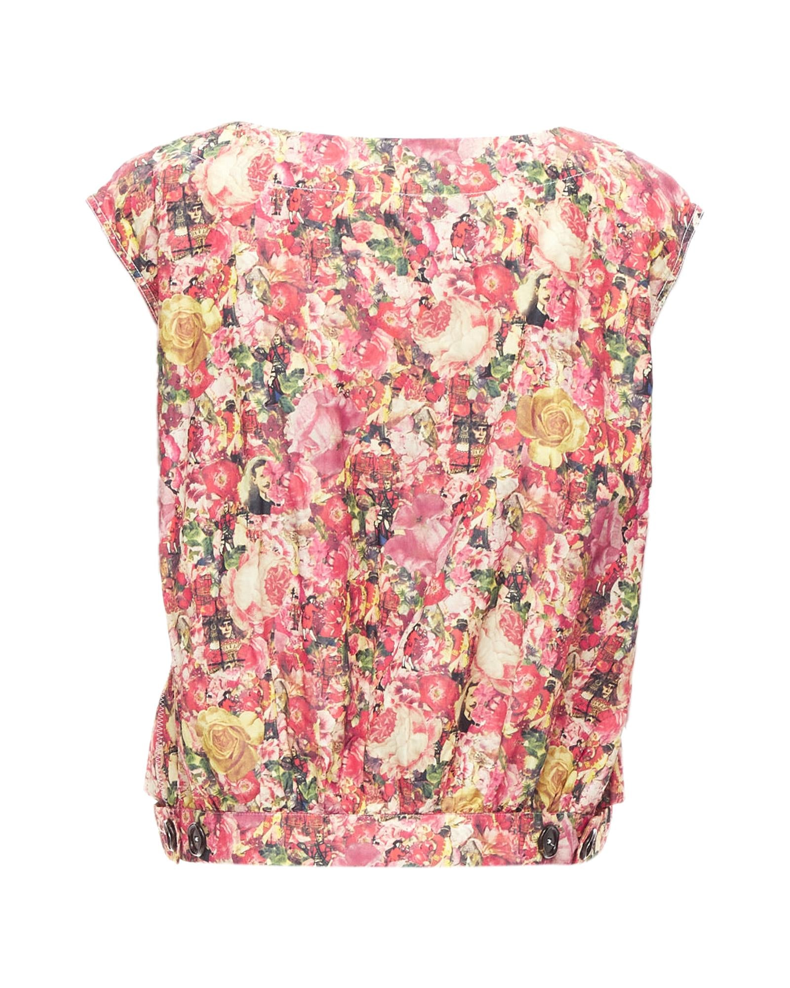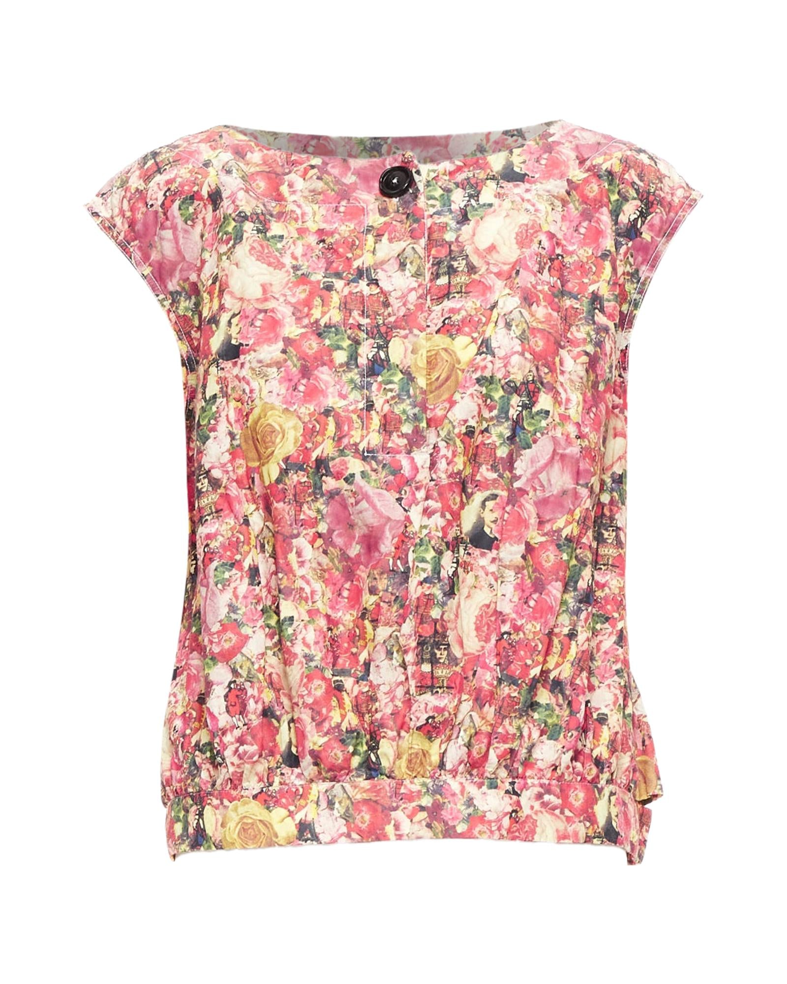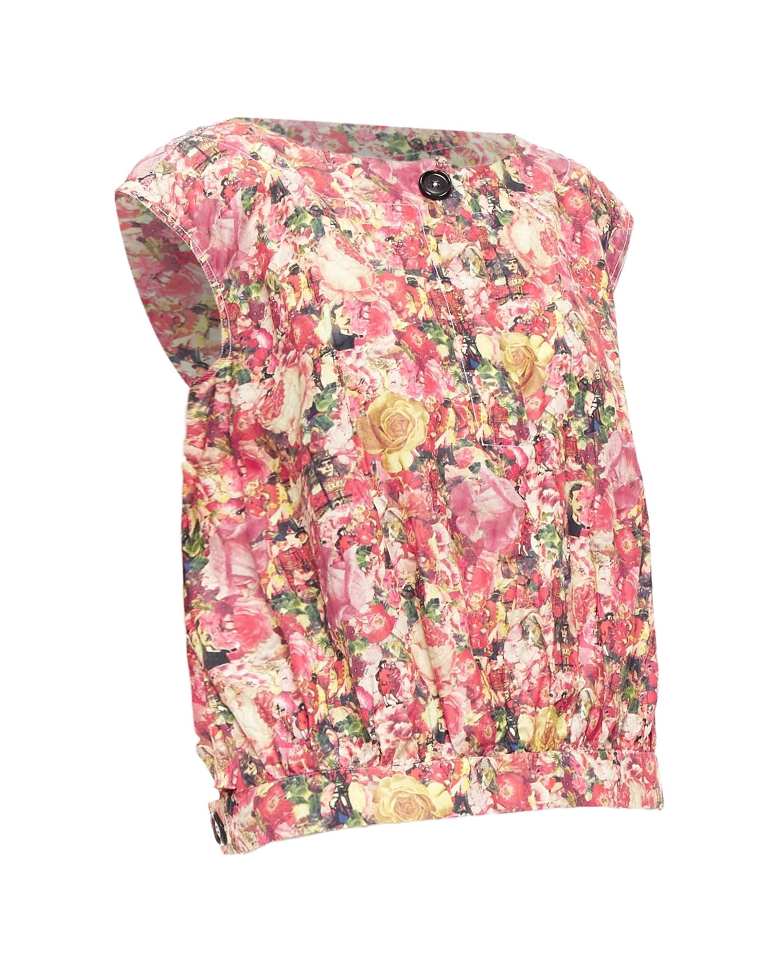 Pre-owned Floral Print Top with Round Neck and Short Sleeves Casual