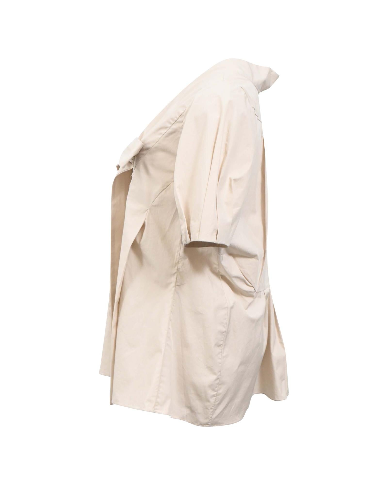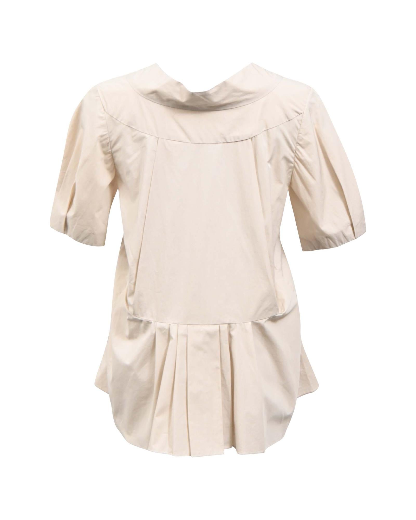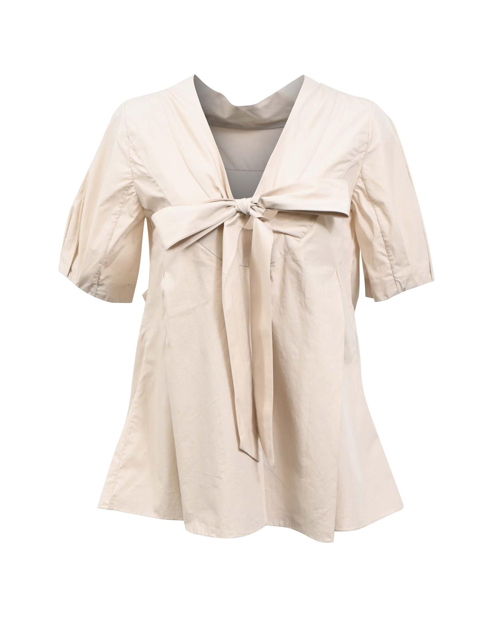 - Marni Bow Pleated Short Sleeve Blouse in Beige Cotton