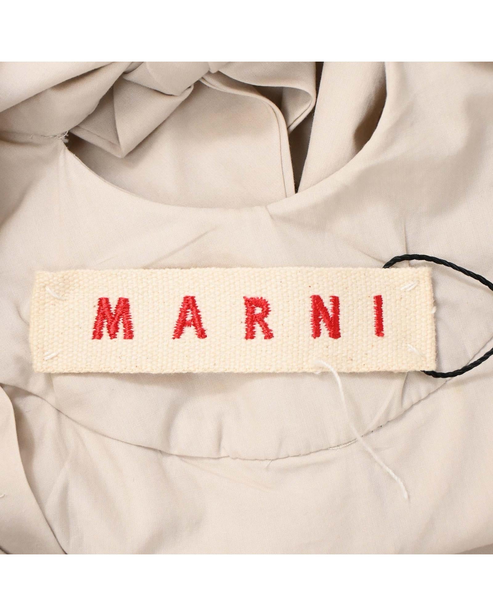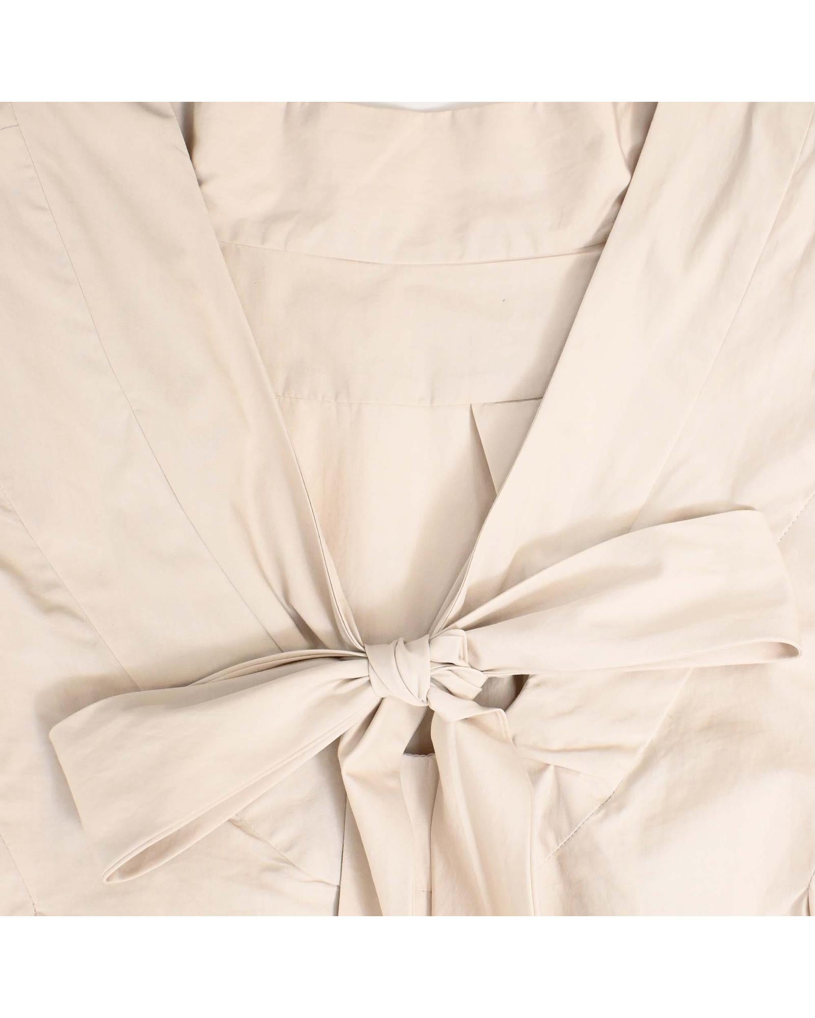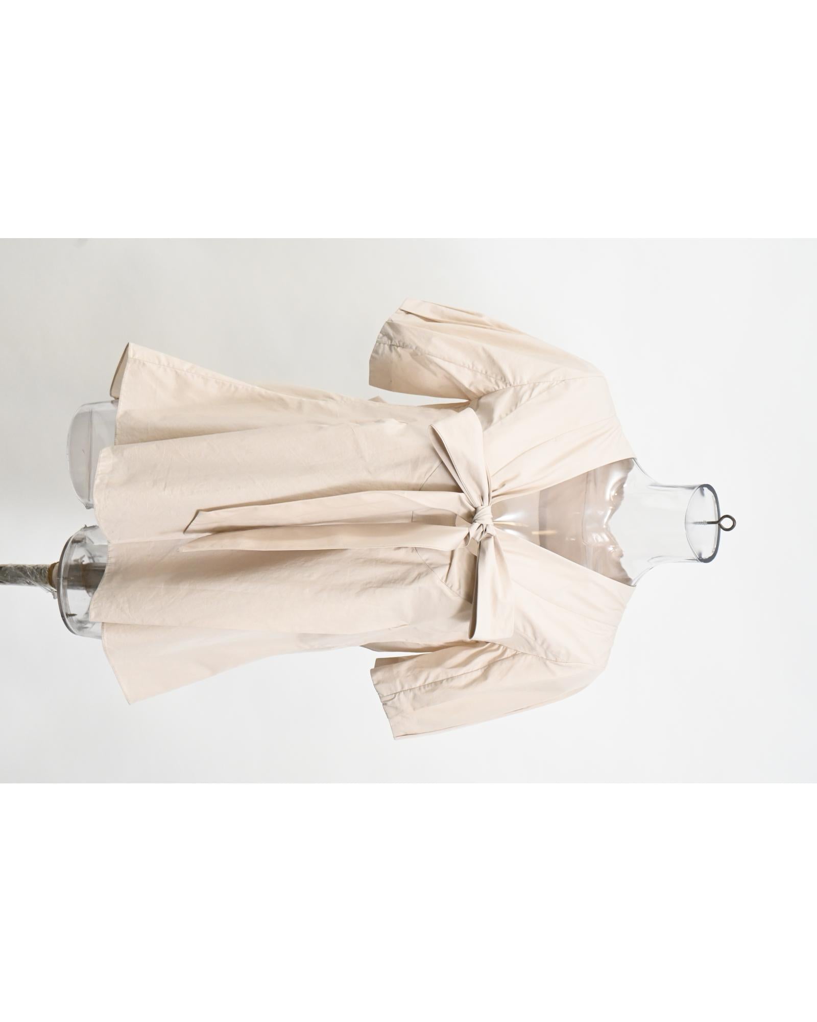 - Marni Bow Pleated Short Sleeve Blouse in Beige Cotton