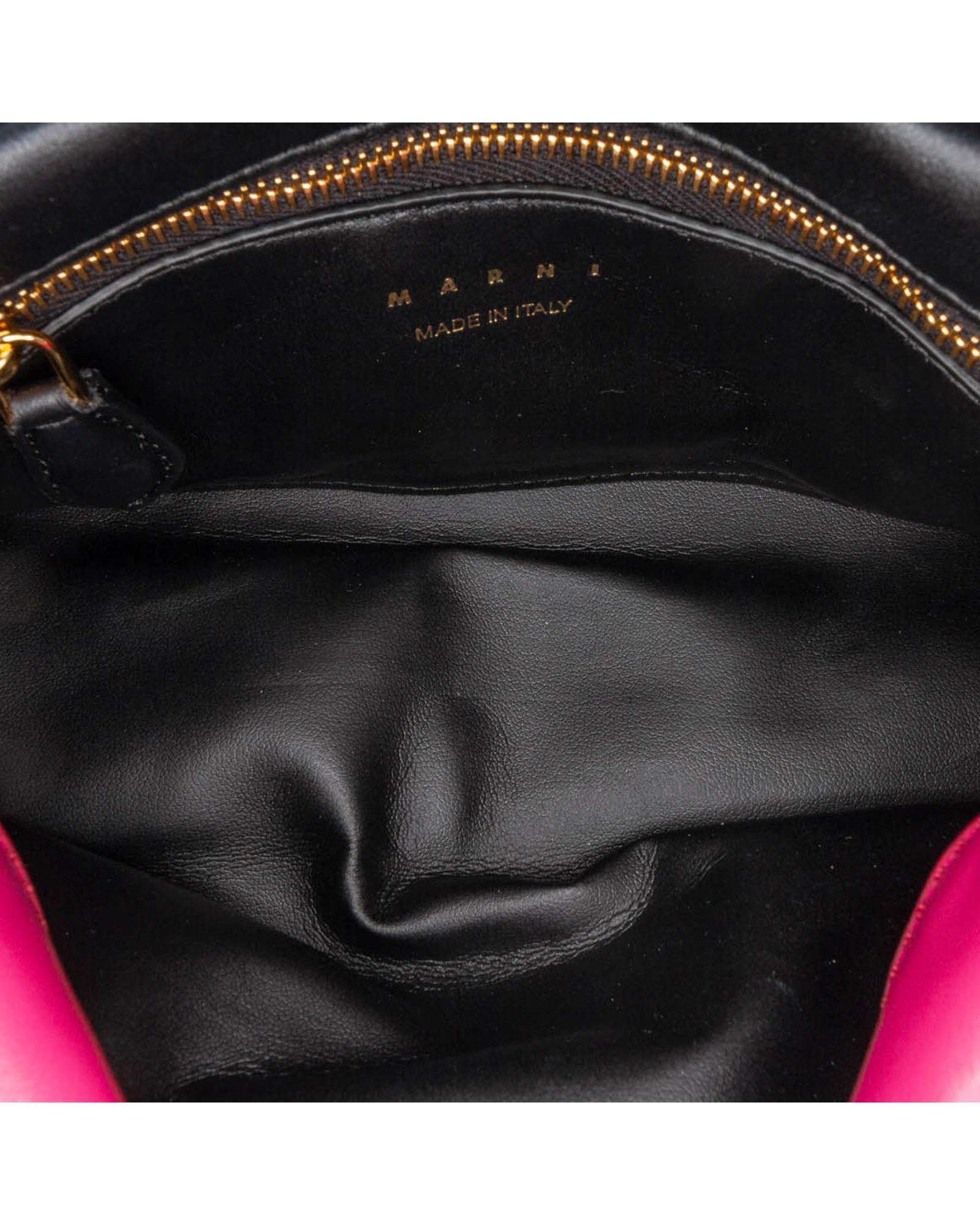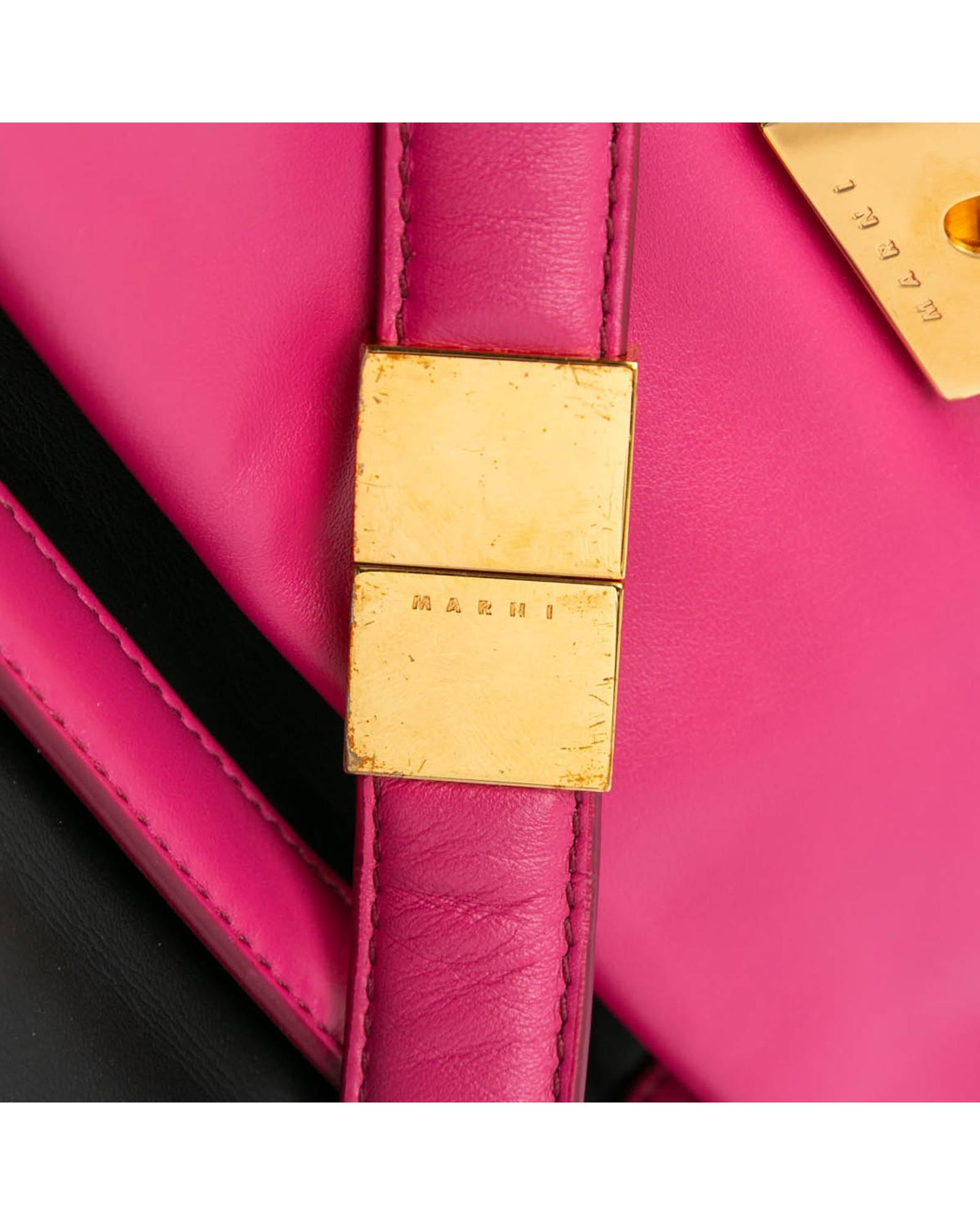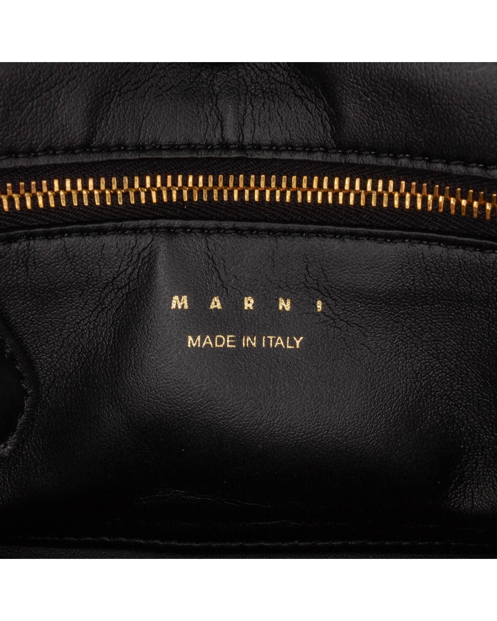 This crossbody bag features a leather body a flat leather strap a flat strap extender a front flap with clasp closure and an interior zip pocket.Brand: Marni