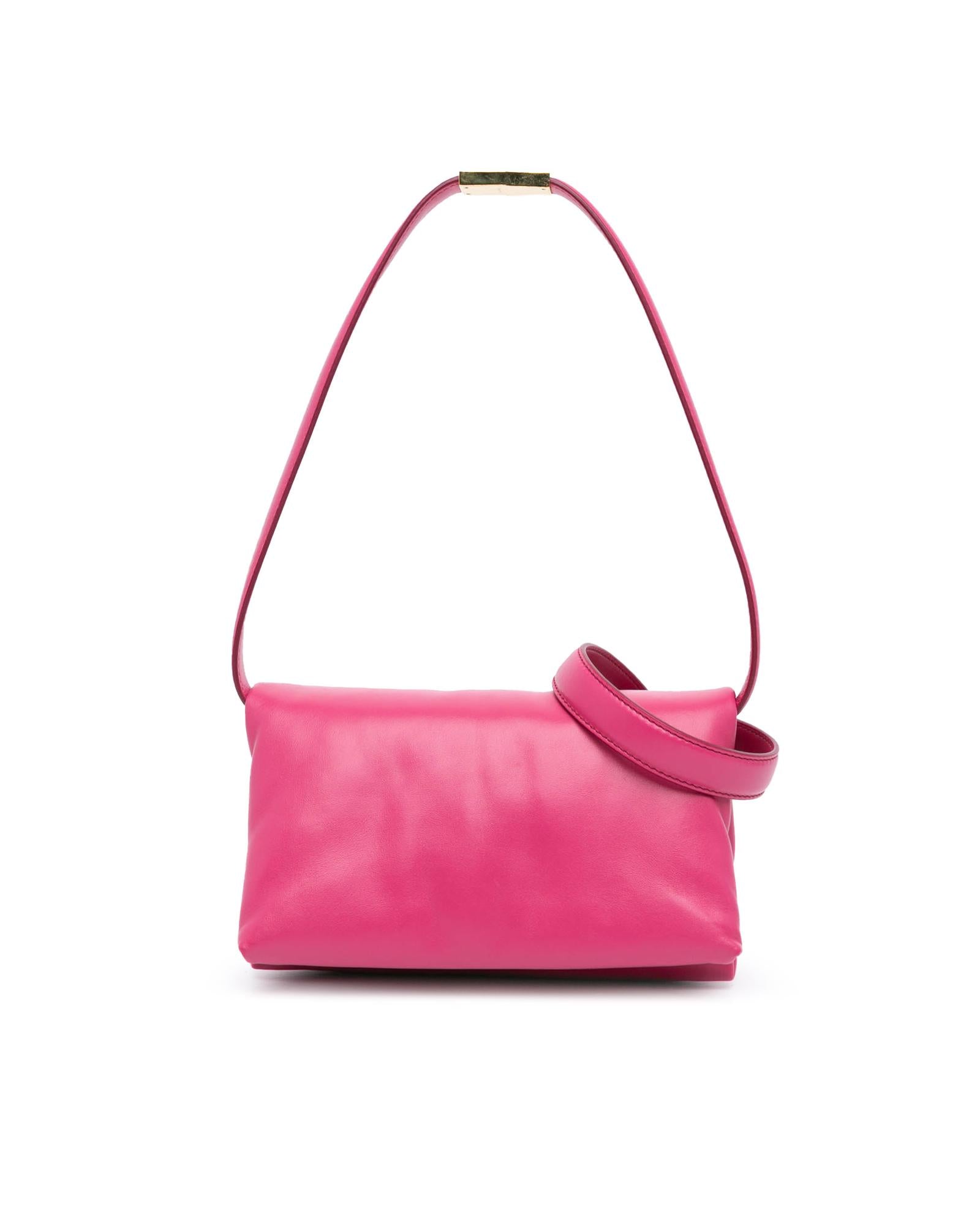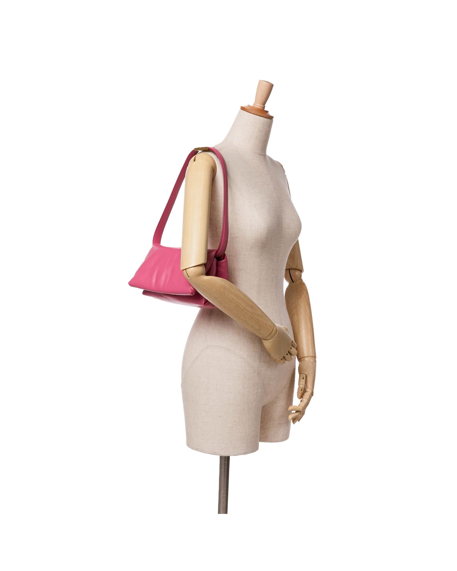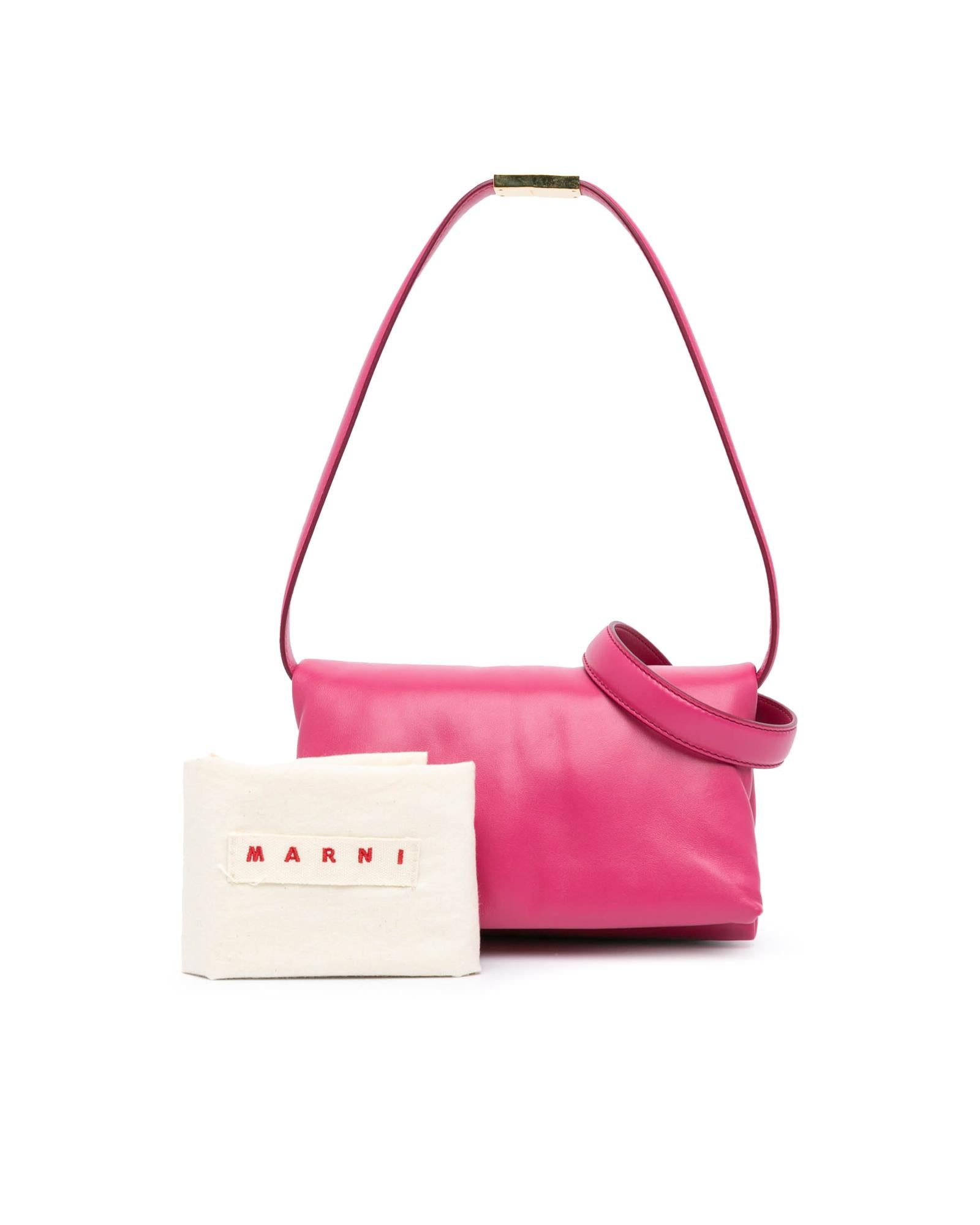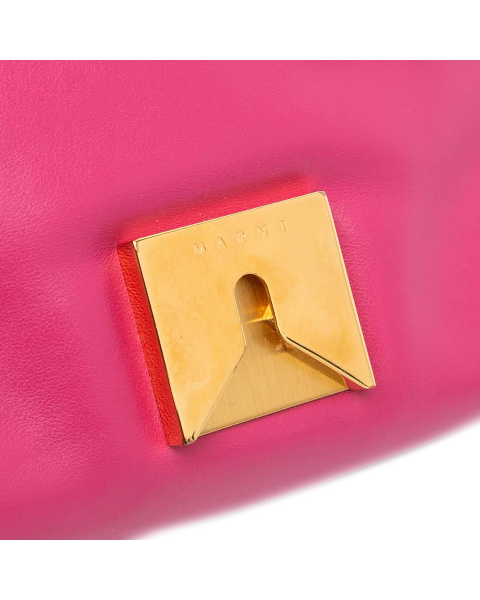 This crossbody bag features a leather body a flat leather strap a flat strap extender a front flap with clasp closure and an interior zip pocket.Brand: Marni