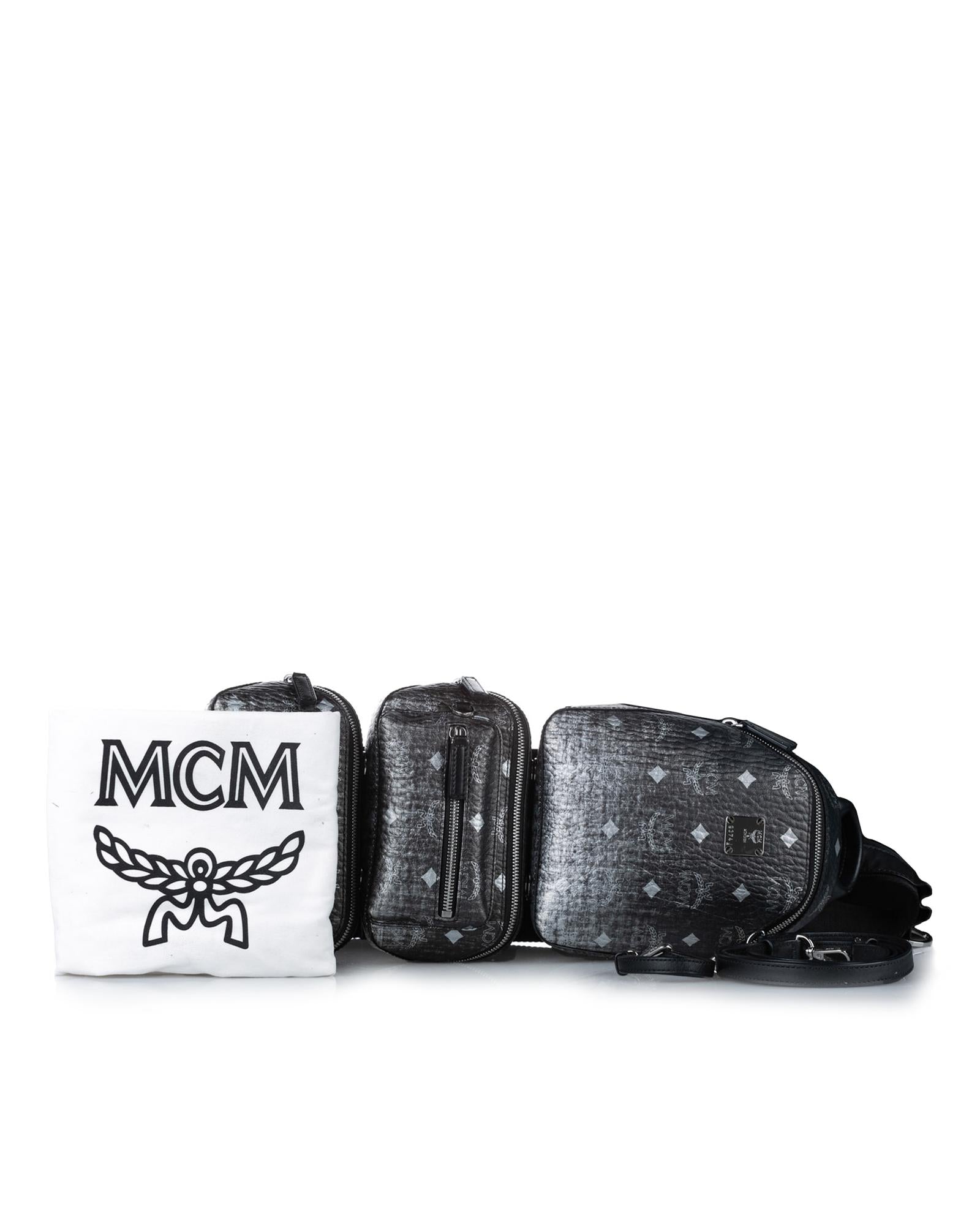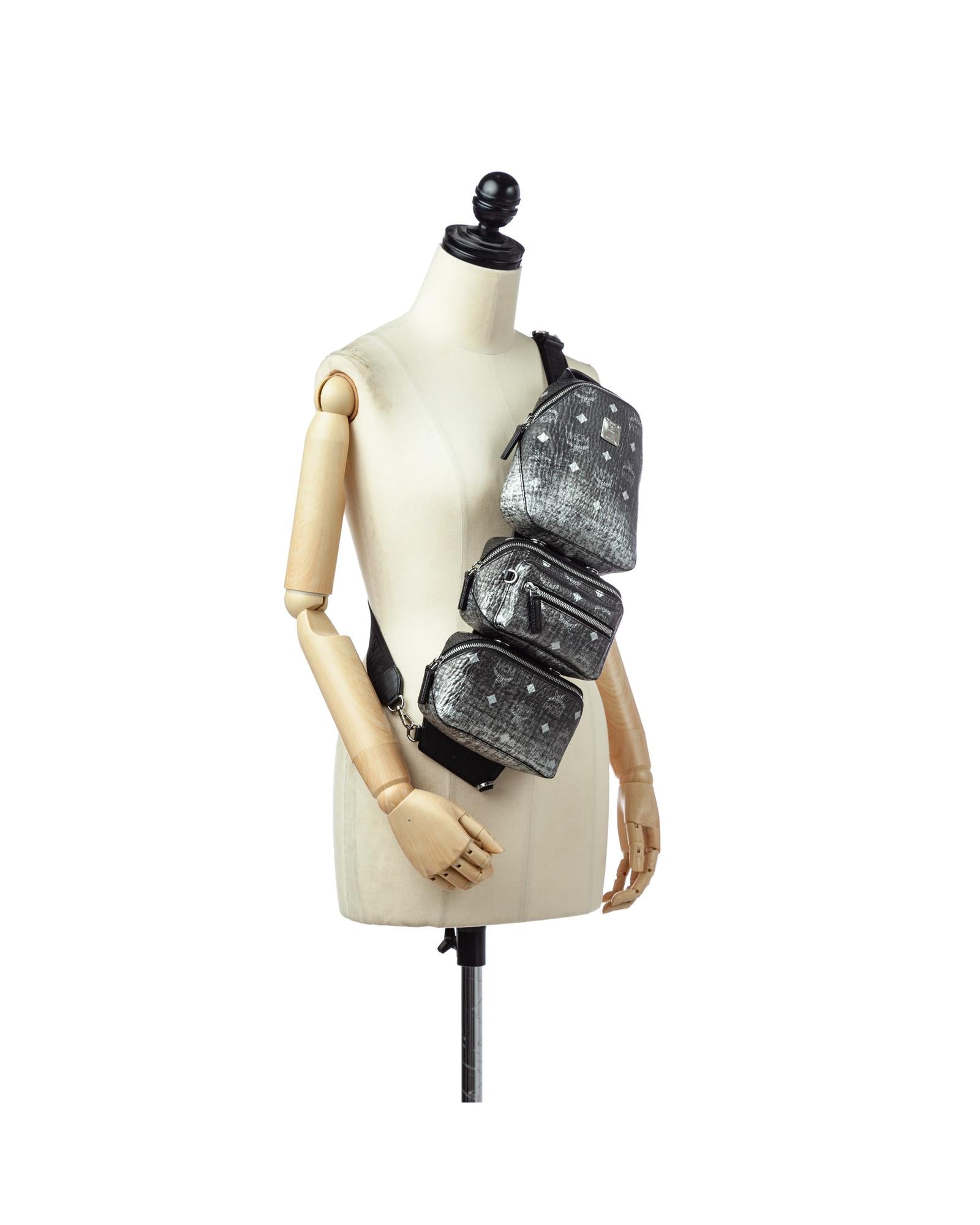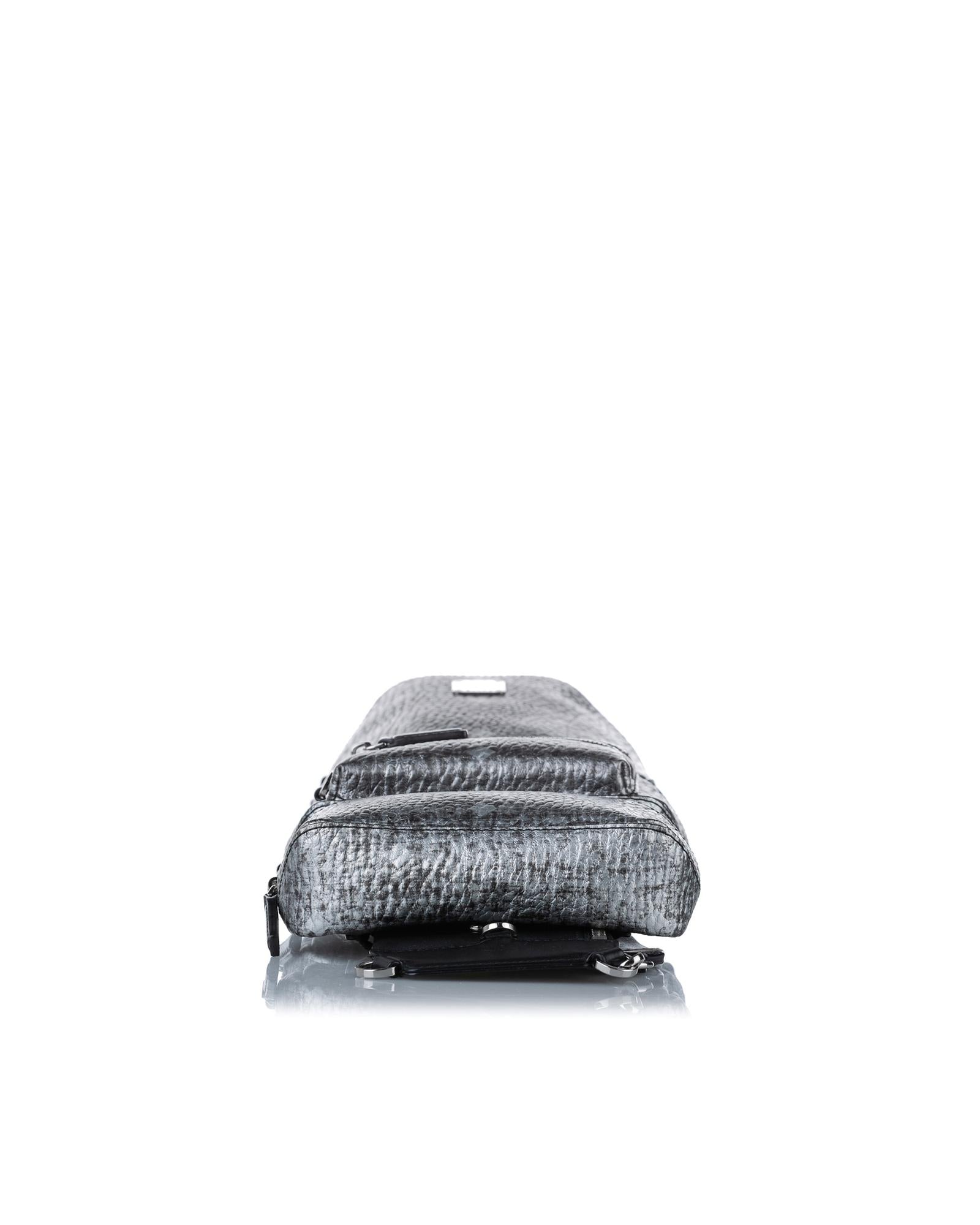 This sling bag features a coated canvas body a flat leather top handle an adjustable flat backstrap top zip closures an exterior zip pocket and interior slip pockets.