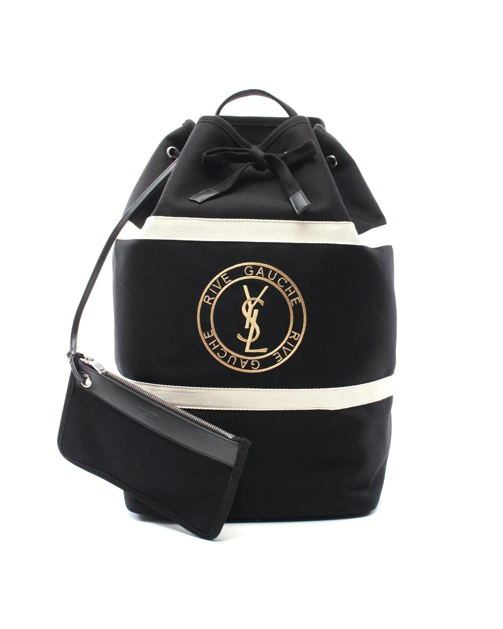 Pre-owned Canvas Bucket Bag with a Pouch and Drawstring Closure for Everyday Use
